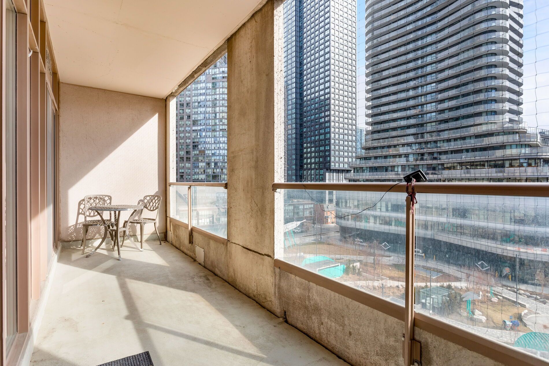 • Two balconies overlooking Dr. Lillian McGregor Park for great views.