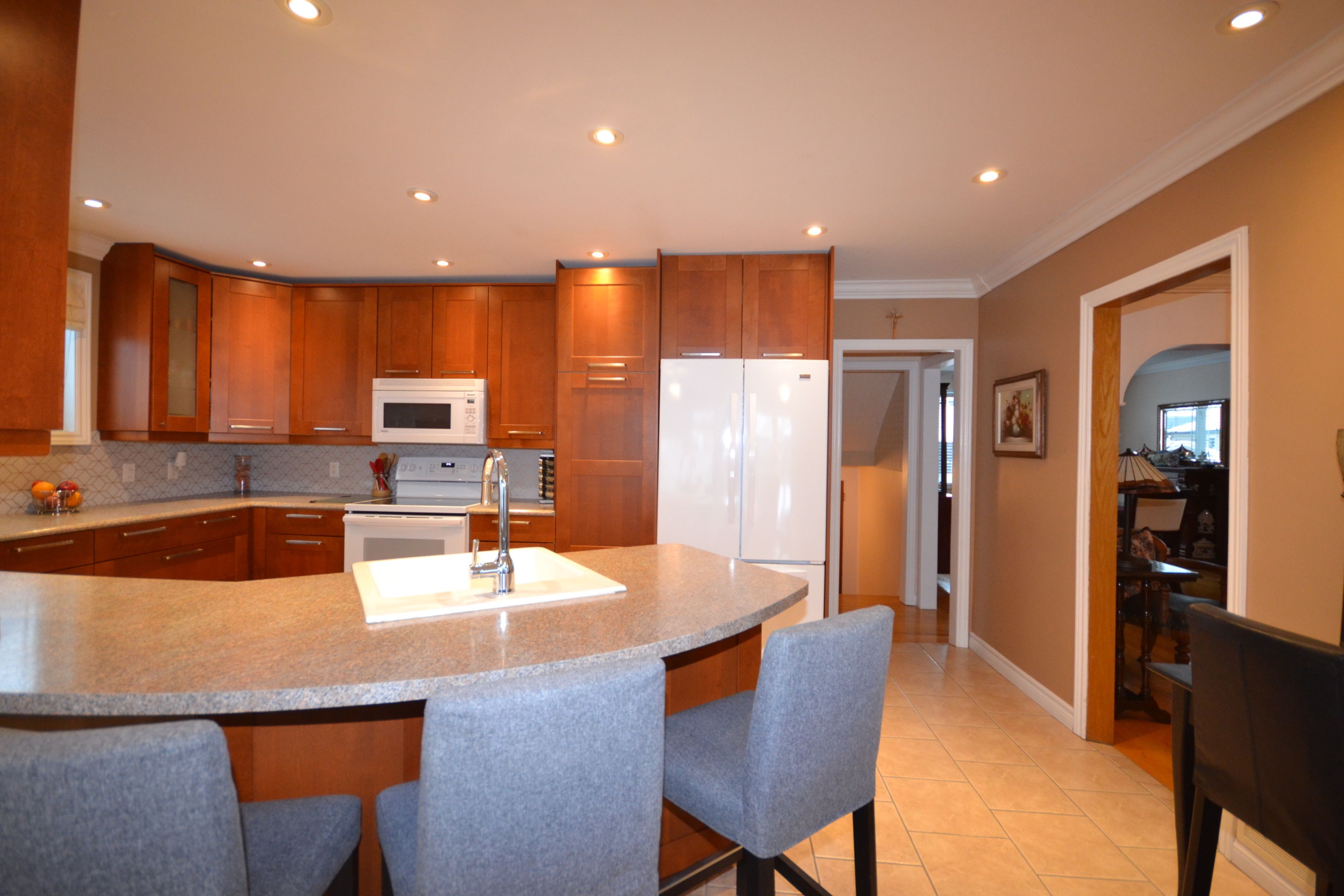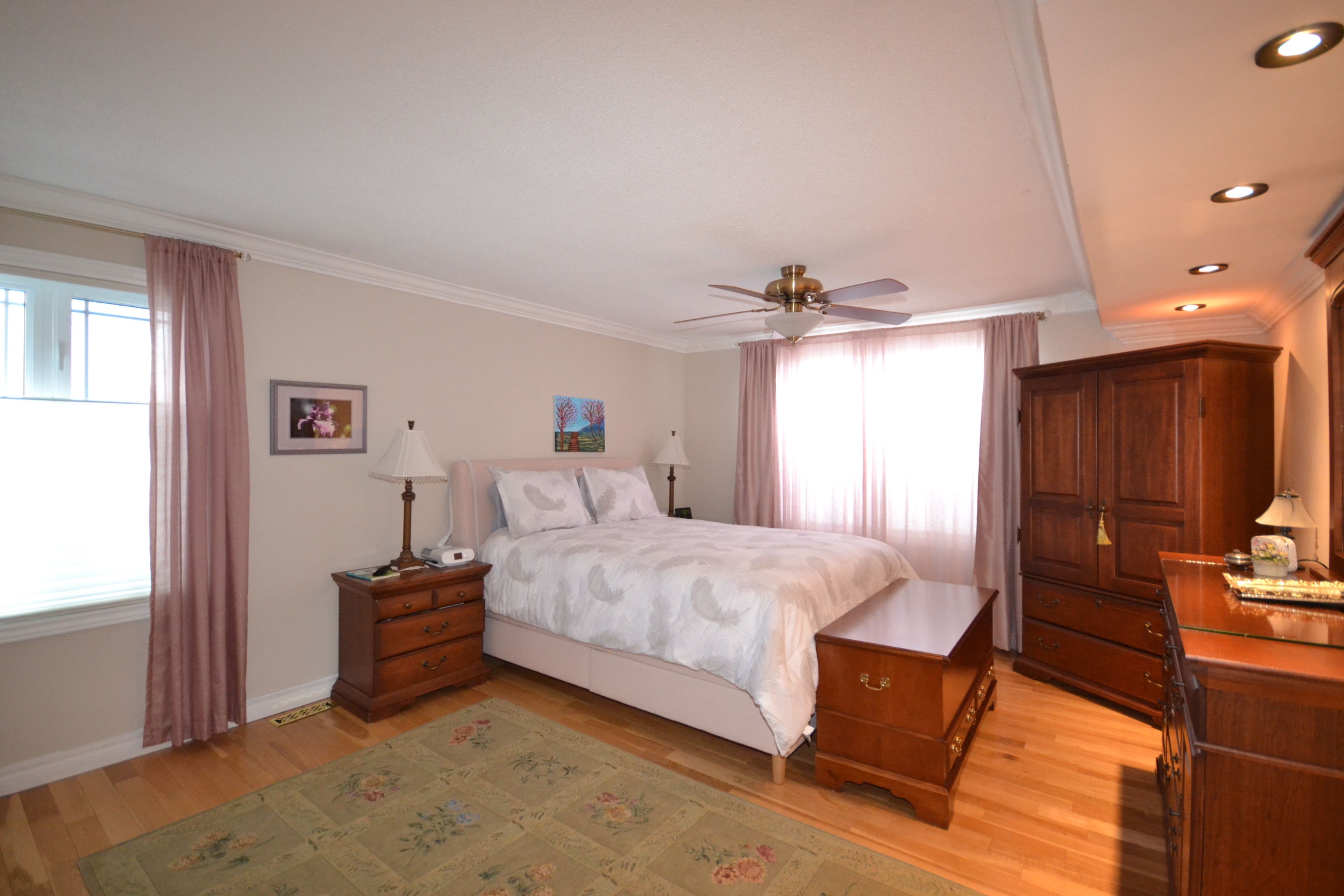 Welcome to this beautiful 2 storey home in the heart of rockland. Extremely well maintained 3 bedroom 3 bathroom home, lovely updated kitchen with plenty of cabinetry, attached island with 3 stools open to the bright family room with lots of windows overlooking the oversized fenced private back yard, separate spacious dining room great for entertaining, cosy living room, large main floor bedroom, 2 pcs bath, custom blinds, crown molding, second level boast primary bedroom with double closets, 2nd good size bedroom with built in murphy bed and wall unit, full updated bathroom with claw tub, carpet free home with gleaming hardwood floors, spacious lower level recreation room with large 3 pcs bathroom, office, laundry room with double sinks, walk in closet and lots of cabinets, storage room, cold storage and more, this home also features a double oversized detached garage, huge fenced in yard with above ground pool 20x13 - 2020, newer exterior siding on front of home - 2017, roof - 2021, gazebo - 2022, a\c - 2024, move in ready home shows pride in ownership. Close to schools, parks, shopping and more, easy access to highway.