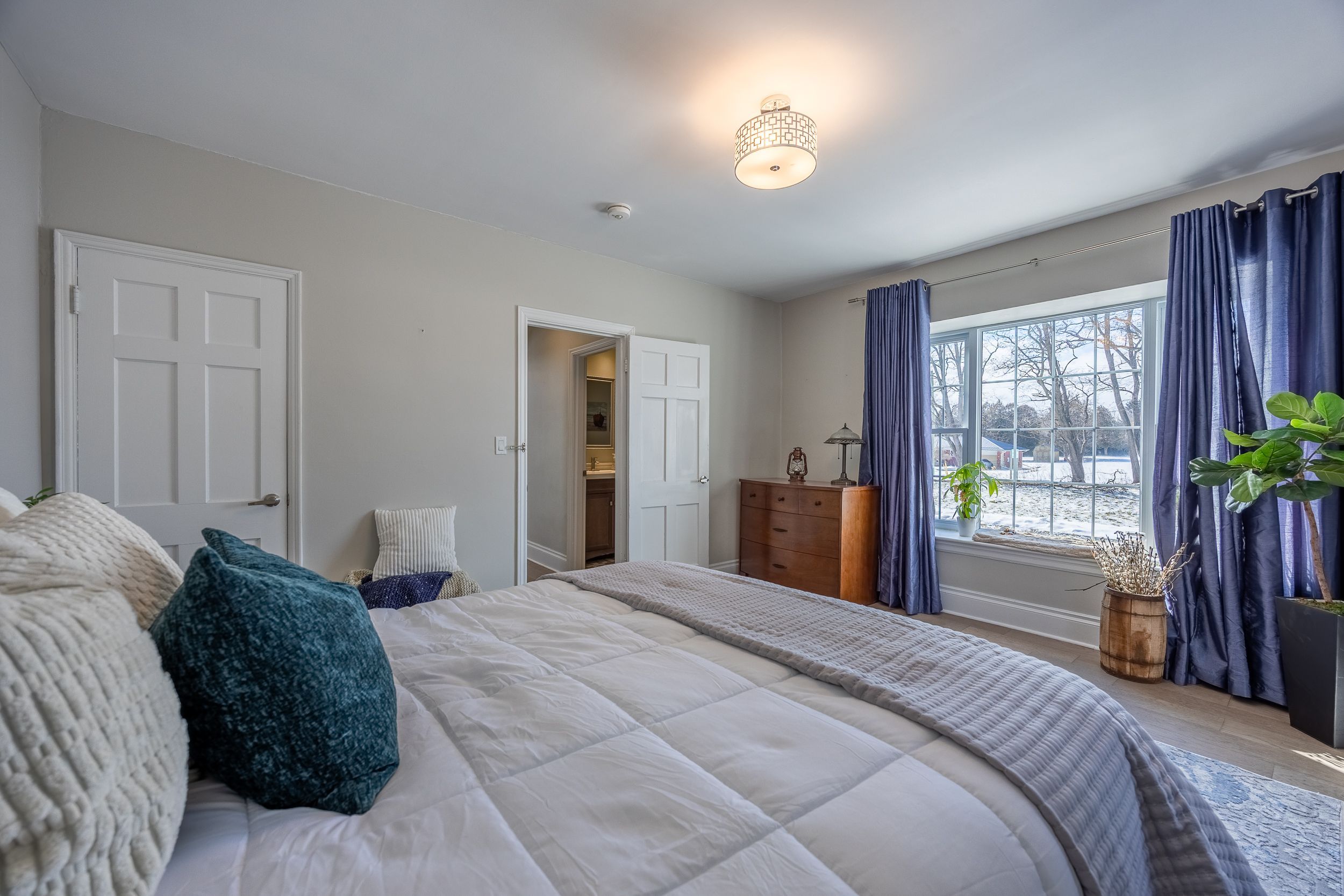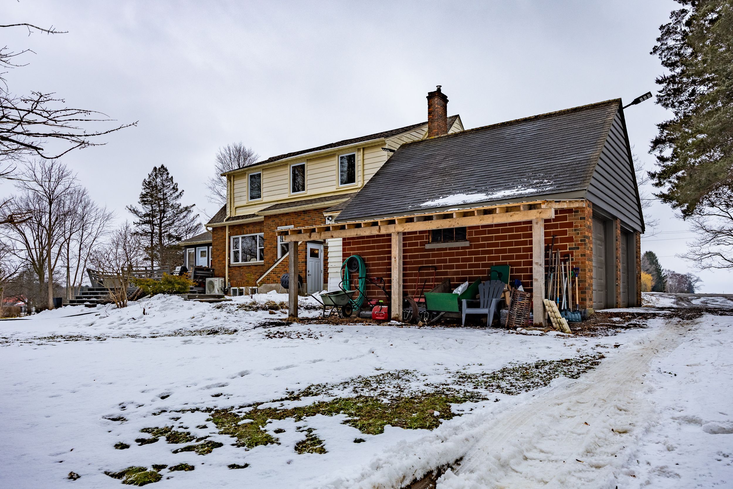 A remarkable 5 bedroom 1 1/2 storey home beautifully situated on over 2 acres that is perfect for large families, multi-gen living or income potential with a legal duplex configuration already in place. This unique property offers spacious living, natural light throughout and flexible living options. Basement unit can be accessed from the interior or exterior of the home. Open-concept main level featuring a bright living and dining area anchored by a cozy wood-insert fireplace. The galley kitchen boasts quartz countertops and a breakfast nook with direct outdoor access to the backyard. Large windows throughout for plenty of natural light. Den has patio access overlooking a large private back yard. Main floor primary bedroom and 4 pc bath. Upstairs has generously sized 3rd and 4th bedrooms each with 3pc ensuite baths with a convenient laundry closet. Downstairs, the walk-up basement expands your living space with two additional bedrooms, a full kitchen, living room area, and another full bath - ready for extended family or rental income. Exterior walk up staircase from the back of the house. Laundry room and utility room in basement. Outside, enjoy a private setting with a peaceful backyard, ample parking and room to roam. The property features black raspberry bushes, fruit trees, mature forest trees, ornamental shrubs, and a variety of seasonal flowers, along with ferns and decorative grasses throughout the landscape. With separate hydro meters for each unit and an exterior generator plug, this home blends comfort, versatility and value like no other. Registered natural gas well for free heat. Central air & 2 wall heating & cooling units on 2nd floor 2022. 2 steel garage doors 2022. 3 steel doors at back of house 2022. Fireplace insert & chimney liner with wett inspection 2023. Roof 2025. 6 new windows on the second floor. Exterior plug for generator. Separate hydro metres for basement unit and main household.