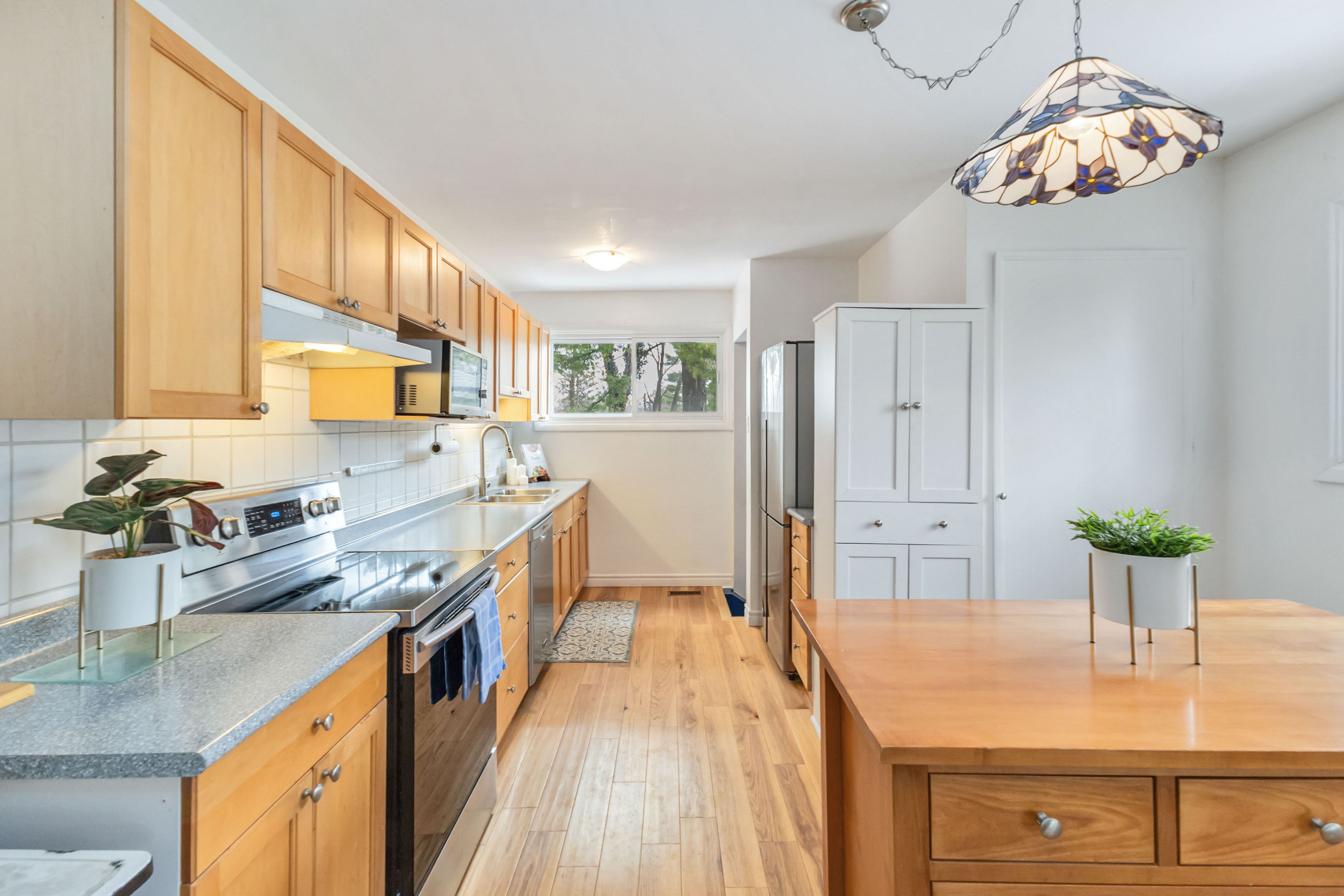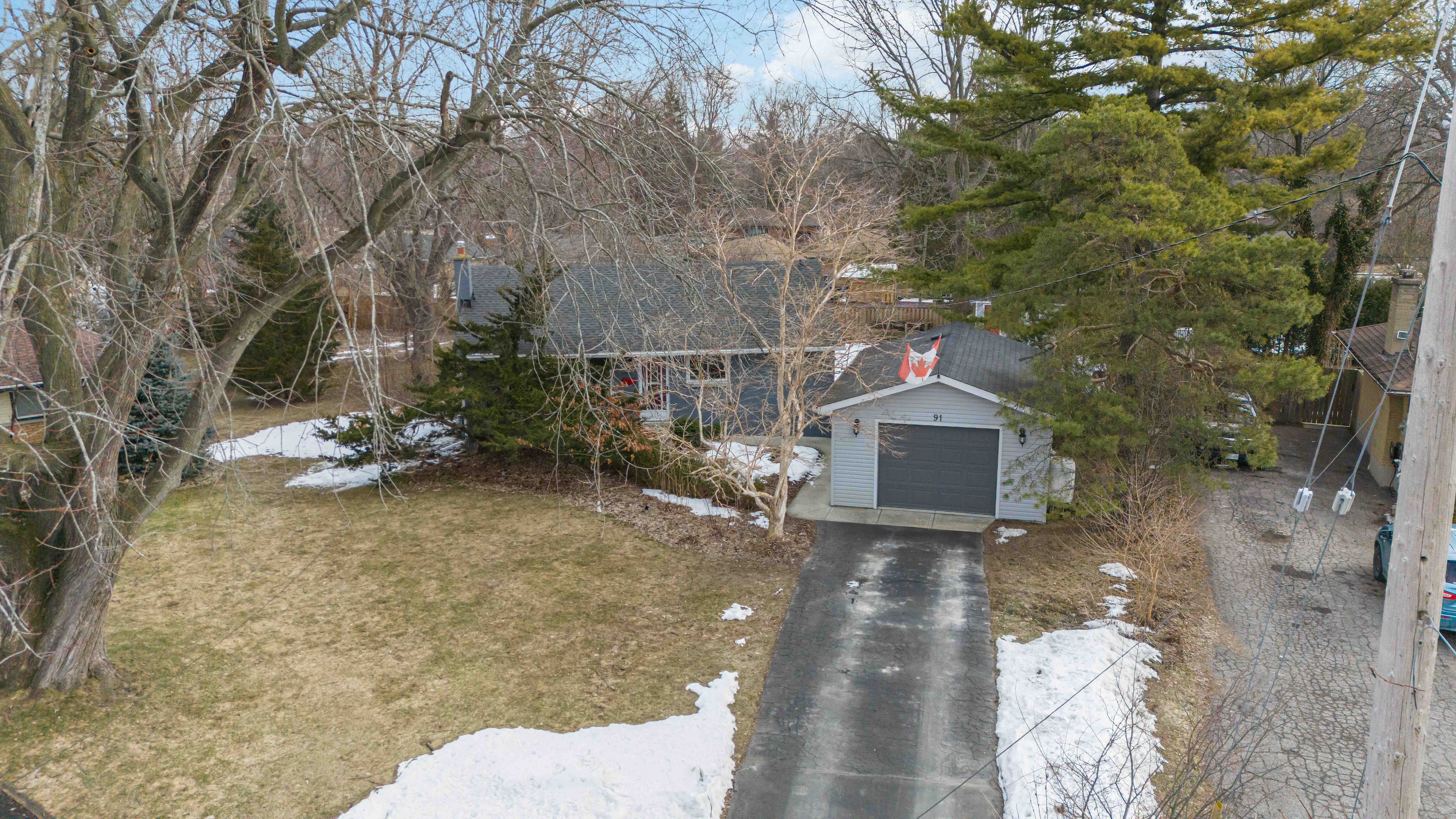 • Well-maintained bungalow on a large lot, surrounded by mature trees.