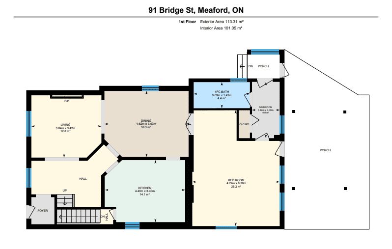 Beautiful 4 bedroom, 3 bathroom, century home in meaford, where timeless character meets modern comfort just steps from the sparkling harbour and downtown! The main floor invites you in with bright, open spaces-an airy living and dining room that flows seamlessly into a beautifully upgraded kitchen with island. Picture hosting family dinners, then stepping into the cozy rec room that opens onto a sprawling covered deck-perfect for summer evenings, morning coffee, or watching the kids play in the yard. A mudroom and 4pc bathroom complete the main level. Upstairs, retreat to the spacious primary suite with a 4pc ensuite bath with electric heated floors. 3 additional bedrooms and a guest bathroom provide plenty of room for family and visitors. Thoughtful updates throughout-including upgraded kitchen (2021), central air (2021), refinished original wood floors (2017), roof (2019), and more-this home blends modern function with timeless charm. Step outside to enjoy the great backyard, complete with landscaped gardens, lush perennials, and plenty of room to relax or play. A good size garage/workshop offers endless potential-whether you're a hobbyist, need extra storage, or dream of a creative space to make your own. Located just one block from the meaford harbour and a short stroll to downtown shops and restaurants, you'll love the small-town lifestyle with thornbury only 8 minutes away.