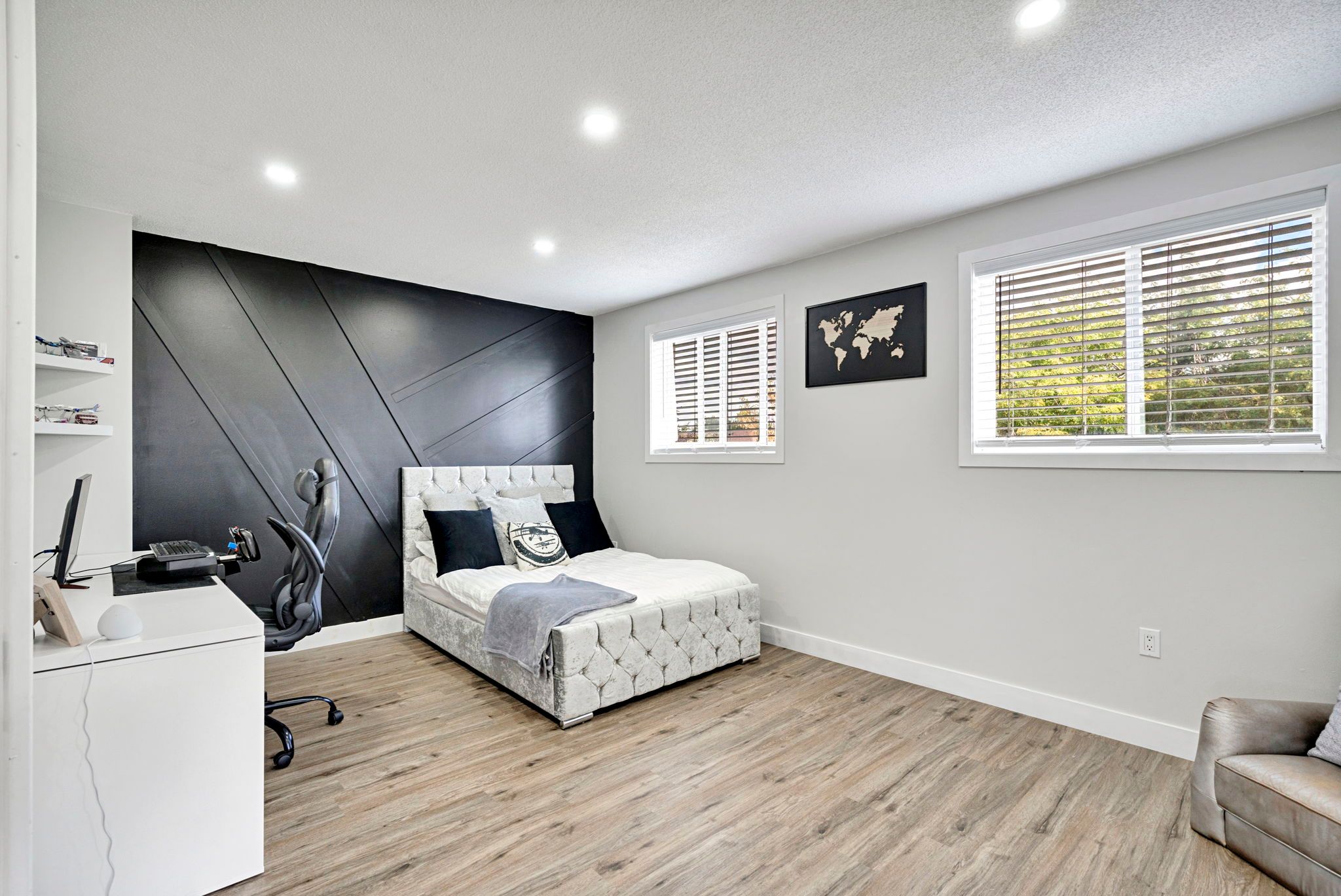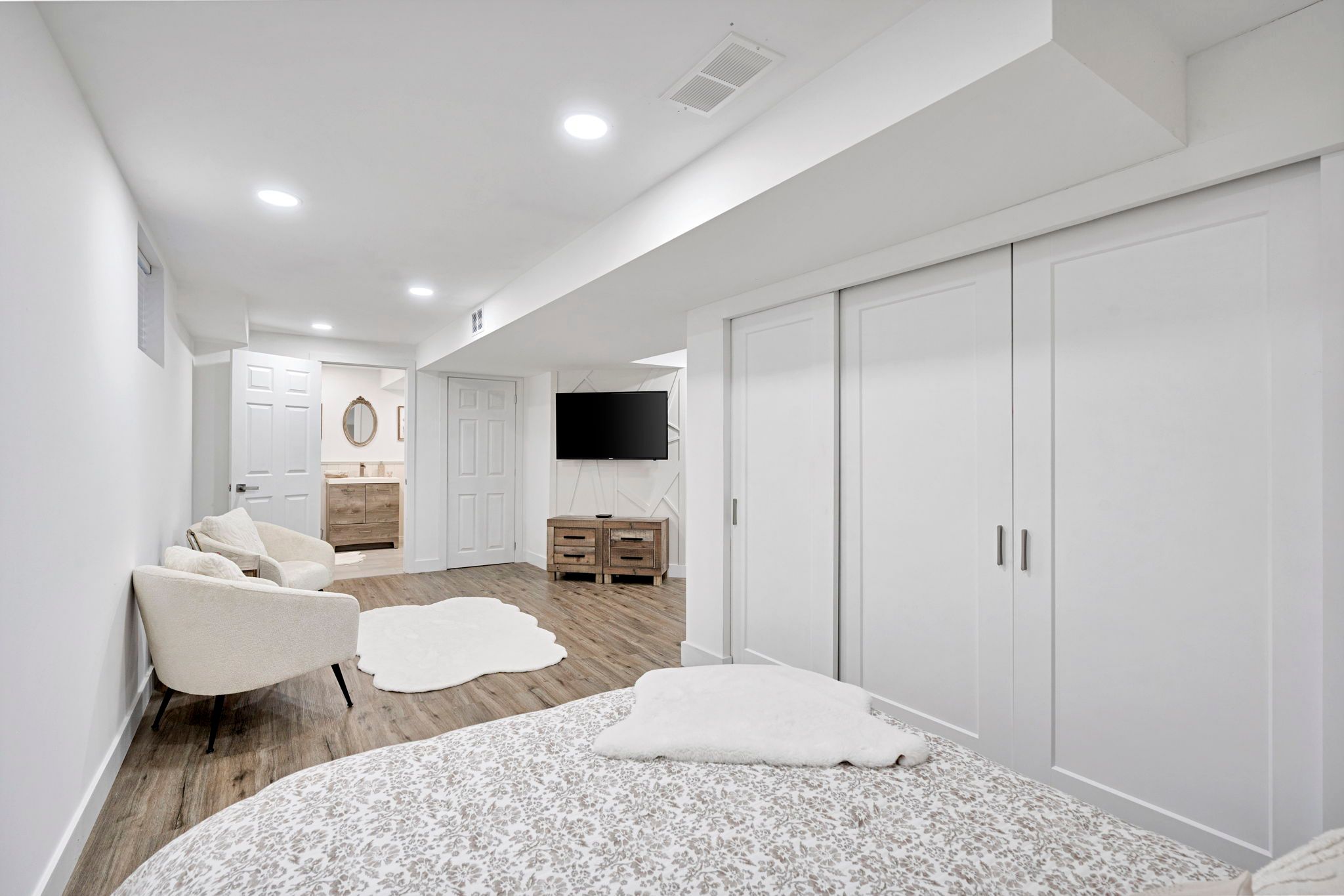 • Spacious primary bedroom with walk-in closet and ensuite access.