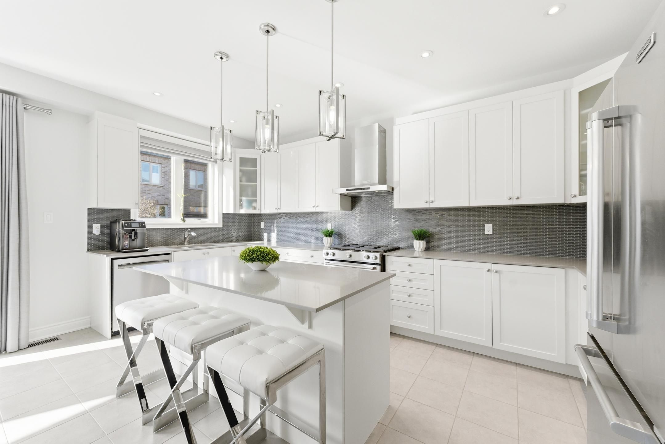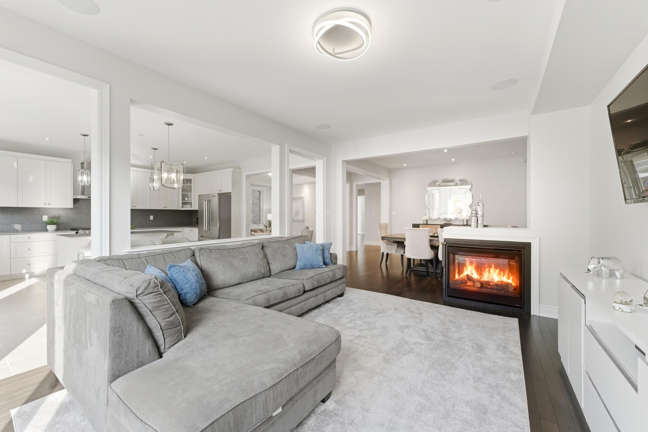 • Bright kitchen features a large island and seamless flow to dining area.