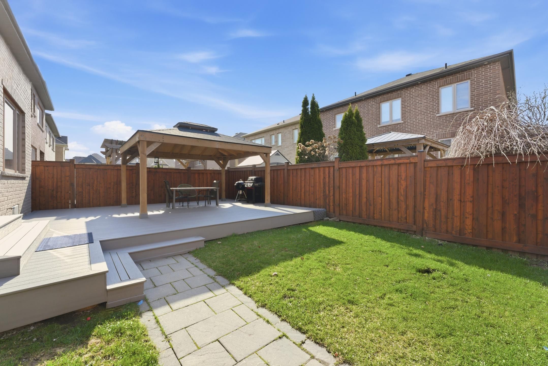 • Beautiful backyard with composite deck and custom gazebo for entertaining.