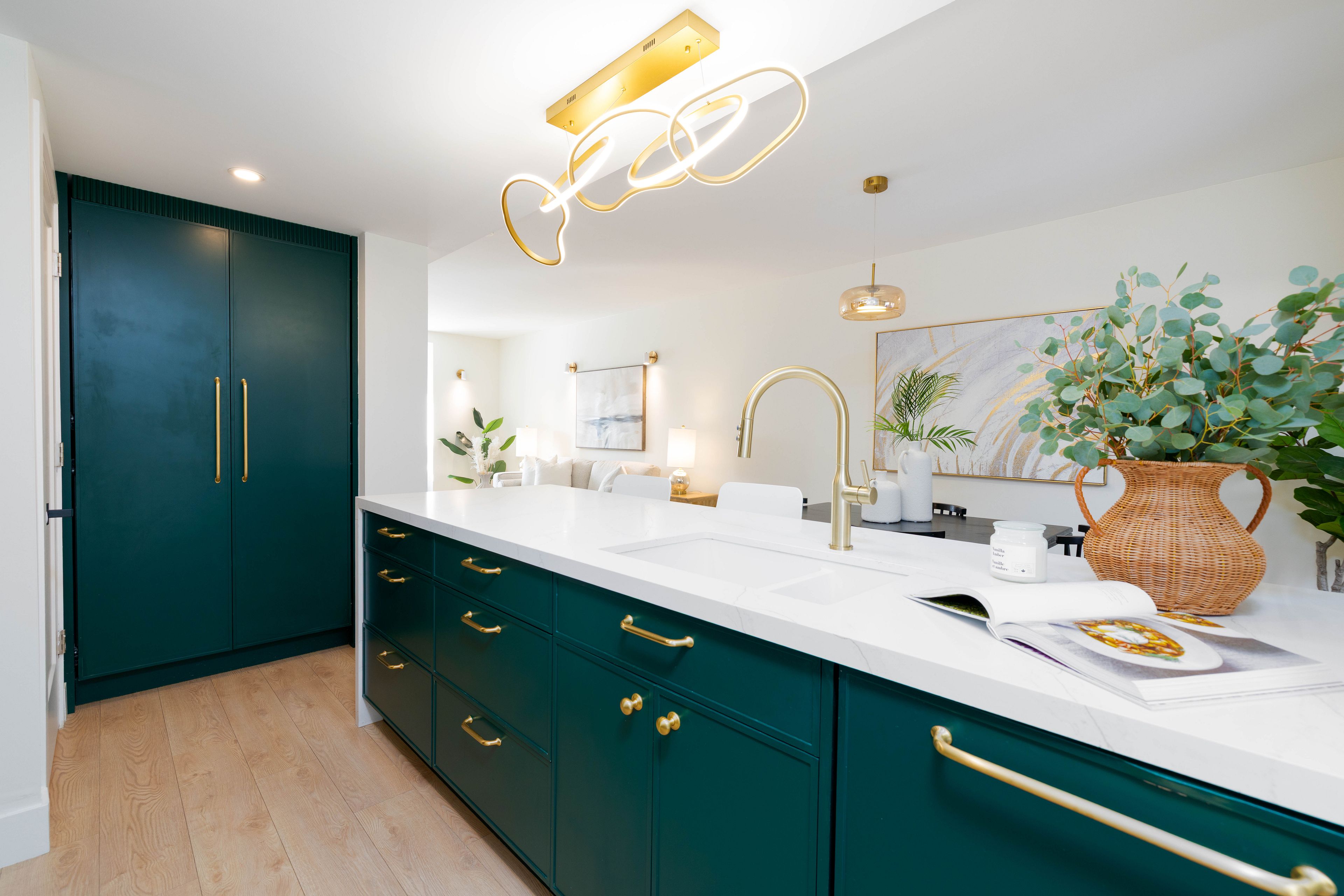 • Gourmet kitchen with built-in appliances and quartz countertops for cooking enthusiasts.