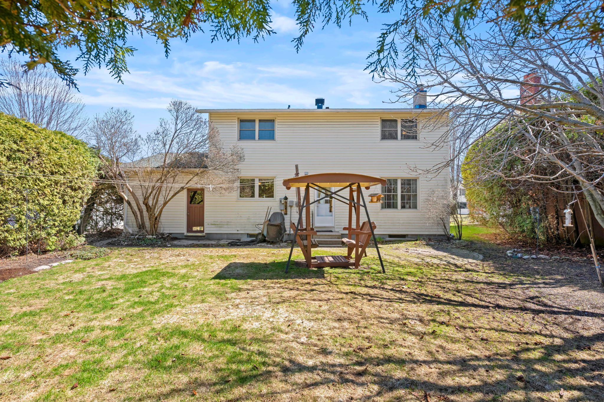 • Private backyard with a stone patio, great for outdoor enjoyment and gatherings.