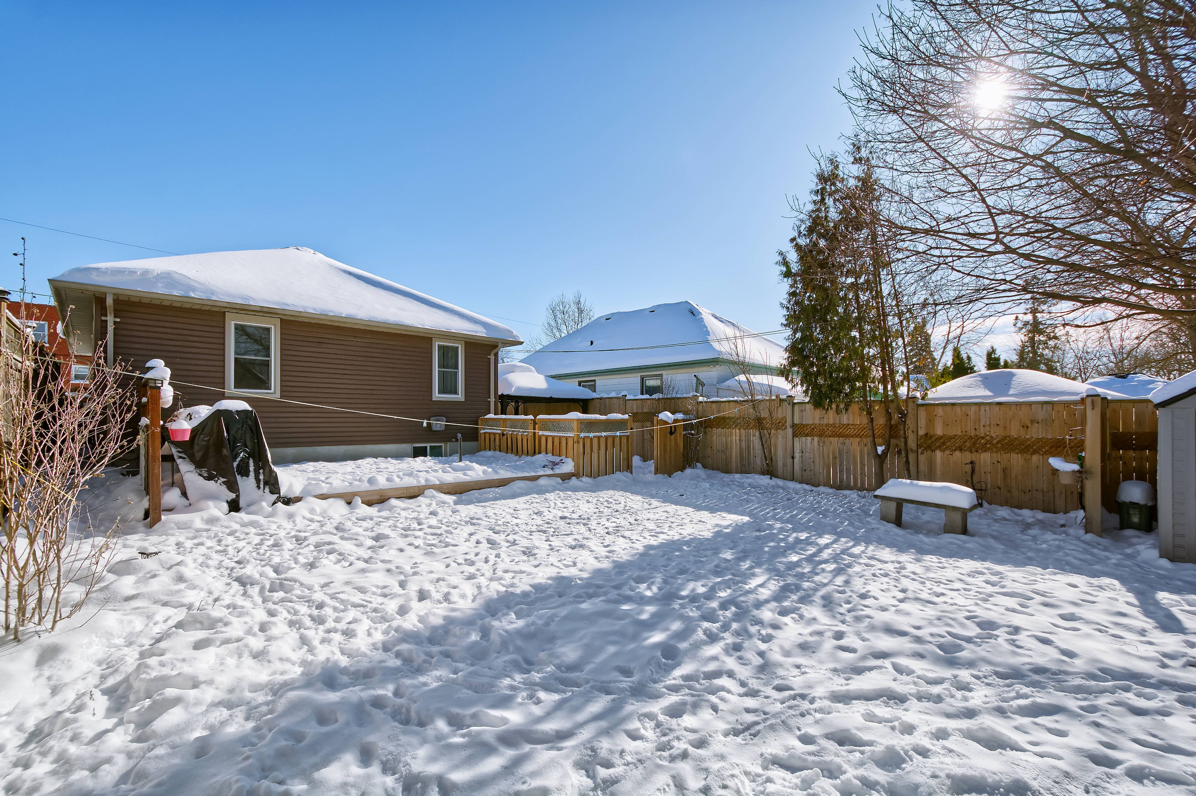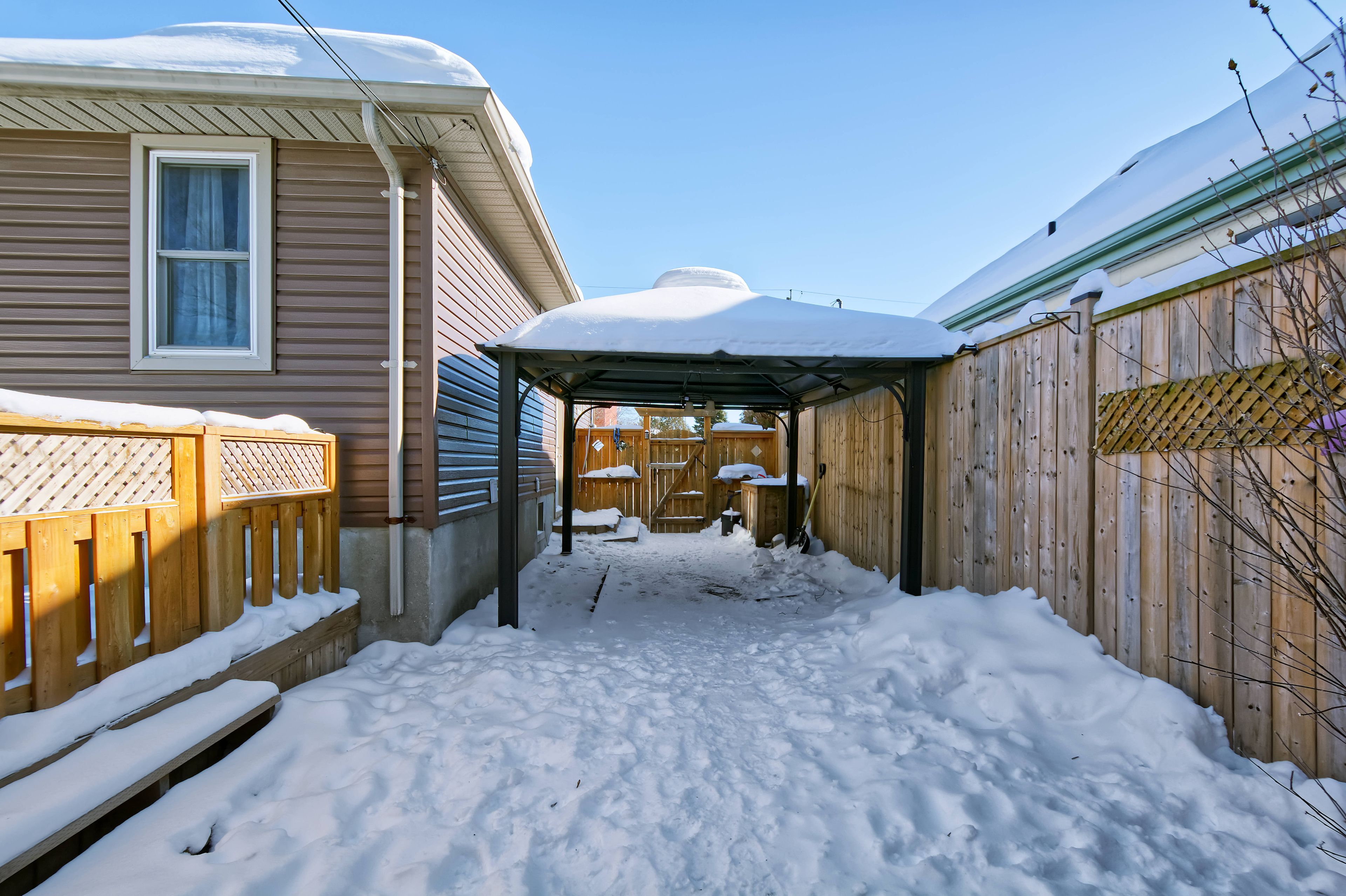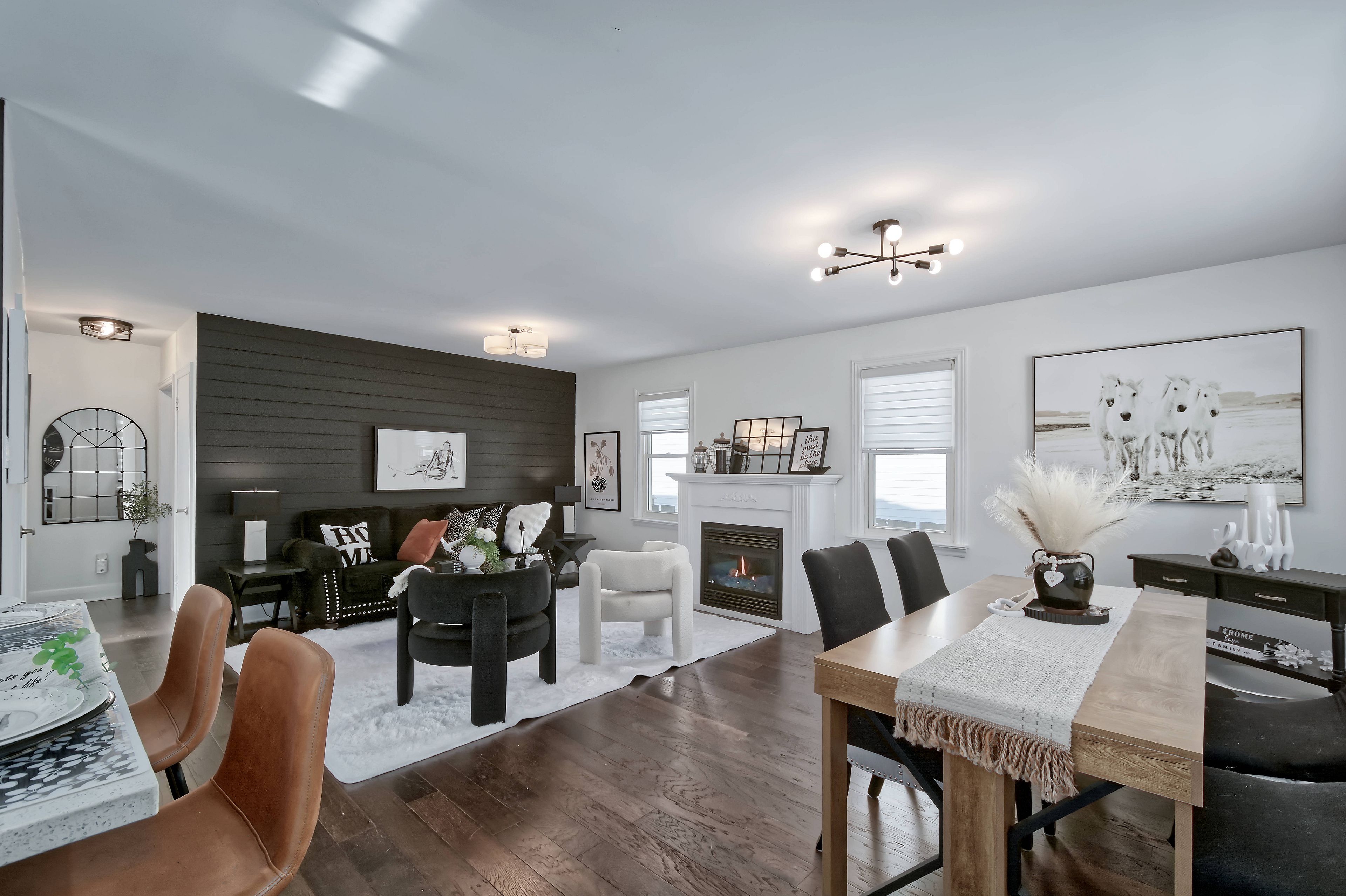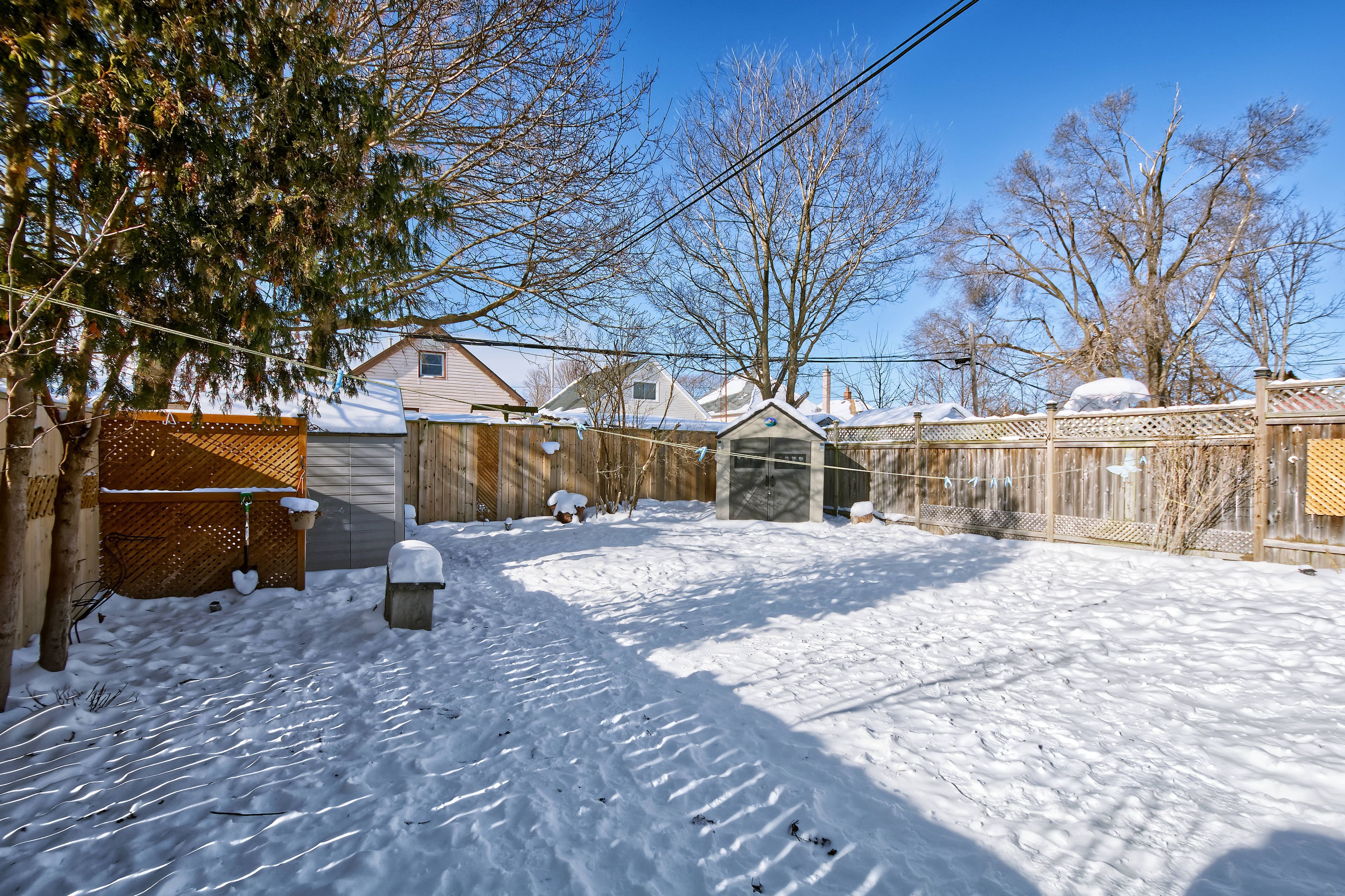 Stunning bungalow offers modern comfort with thoughtful updates throughout. The open-concept main floor is bright and welcoming, featuring updated lighting, ceiling fans, durable flooring, and contemporary finishes that create a stylish yet functional living space. The kitchen is a standout with stunning quartz countertops, black stainless-steel appliances, modern window coverings, and elegant light fixtures that enhance the space. The dining area is ideal for entertaining, highlighted by contemporary light fixtures and an eye-catching shiplap accent wall that adds personality and visual interest. The main bathroom features updated flooring for a clean, modern look and a primary bedroom that offers two closets. The lower level is finished providing versatile living spaces perfect for an office, gym, den, guest room, and rec room. Laundry has spray foam insulation and soundproofing beneath the primary bedroom and along the north back room. A water hookup in the south back room allows for a wet bar or potential second kitchen; wardrobes in this room are included. The entire home was freshly painted top to bottom within the last three years. Outdoor living is equally impressive with a 13' x 20' back deck, a 12' x 12' stone patio, gazebo, perfect for relaxing or entertaining. The fully fenced backyard is well maintained and includes two sheds (one recently purchased). A 10' x 12' pergola included. Parking is available for up to three vehicles. Nearby convenience of shopping, parks, schools, hwys make this location ideal. Pleasure to show!!