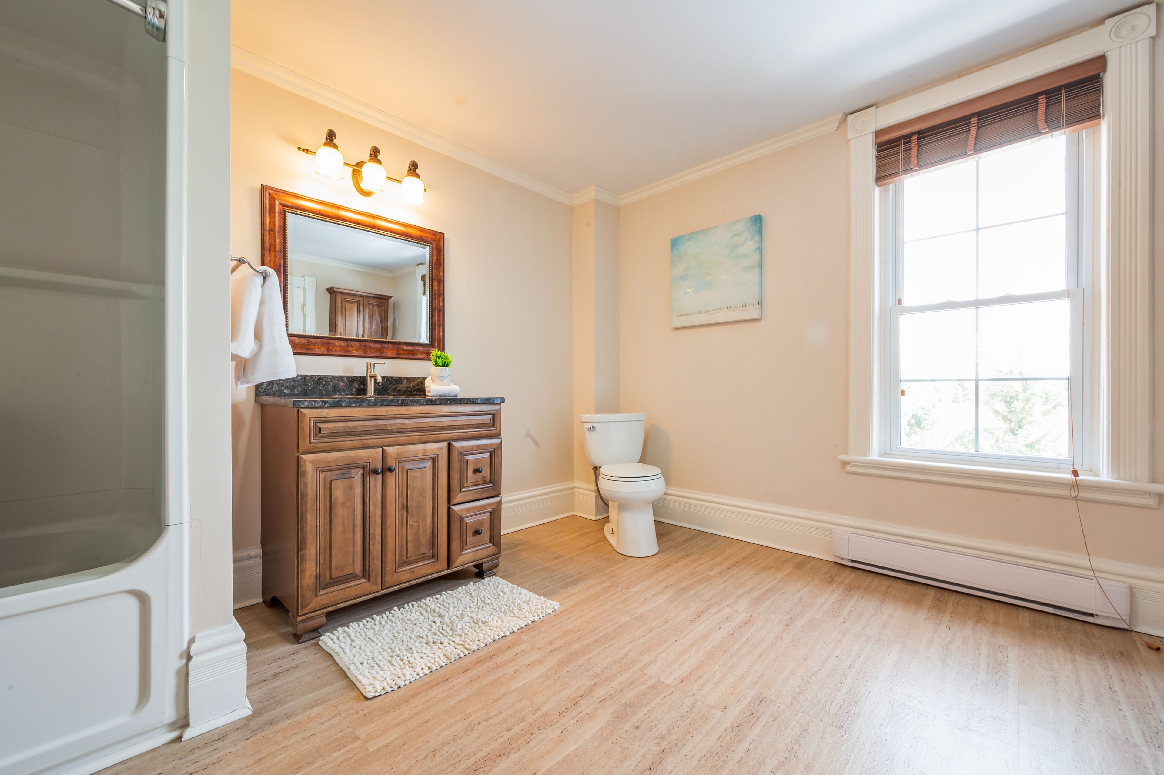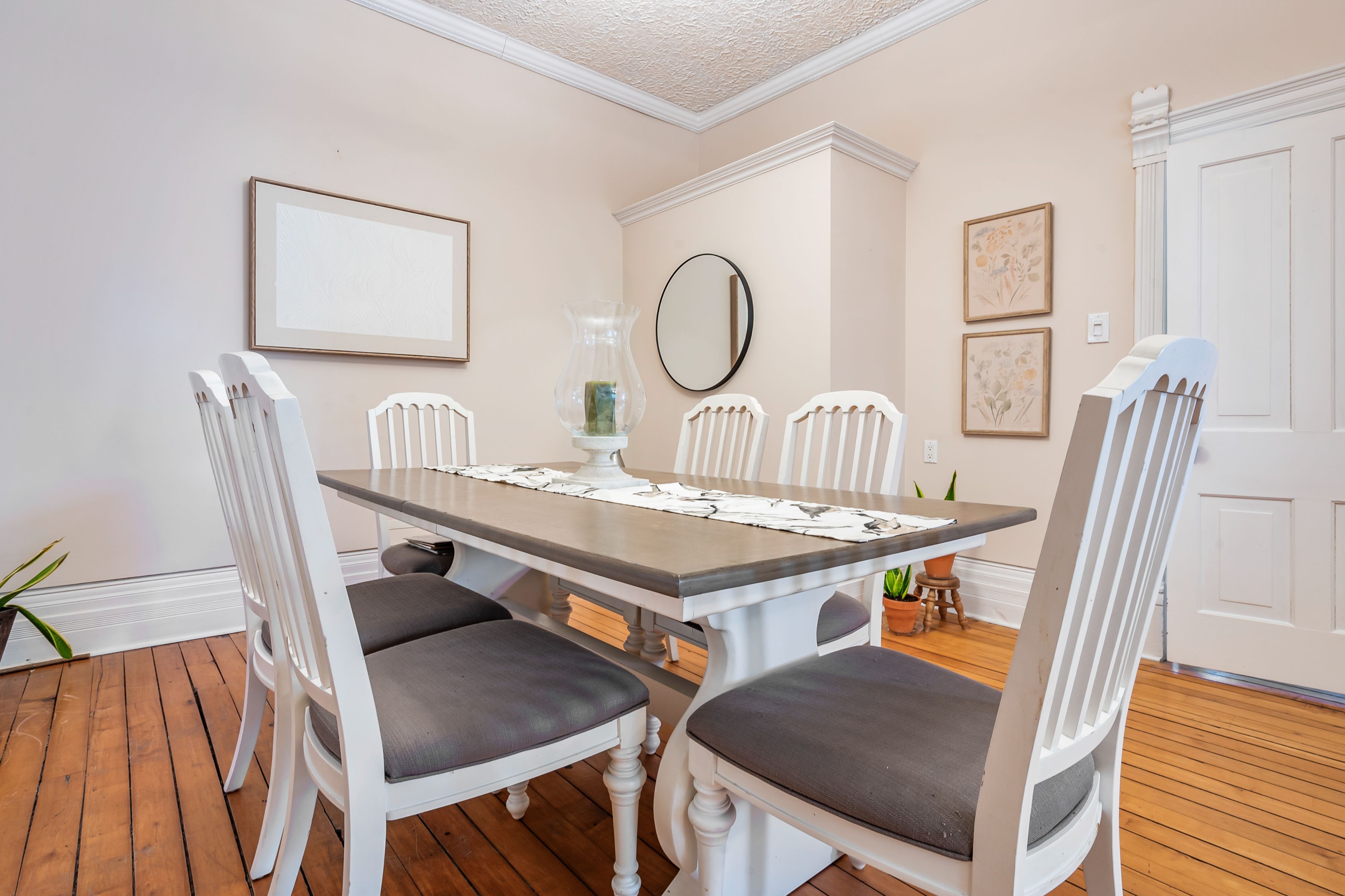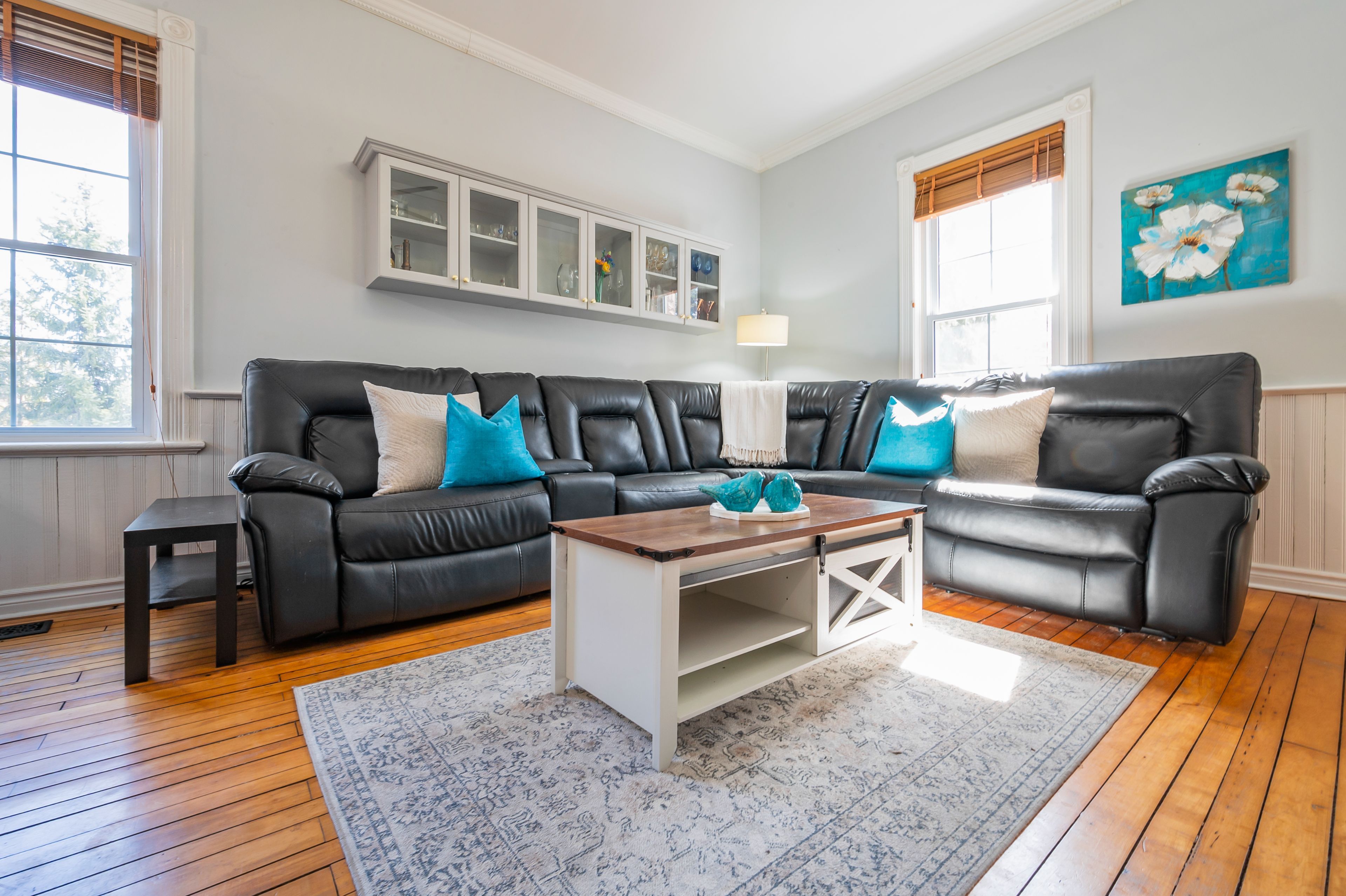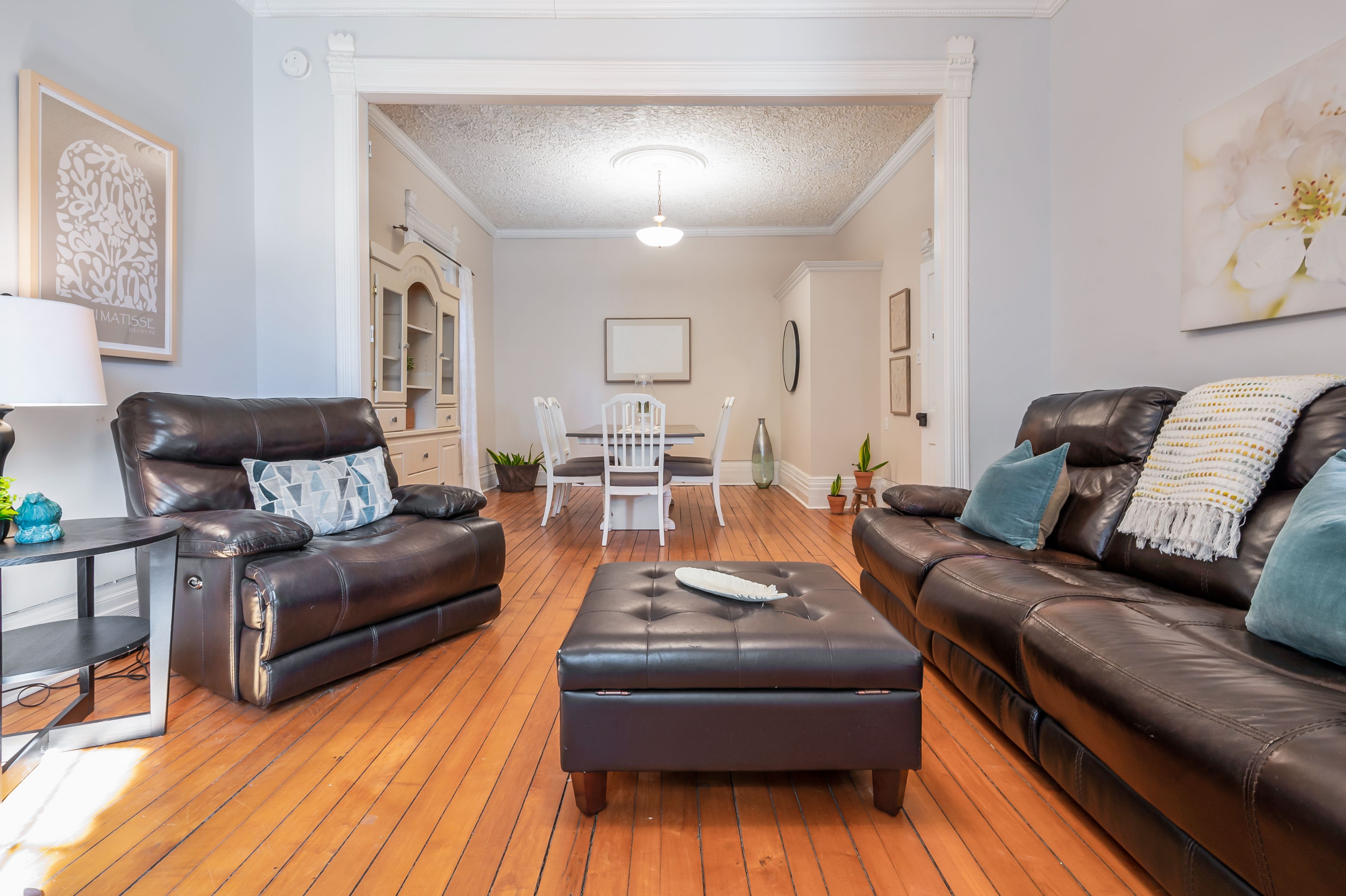 • Airy 10ft ceilings and original hardwood floors create a warm atmosphere.