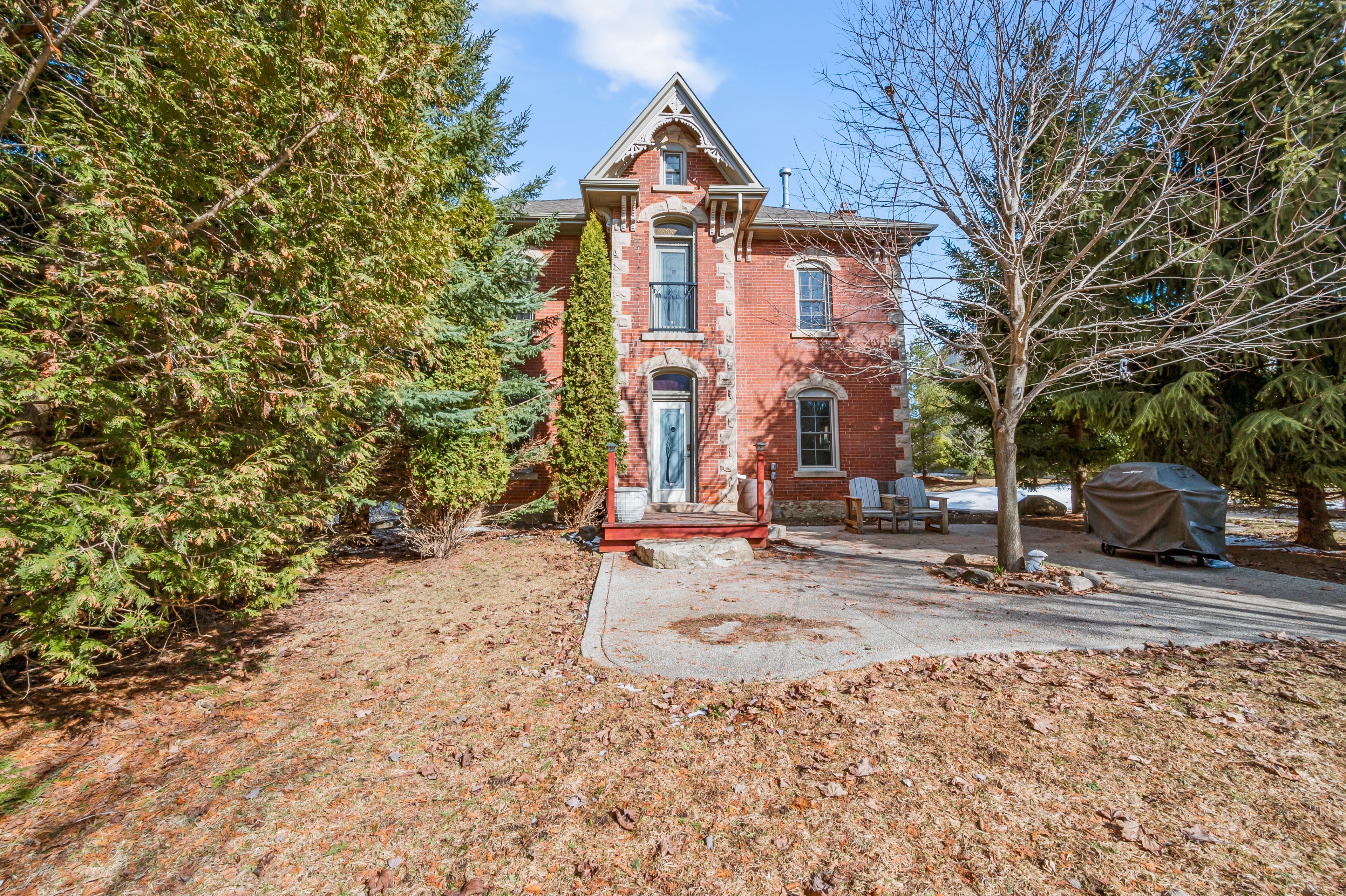 This 2. 5-storey red brick victorian is a true standout in mono's fieldstone neighbourhood. Set on a sprawling, just-under-half-acre lot among other executive homes, it beautifully combines historic charm with fresh updates. You get the perfect mix of character and modern comfort, all while staying only minutes from the conveniences of town. 10ft ceilings on the main floor and 9ft ceilings upstairs create an open, airy feeling throughout. Original maple hardwood floors, 12in baseboards, and rich wood trim add a sense of warmth and personality, while the spacious rooms make it easy to gather with family and friends. The kitchen has been beautifully updated with quartz counters, a stylish backsplash, stainless steel appliances, and a modern eat-at peninsula. It flows naturally into the family room, a space that is flexible enough to serve as an oversized dining area if that better fits your lifestyle. For more formal occasions, there is a separate dining room, along with a bright living room featuring a cozy woodstove for those nights when you just want to curl up and relax. Upstairs, three large bedrooms provide plenty of space, alongside a generous main bath that connects directly to the primary suite. Given its size, there is great potential to divide this space into two separate bathrooms in the future. Modern living is made even easier with laundry located on this level as well. The finished third floor is a fantastic bonus, offering a light-filled loft that can serve as a fourth bedroom, a quiet home office, or a creative space for play and hobbies. The backyard feels like a private retreat. South-facing and framed by mature trees and tall cedars, the outdoor space features a stone patio, fire pit, and garden shed, making it an ideal spot to relax or host summer get-togethers. 91 french drive is a home with history and heart, thoughtfully updated to suit today's lifestyle.