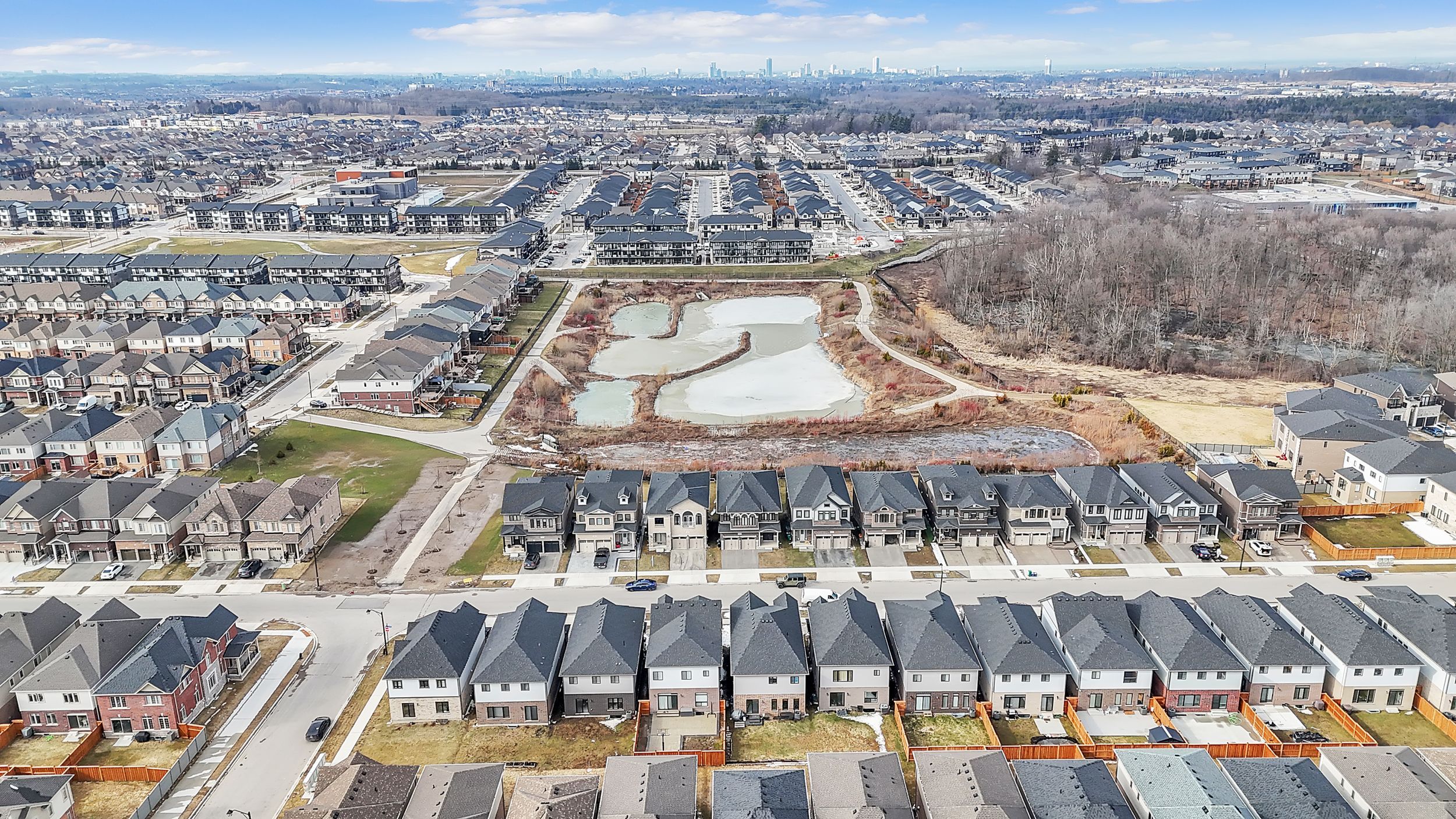 • Backs onto a pond and ravine for scenic views and privacy.