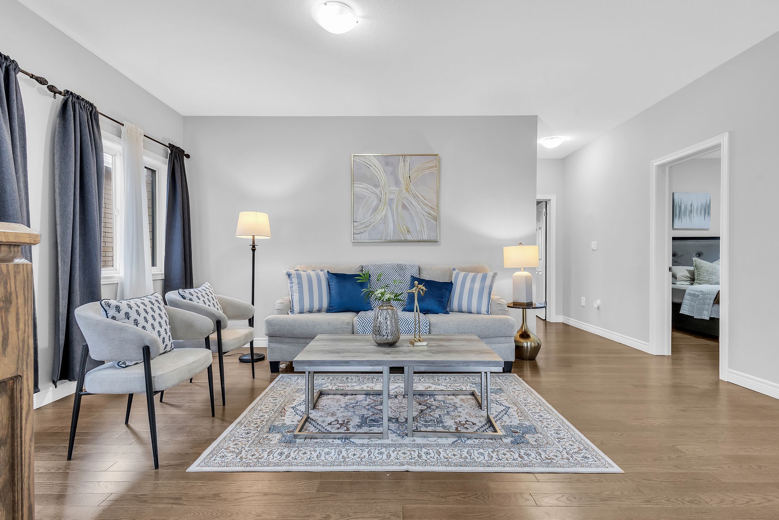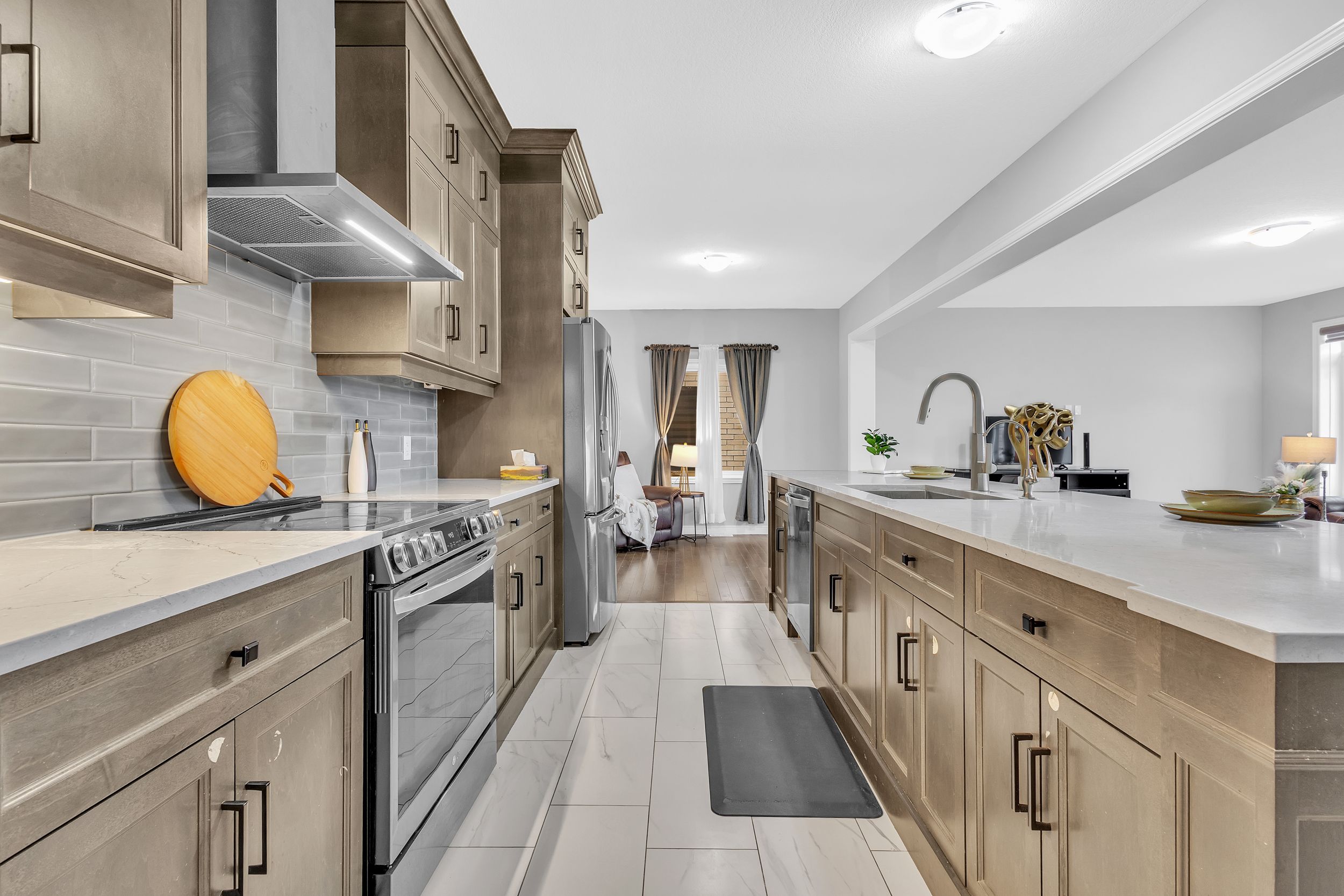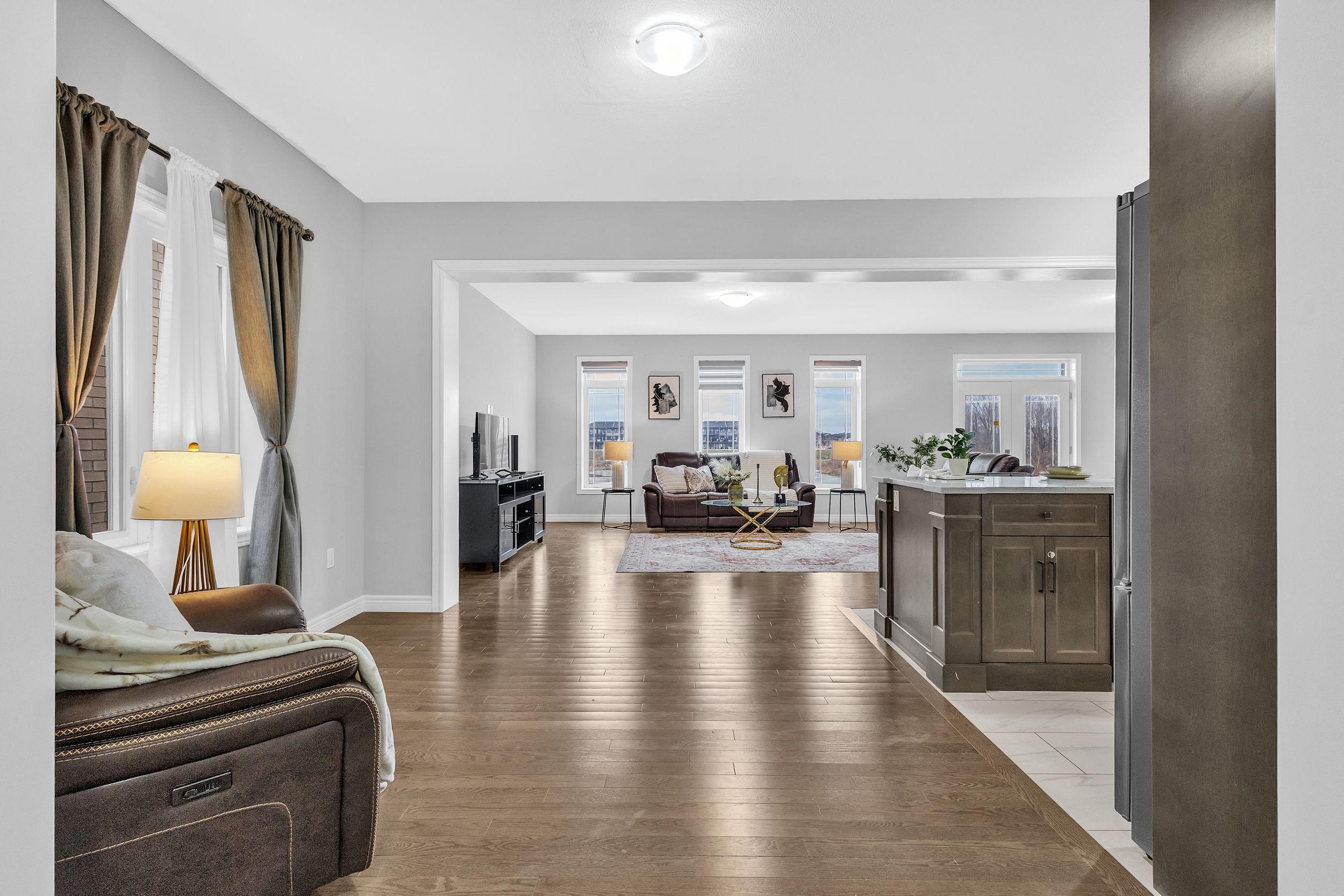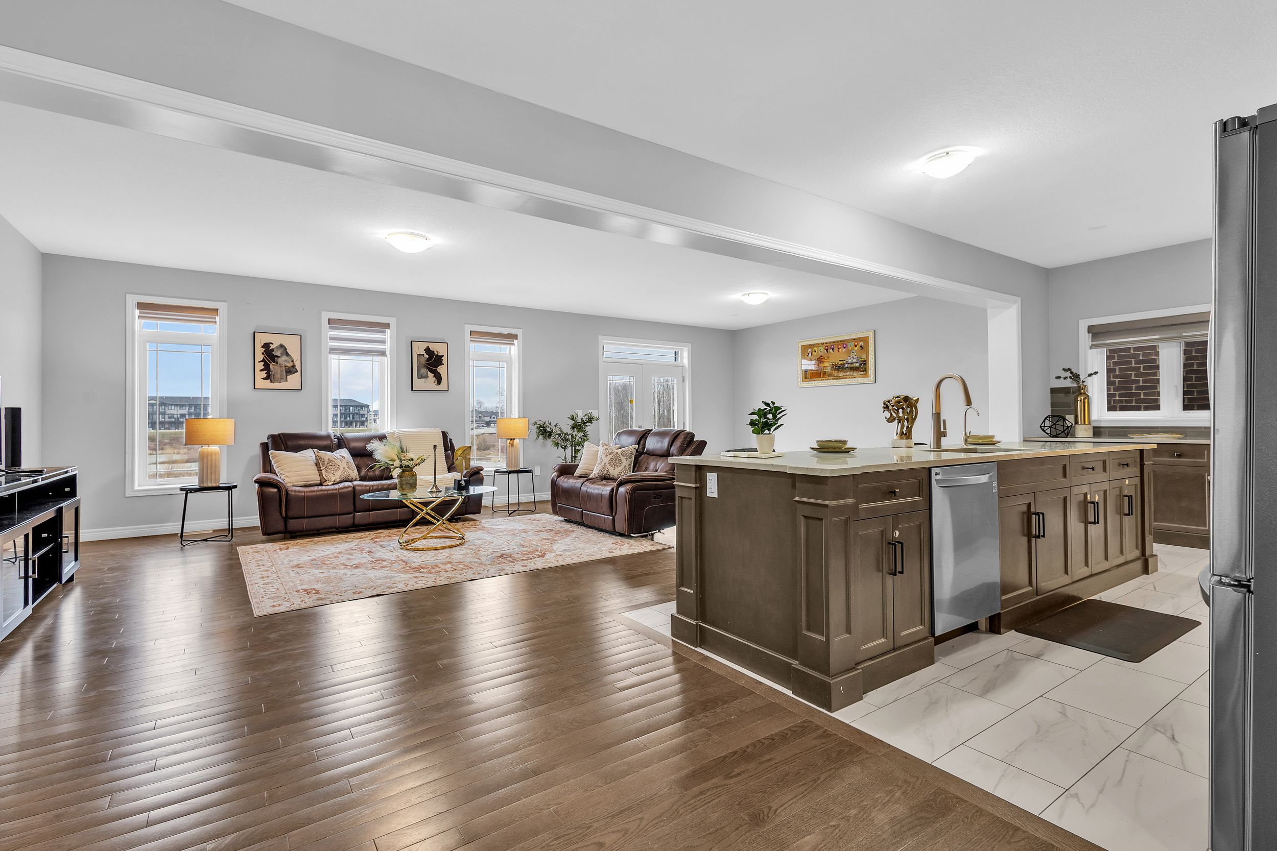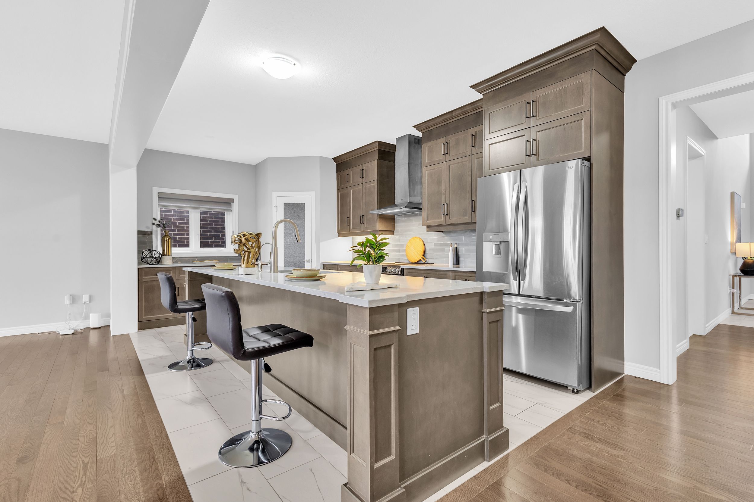 • Upgraded features include 9-ft ceilings and hardwood flooring.