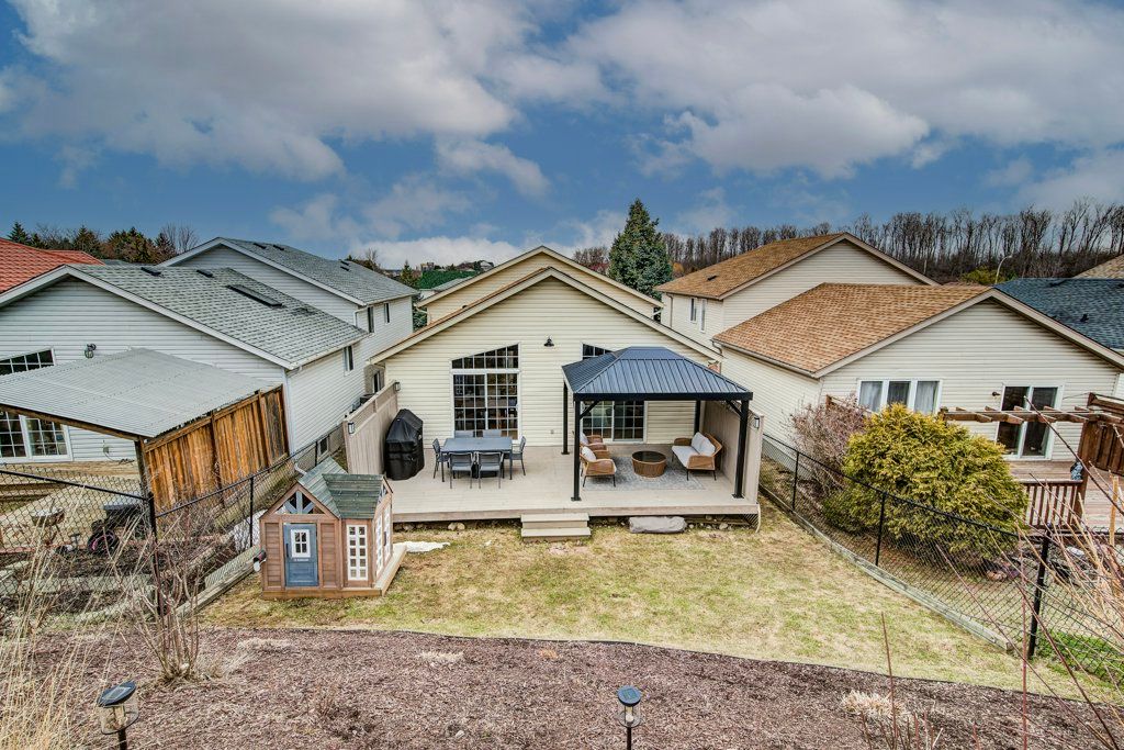 Welcome to 91 glencliffe court - a beautifully updated family home tucked away on a quiet, child-friendly court in one of kitchener's most desirable neighbourhoods. This spacious 4-bedroom, 3-bathroom home offers the perfect blend of modern upgrades and functional living space, ideal for growing families. Step inside to a bright, welcoming foyer and discover a private main floor office/4th bedroom with updated engineered hardwood flooring, along with a convenient 2-piece powder room. The heart of the home is the stunning open-concept kitchen and family room- perfect for everyday living and entertaining. The kitchen boasts white cabinetry, granite countertops, a large island with breakfast bar, stainless steel appliances, and stylish backsplash, all flowing seamlessly into the family room. The living area impresses with high ceilings, engineered hardwood flooring, a sleek electric fireplace, and motorized blinds, creating a warm yet modern atmosphere. Freshly painted throughout, with updated trim, new staircase, and modern railings. Upstairs, you'll find 3 generously sized bedrooms, all with engineered hardwood flooring, including a bright primary suite with two double closets and a private 4-pc ensuite featuring a jet tub, quartz counters, and luxury vinyl flooring. The main bathroom is beautifully finished with quartz counters, tile flooring, and california shutters. The finished basement offers even more living space with a large rec room, an additional flex room currently set up as a home gym, but could easily be an office/games room. Enjoy outdoor living in the fully fenced backyard featuring a refinished deck, pergola, and gas line for bbq (2024) - perfect for summer entertaining. Additional updates: furnace (2021), a/c (2025), shingles (2017), new glass in sliding door, and more. Double car garage and double-wide asphalt driveway provide ample parking. A true family home in a premium court location - close to parks, schools, and all amenities.