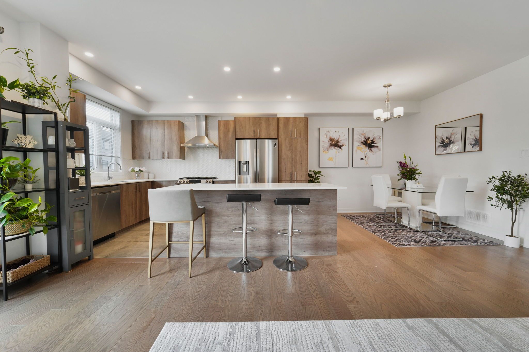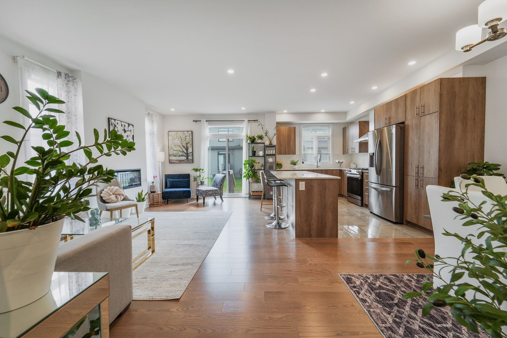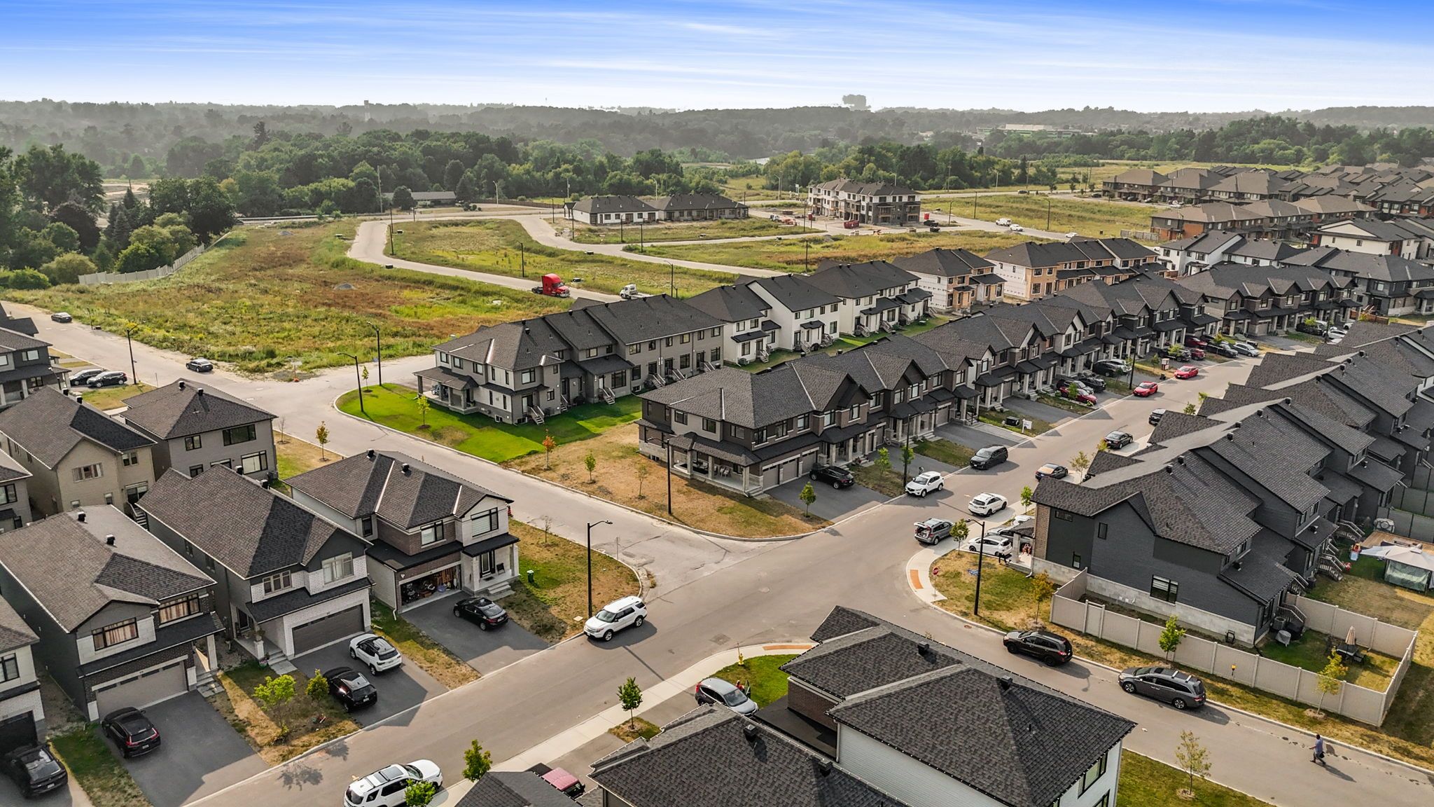 Visit this exceptional 2022 claridge-built corner-lot townhome, offering 2,245 sq. Ft. Of beautifully designed living space on a premium 4,111 sq. Ft. Lot. With 4 bedrooms, 4 bathrooms, and $40k in upgrades, this residence blends style, comfort, and sophistication. Step into a marble-tiled foyer leading to open-concept living, rich hardwood floors, and a chefs kitchen featuring quartz countertops, stainless steel appliances, and ample cabinet space. The sun-filled family room offers a lot of natural light and comfort, while the luxurious primary suite boasts a walk-in closet and with a separate shower. A fully finished lower level includes a spacious rec room and full bath. Enjoy a large backyard in the summer, double garage, and an unbeatable location close to top-rated schools, shopping, transit, parks. This move-in ready luxury home is an incredible opportunity not to be missed! Looking for a property with great location, lifestyle, luxury and value ?- this home has it all. Book your showing today!