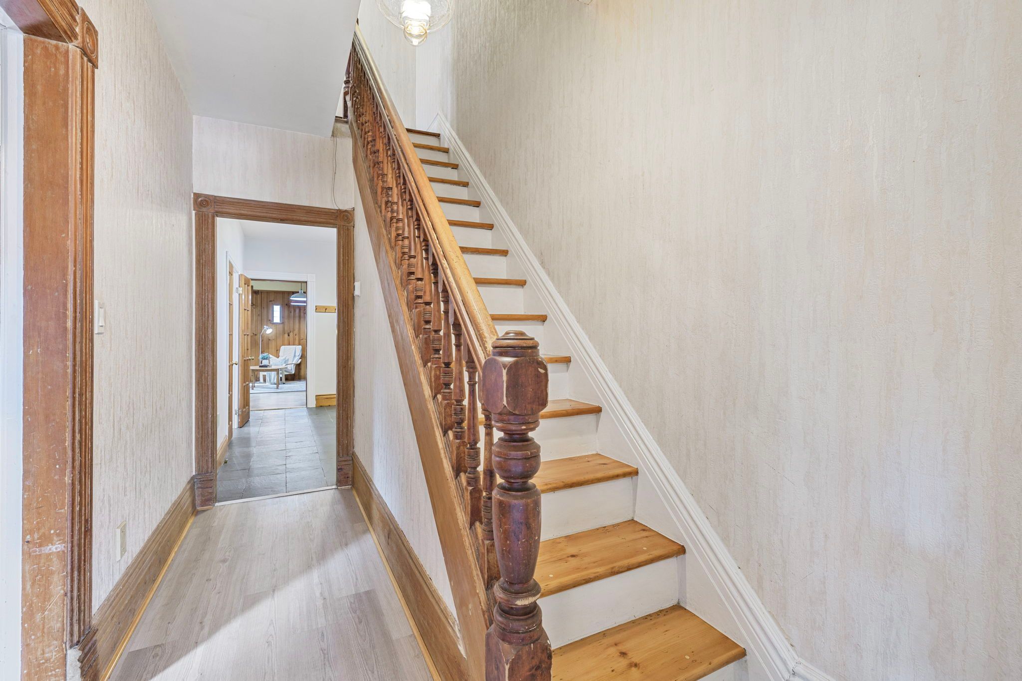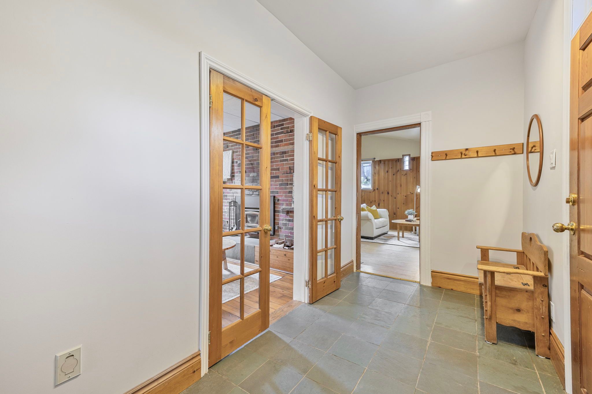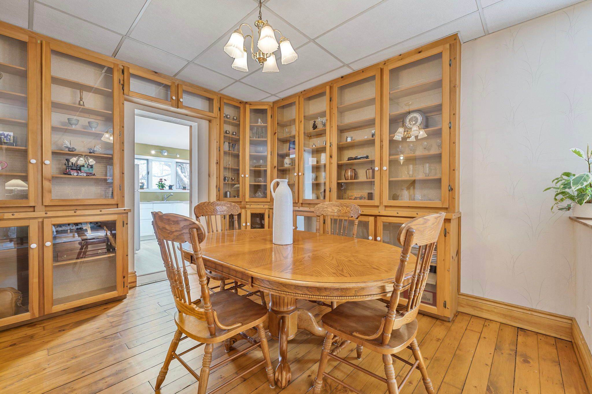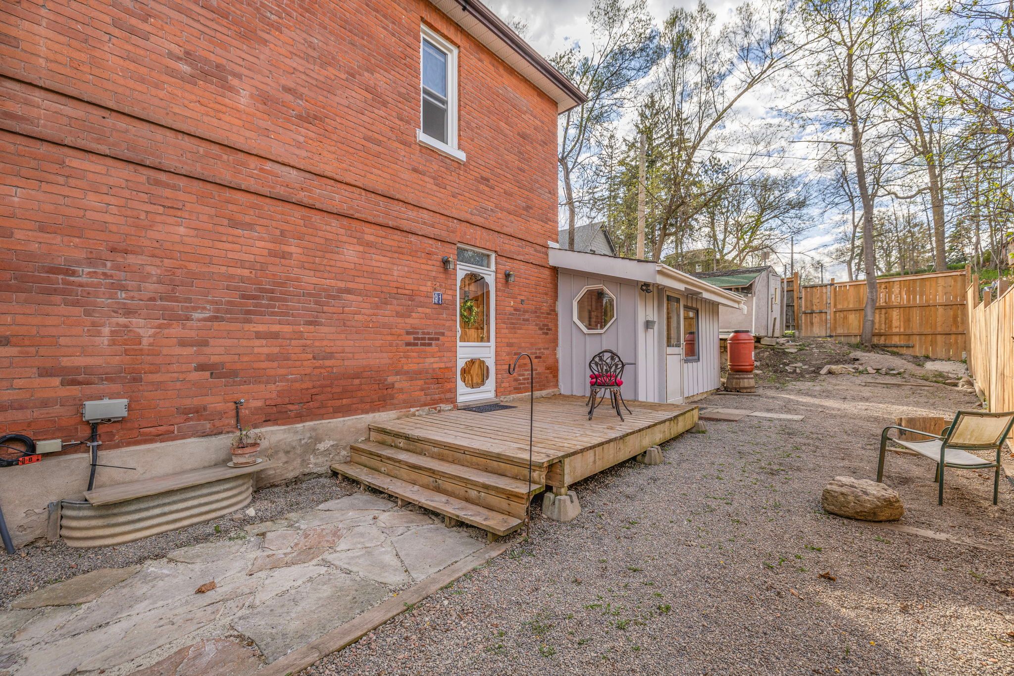 Full of warmth and personality, this property blends inviting living spaces with thoughtful updates throughout. From the welcoming front porch to the comfortable interior, the home offers a layout that feels both functional and effortlessly livable. Inside, a generous foyer opens into a bright, combined living and dining space designed for gathering. The dining area features impressive floor-to-ceiling built-in cabinetry-both beautiful and practical-while the adjoining living room is anchored by a cozy wood-burning fireplace. A spacious family room with soaring ceilings creates an airy retreat. Convenience is key on the main level, with a large laundry room that includes a separate shower, adding flexibility to the space. The bright kitchen, powder room, and a versatile den overlooking the front gardens-perfect for a home office, reading room, or play space-complete the floor. Outside, a private side patio surrounded by mature trees offers a peaceful setting for outdoor dining or quiet evenings. Upstairs features three bedrooms and a four-piece bathroom designed for comfortable family living. Rare for this central location, the property also offers a private driveway with parking for up to three vehicles. Just a short walk to the heart of downtown bolton where you will find shops, parks, and everyday amenities. This home delivers space, comfort, and unique features in an unbeatable setting.