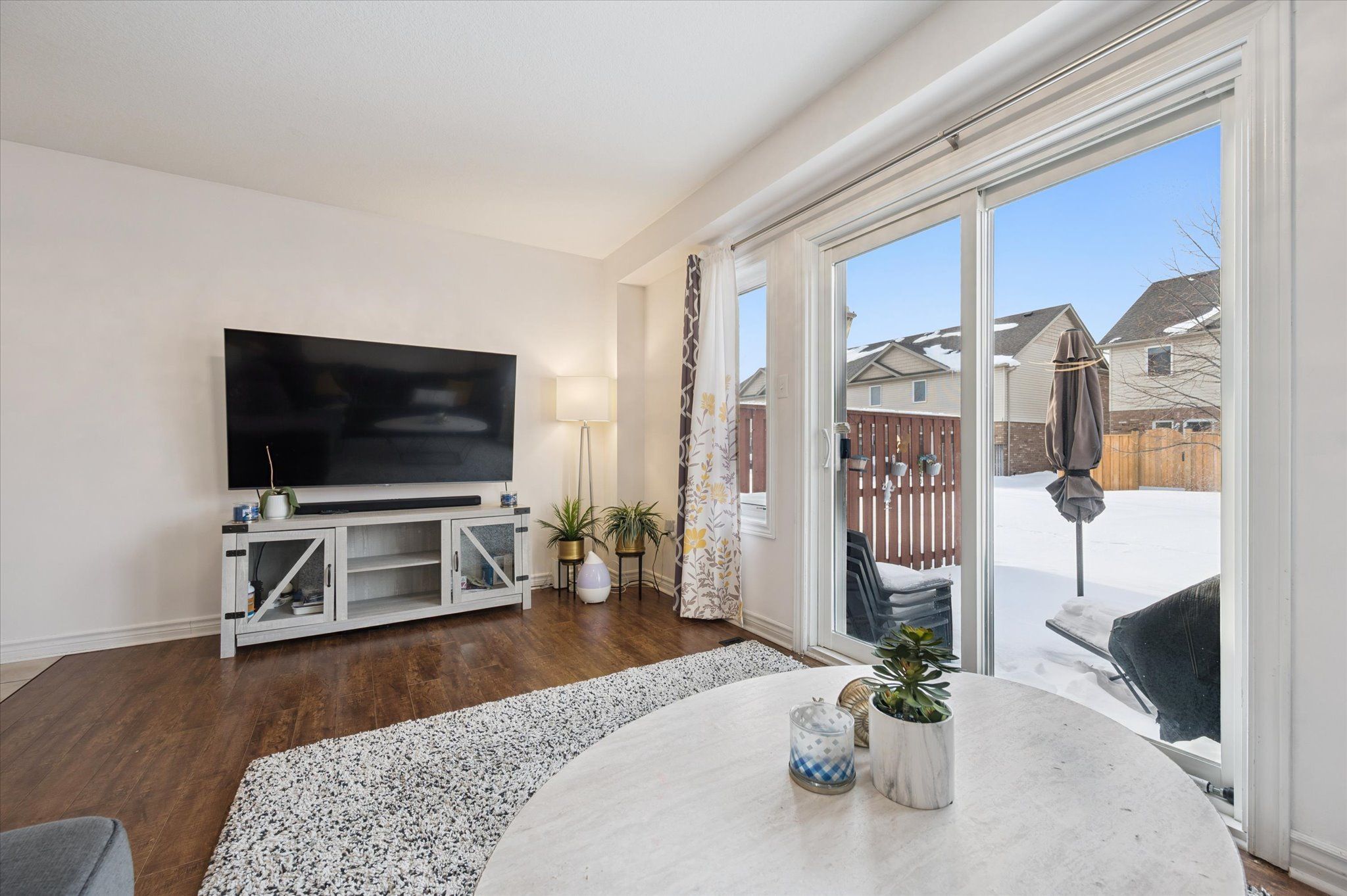 Welcome to 91 lambeth way, a beautifully maintained two-storey townhome located in guelph's highly desirable south end. Thoughtfully designed for everyday living, the open-concept main floor offers a functional layout that seamlessly connects the kitchen, dining area, and bright living room-perfect for both entertaining and relaxing at home. The kitchen features stainless steel appliances and ample workspace, while hardwood flooring adds warmth and character throughout the living area. A convenient two-piece bathroom completes the main level. Upstairs, you'll find three spacious bedrooms, a well-appointed four-piece bathroom, and the added convenience of second-floor laundry, making busy family routines that much easier. The finished basement provides additional living space ideal for a rec room, home office, or gym, and includes a three-piece bathroom for added flexibility. Outside, enjoy a private outdoor space perfect for summer bbqs and quiet evenings outdoors. Ideally situated within walking distance to excellent schools, parks, trails, and everyday amenities, this home offers the perfect blend of comfort, convenience, and family-friendly living in one of guelph's most sought-after neighbourhoods.
