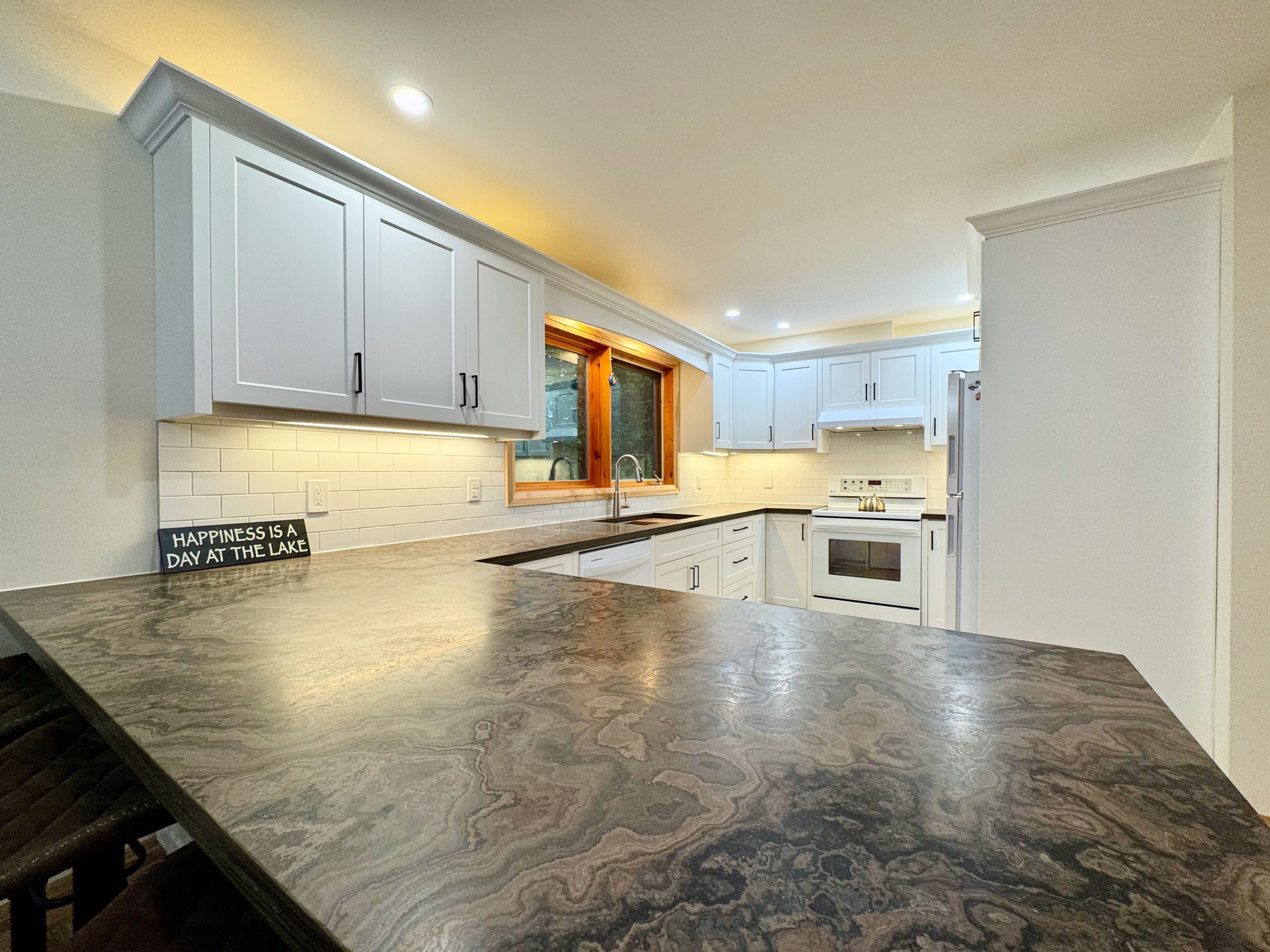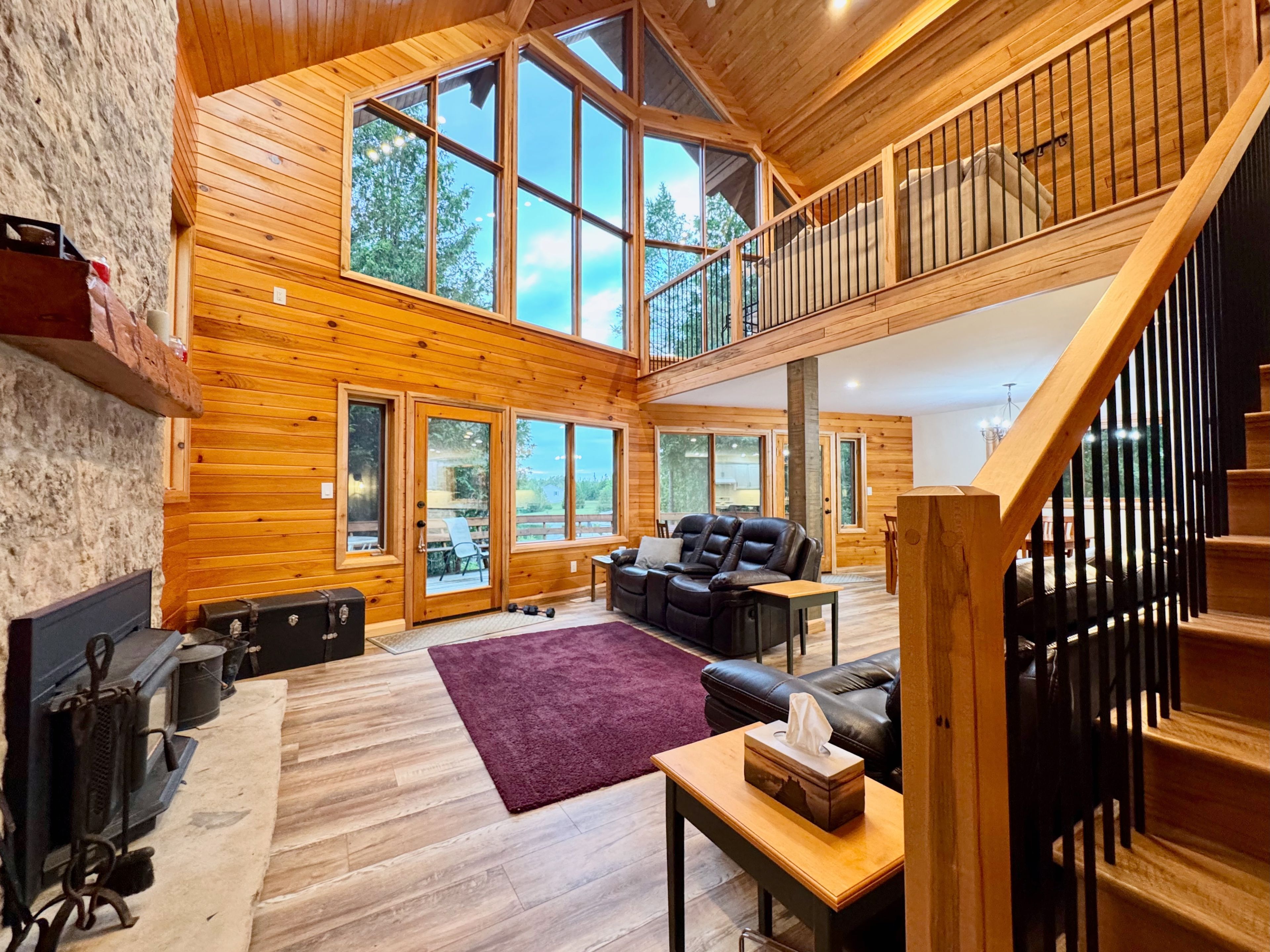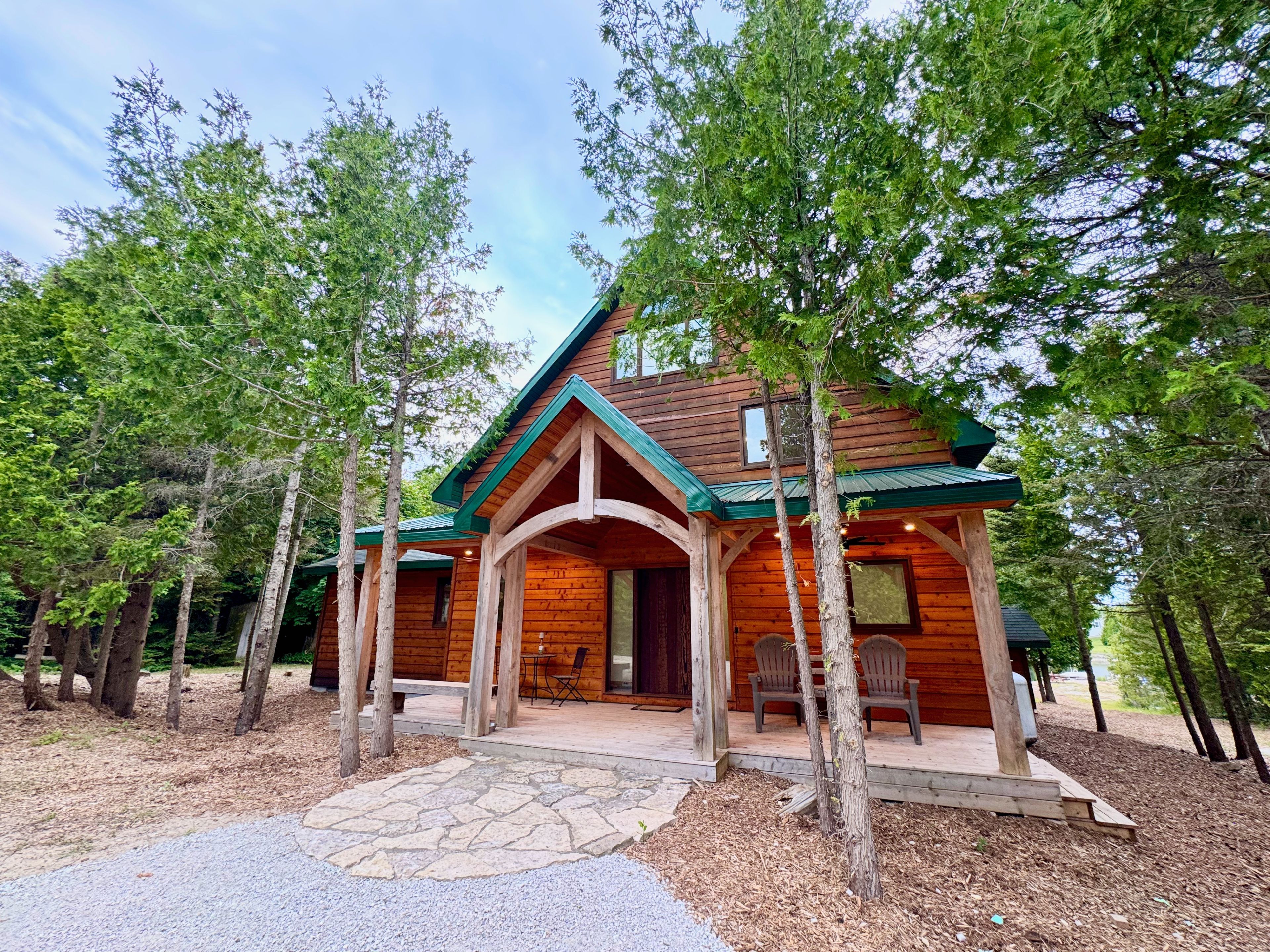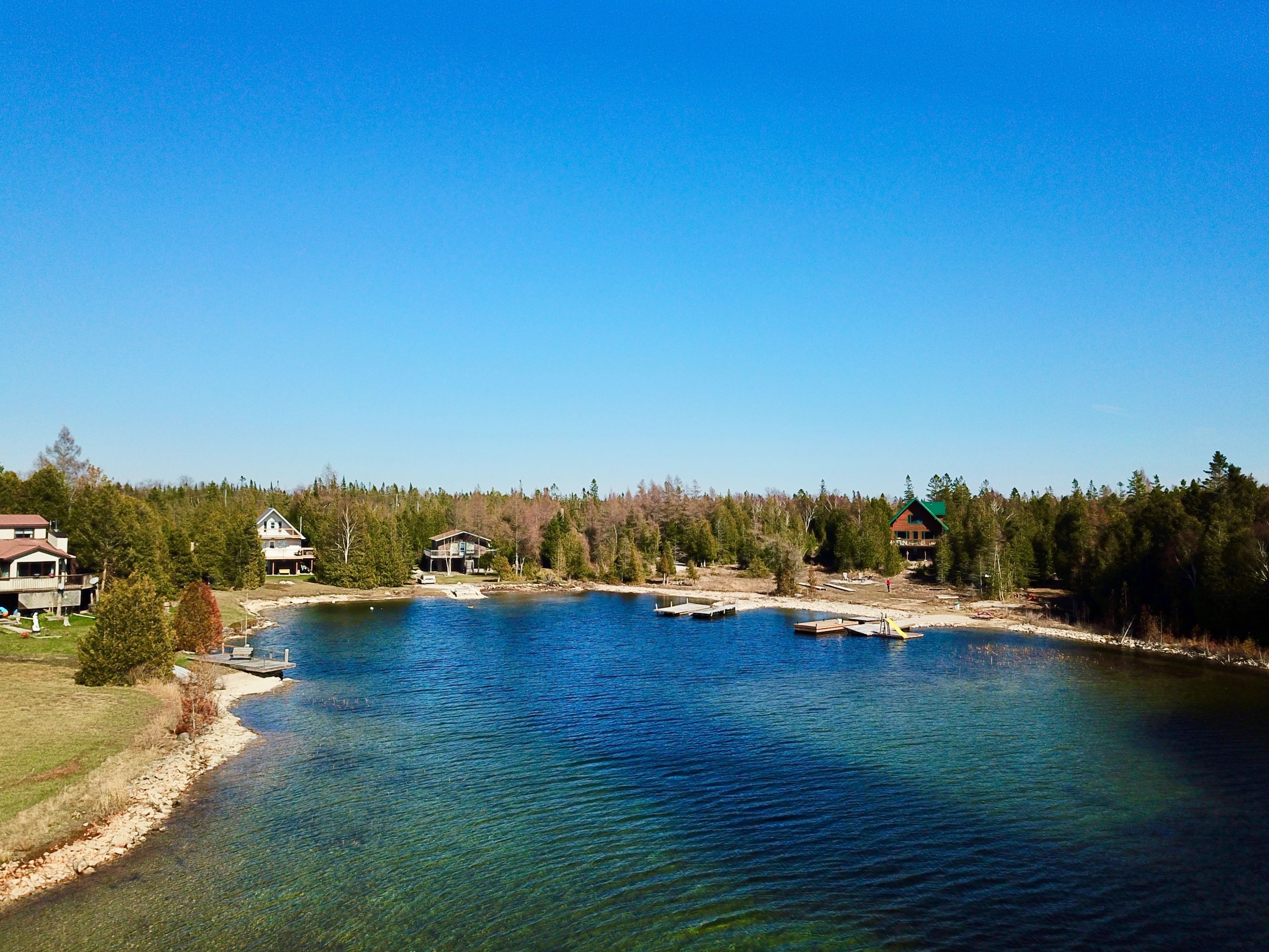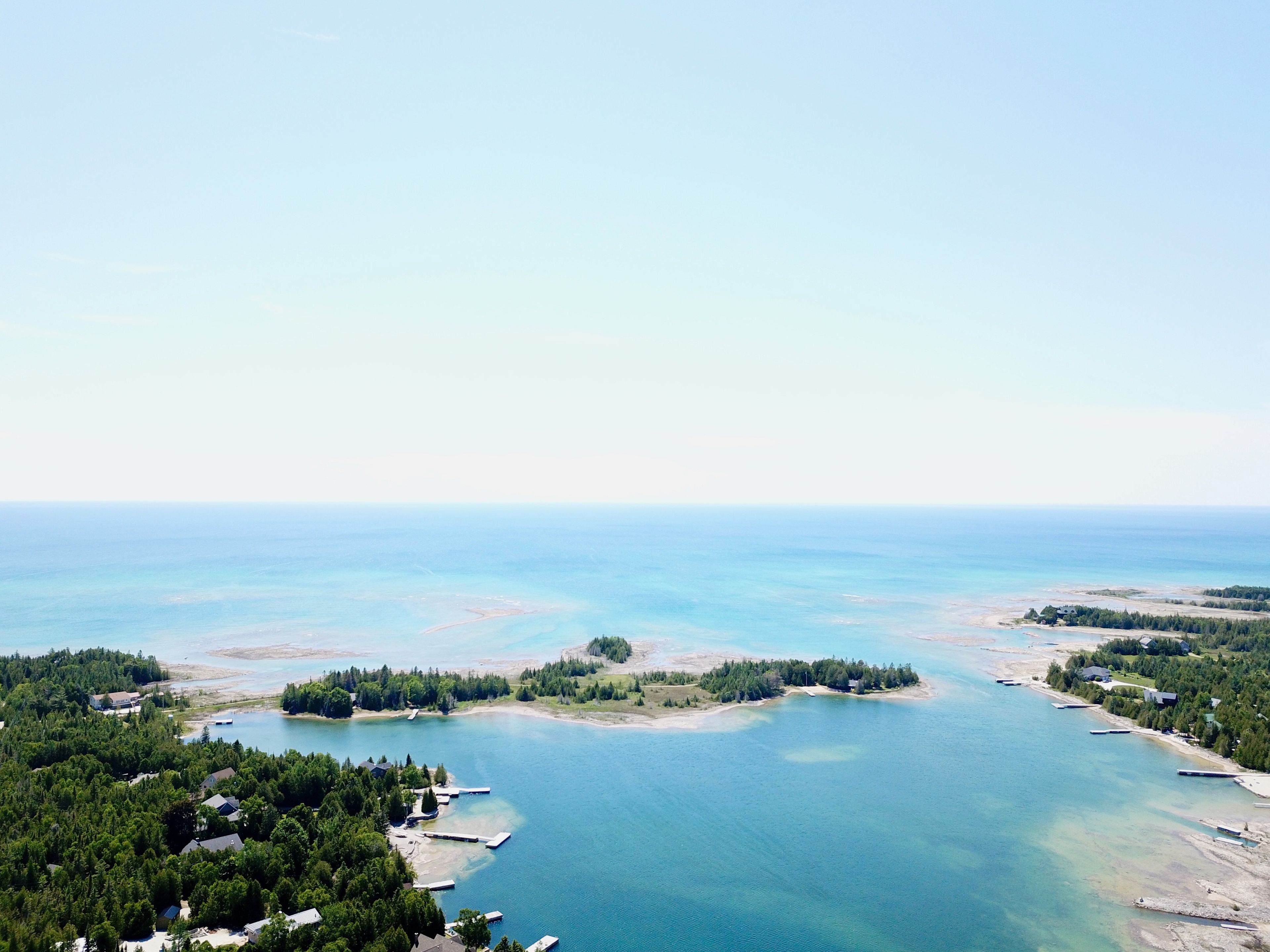 A 'must-see' waterfront home in exclusive little pine tree harbour on lake huron. Just walking up to the timber-framed covered front entry with 'custom-milled' solid front door system, you know that you are entering 'something special'. There is nothing ordinary about this 2,300+ sq ft 3-level waterfront vacation home, owned and built by an 'old-school' artisan wood carpenter. All of the details are 'custom'- interior doors are trim-milled from solid wood, kitchen cabinets and most windows are custom built - 'just for this home'. High-end wood and natural stone details everywhere ... In the oversized main floor master retreat w/6pc ensuite, walk-out to private covered patio area andvaulted wood ceilings ... In the vaulted 2- storey great room with stone wall fireplace ... In theopen-concept, modern-white kitchen with solid wood cabinets and polished natural stone counters ... In the 2nd level vaulted-ceiling sitting room and the 3rd level loft getaway or 4bedroom space ... Custom craftsmanship apparent everywhere - inside & out! Modern mechanicals incl. Forced-air furnace. Natural wood siding and decking blends in perfectly with the 1 acre cedar fore stsetting property. Little pine tree harbour on lake huron offers deep, crystal clear water with protection from open water waves for safe water-sports & boat docking. Great mid-peninsula location - 15mins from lions head (shopping, hospital, marina, school), 20mins to national park &grotto, 25mins to tobermory & fathom-five marine park (flowerpots!). This special, finely crafted waterfront property is a must-see!!!