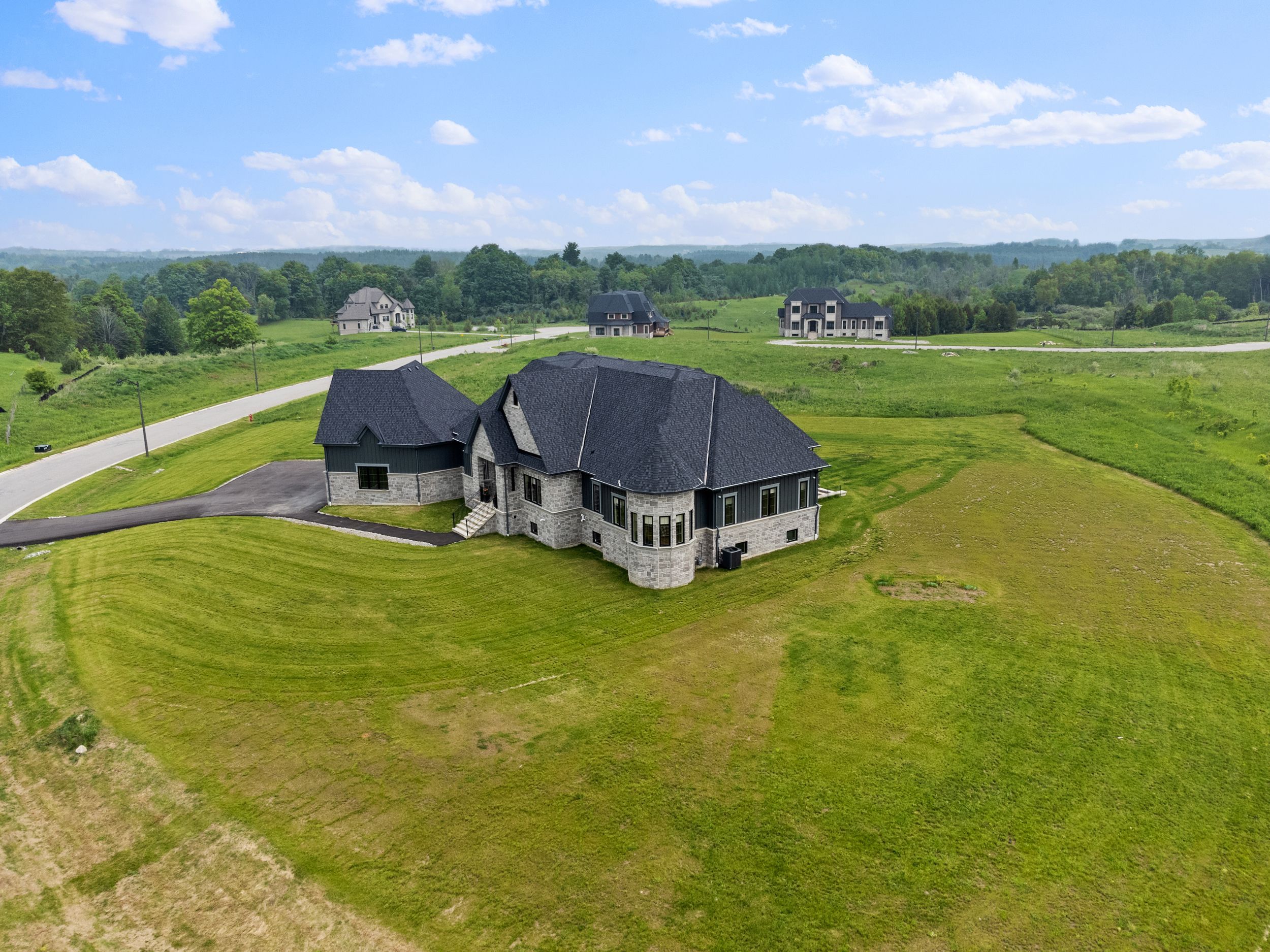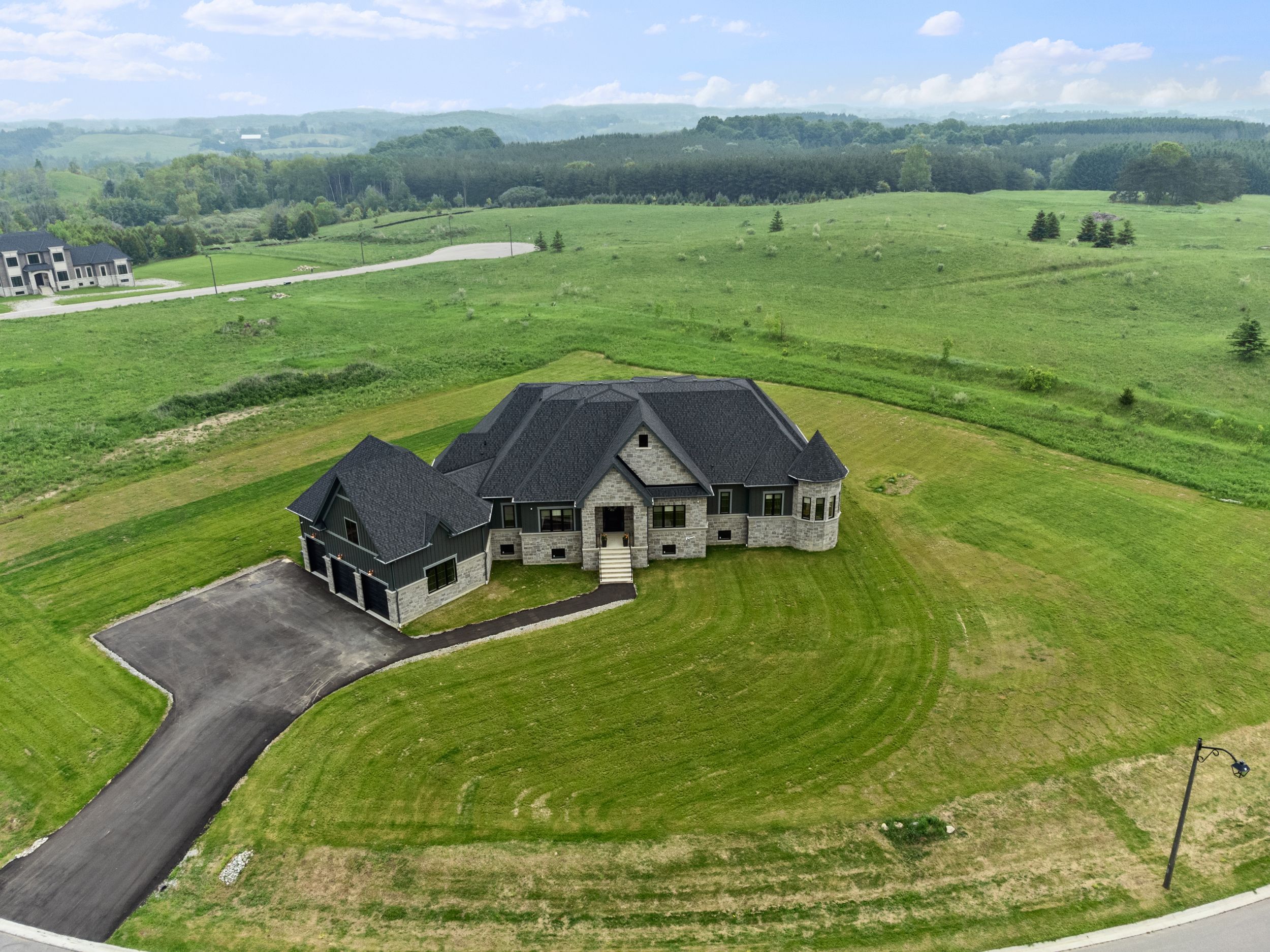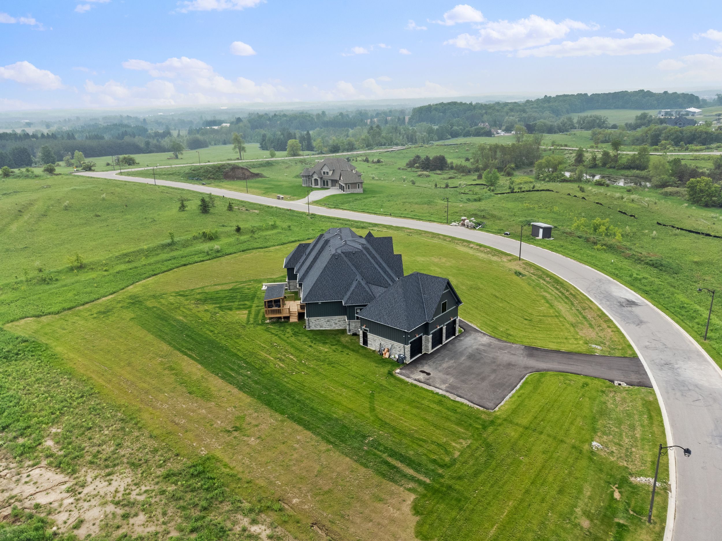 • Newly built modern estate on a large 1.596-acre lot in a serene setting.