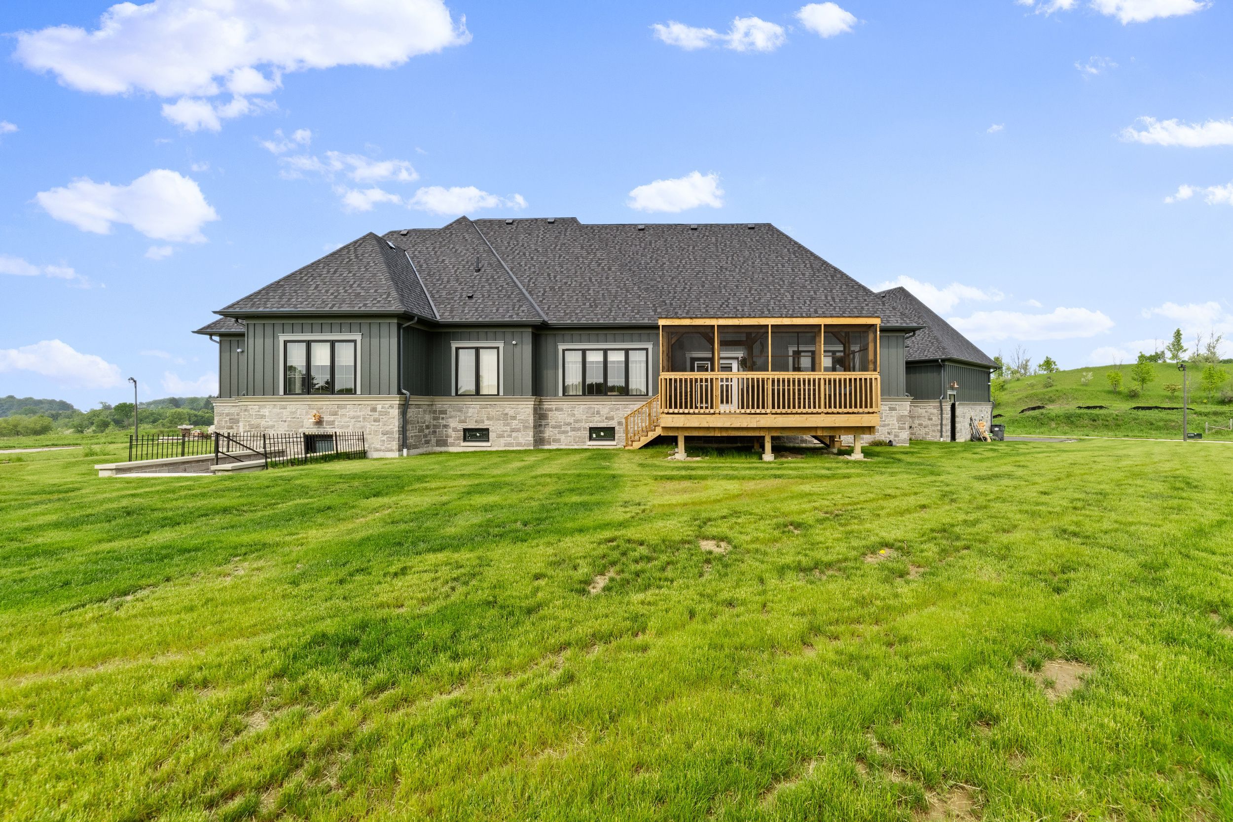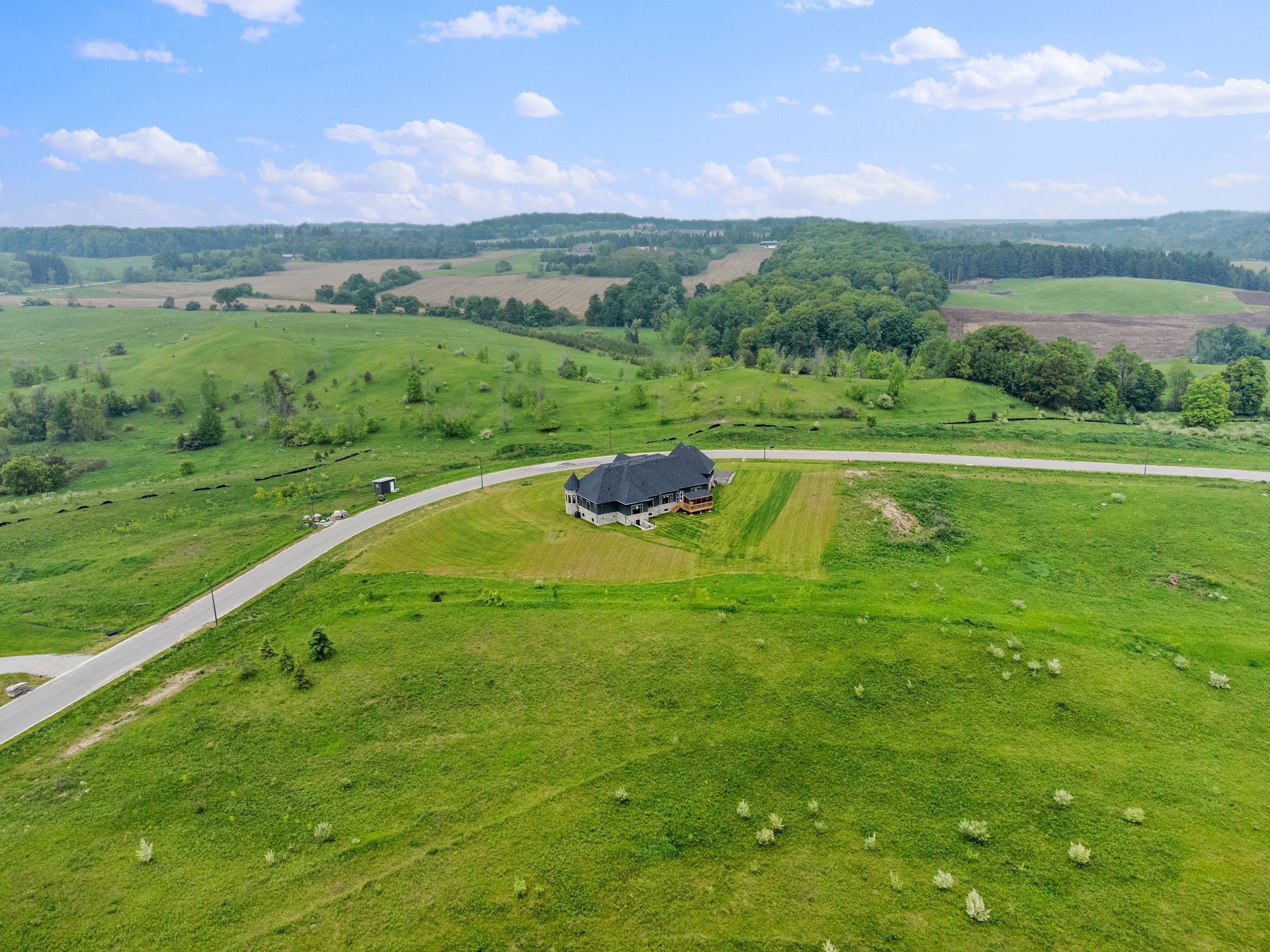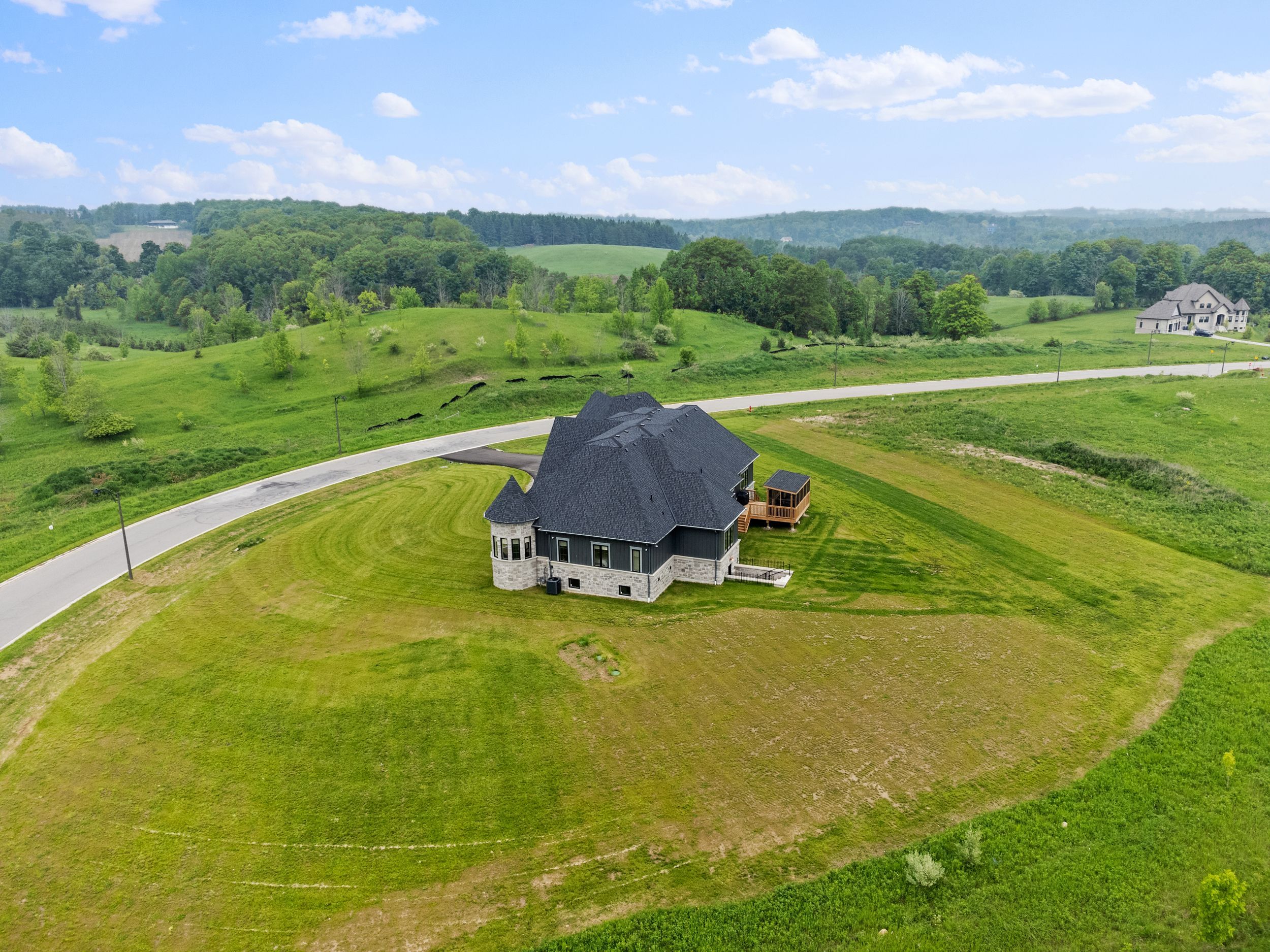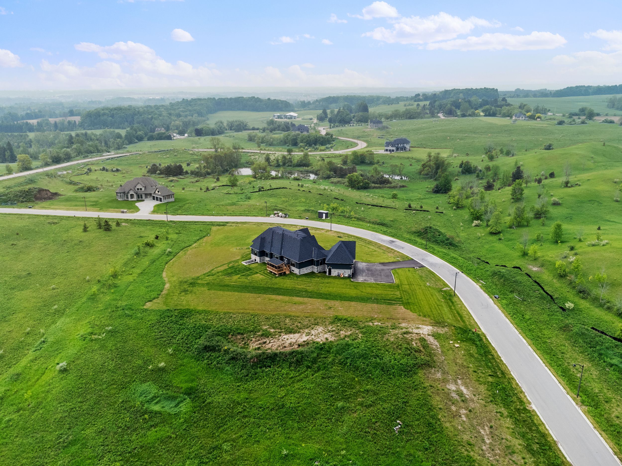 • Newly built modern estate on a large 1.596-acre lot in a serene setting.