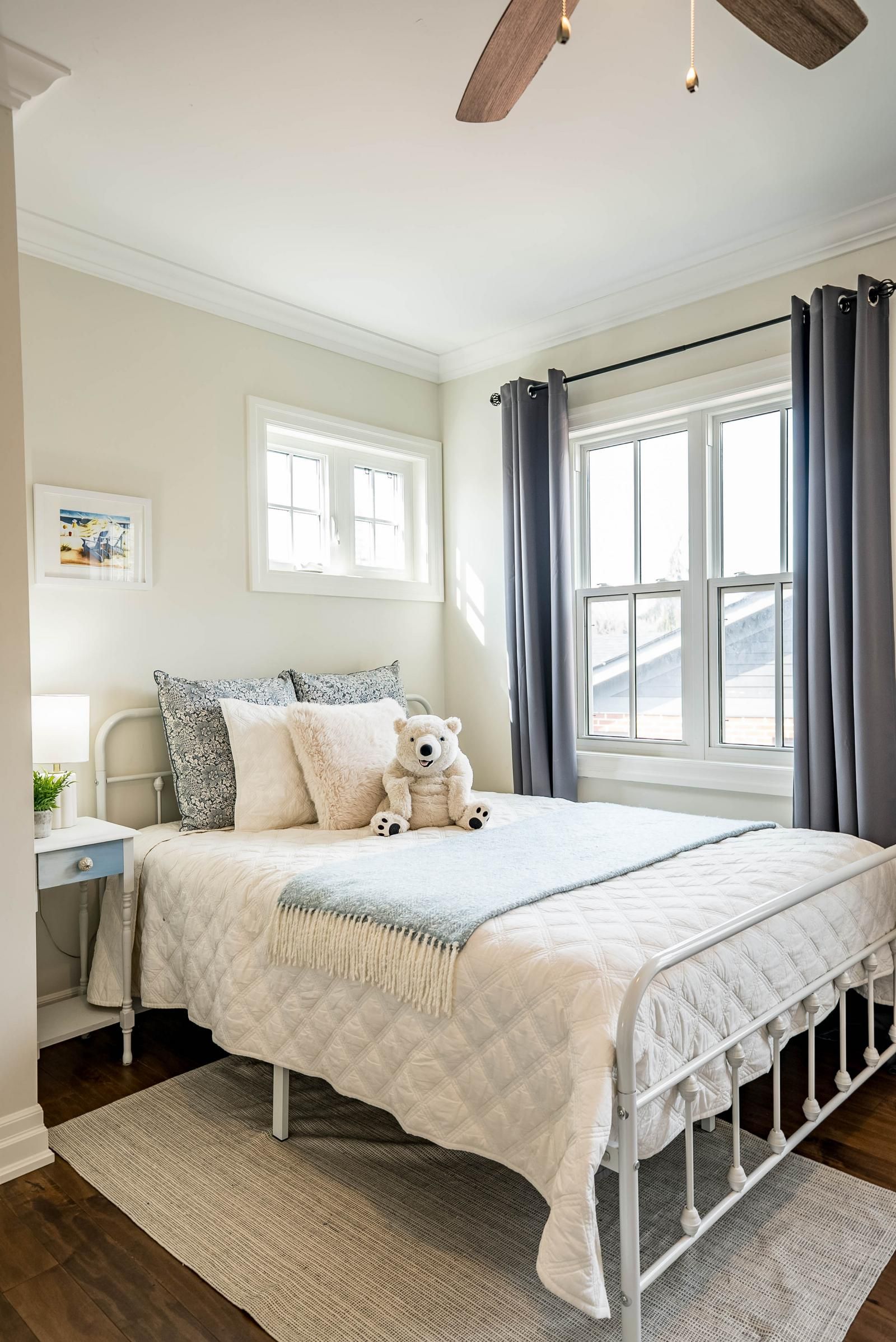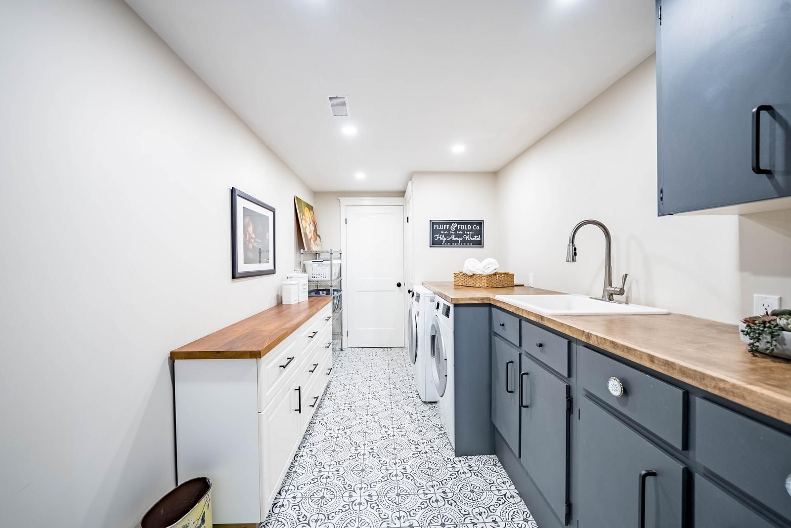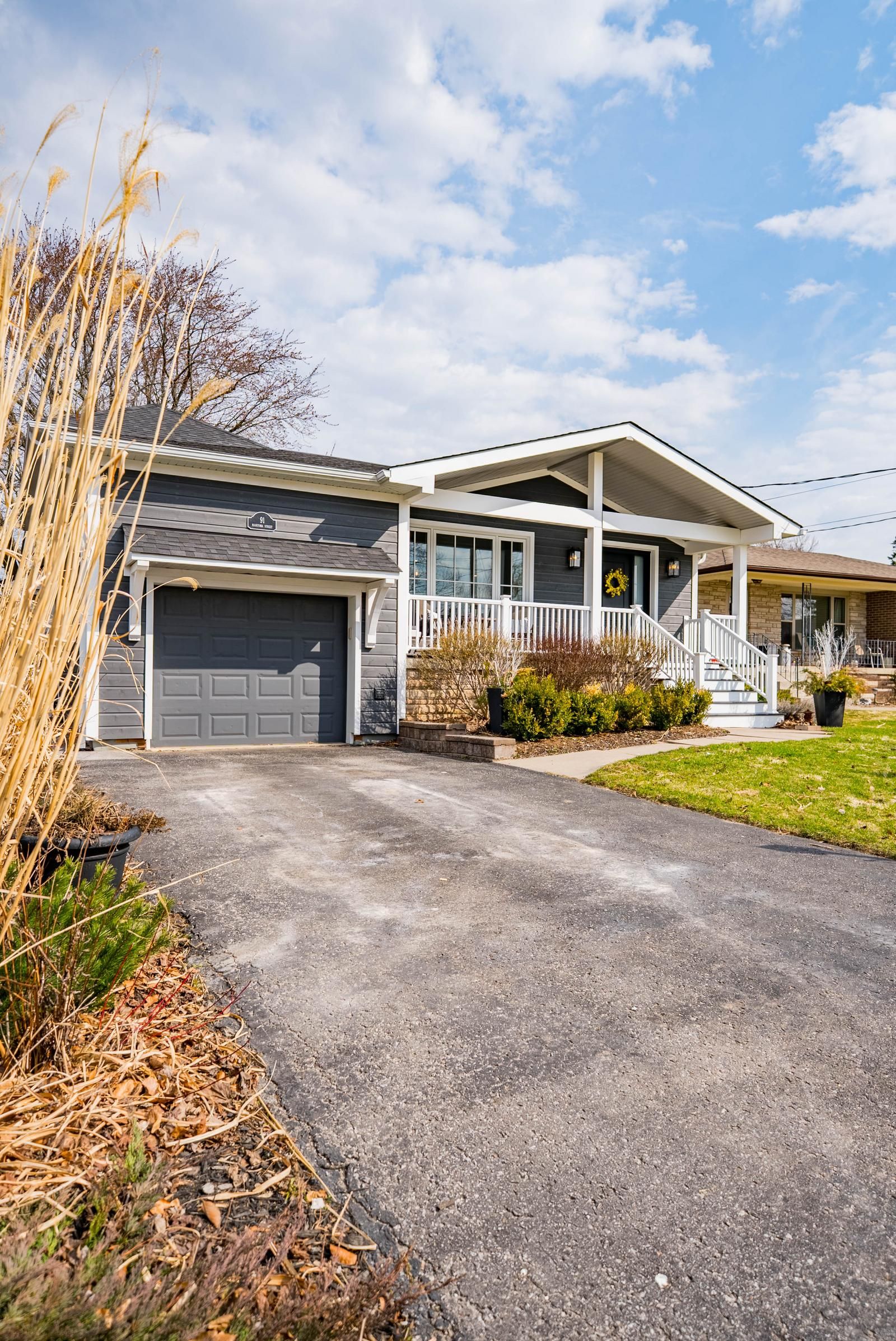 • Custom side-split home blending modern farmhouse and coastal design.