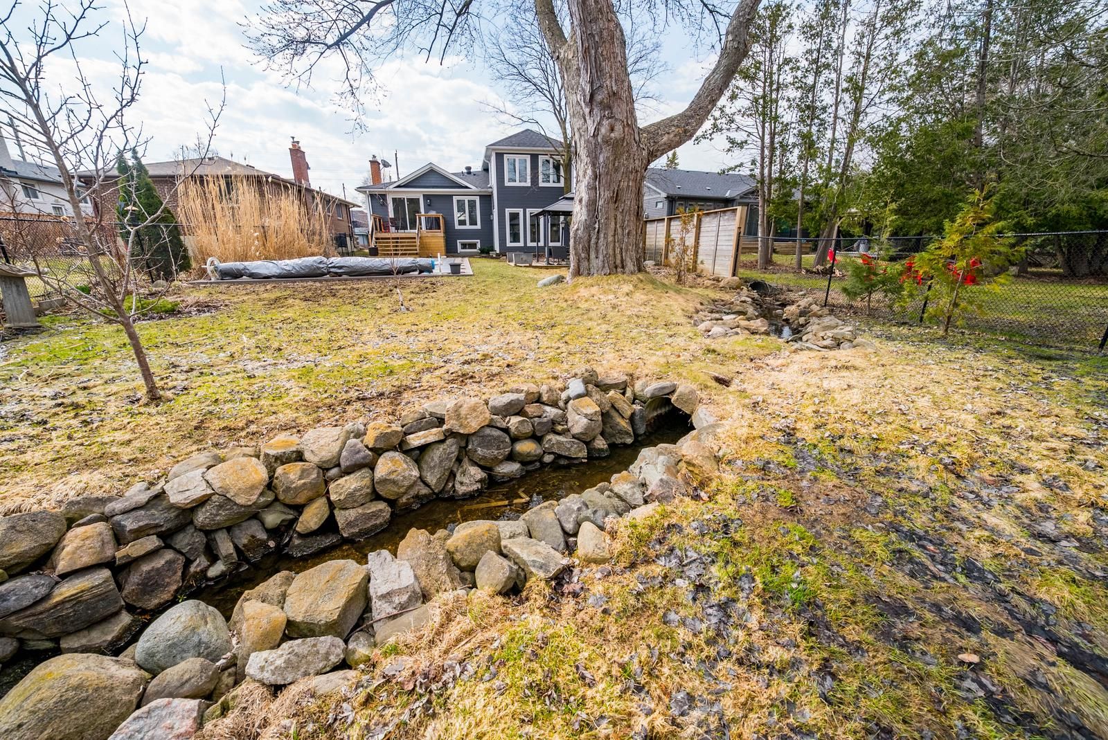 • Expansive backyard with heated pool and charming creek for outdoor enjoyment.