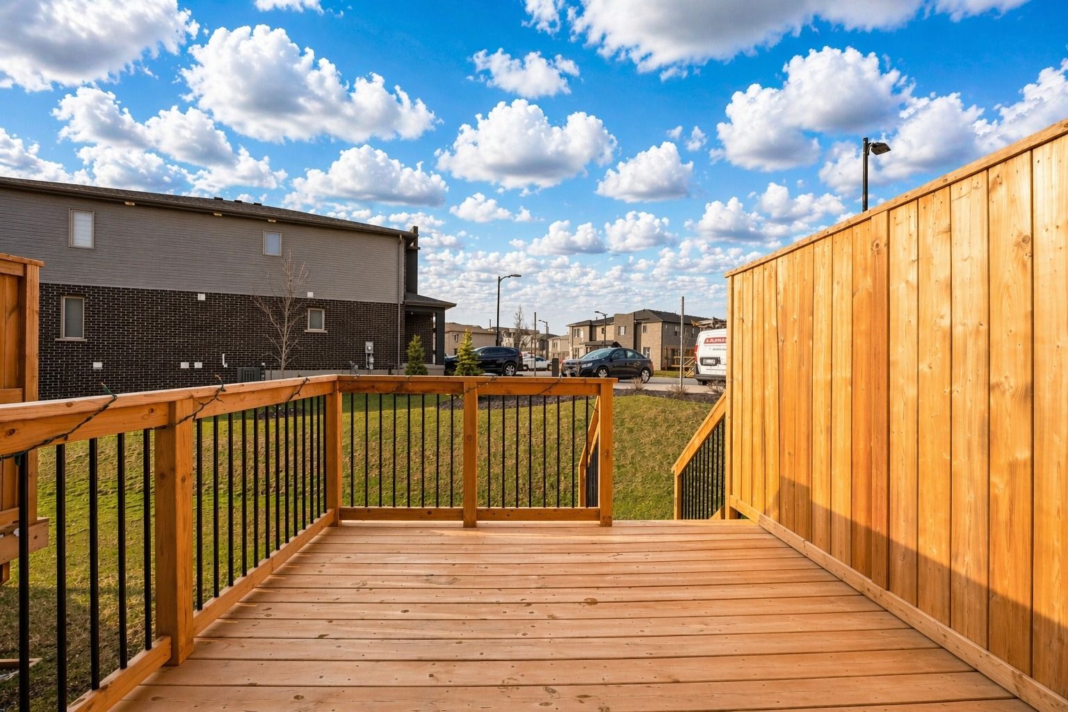 • Finished deck overlooks backyard, great for outdoor relaxation.