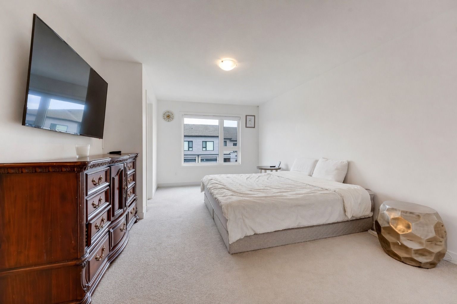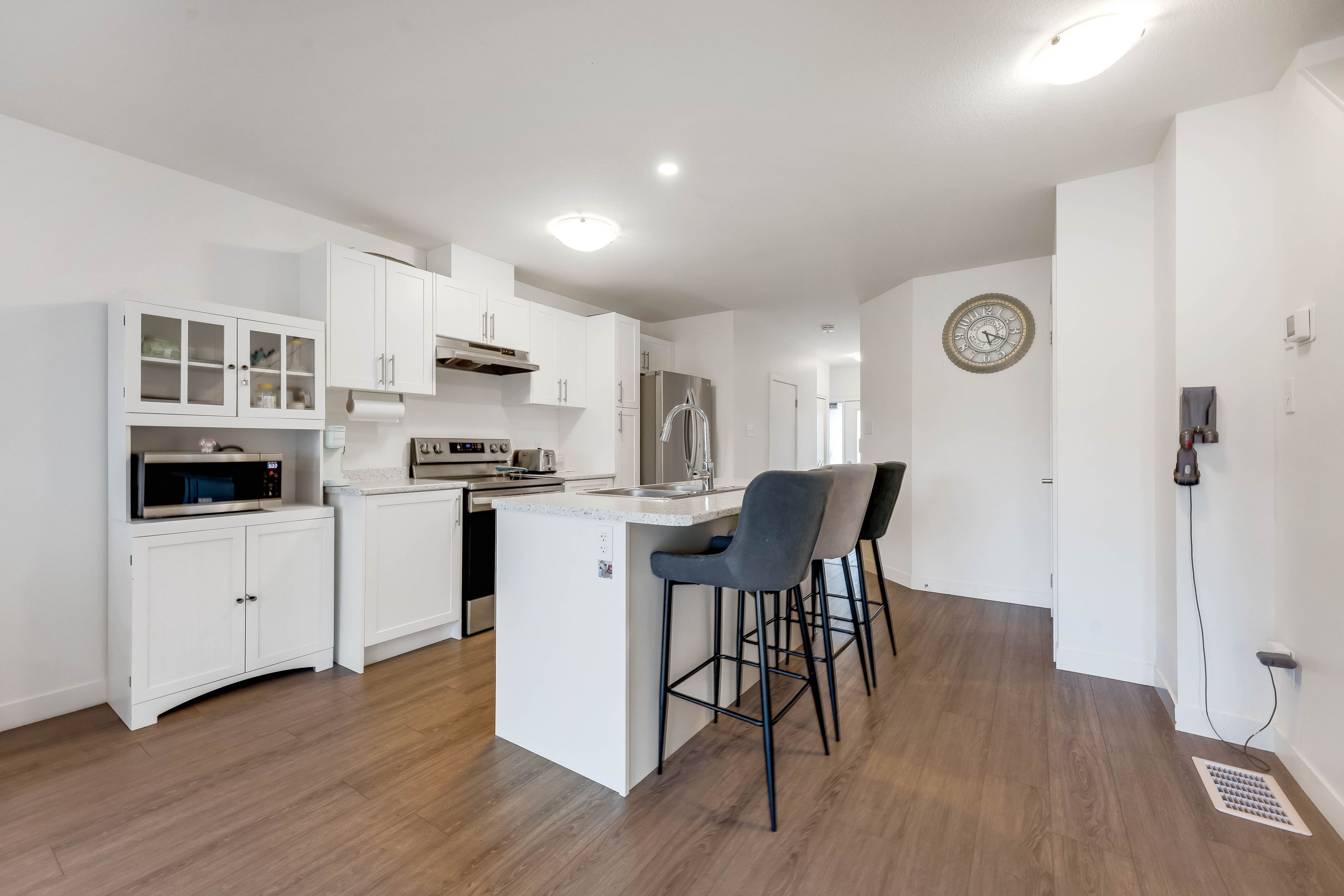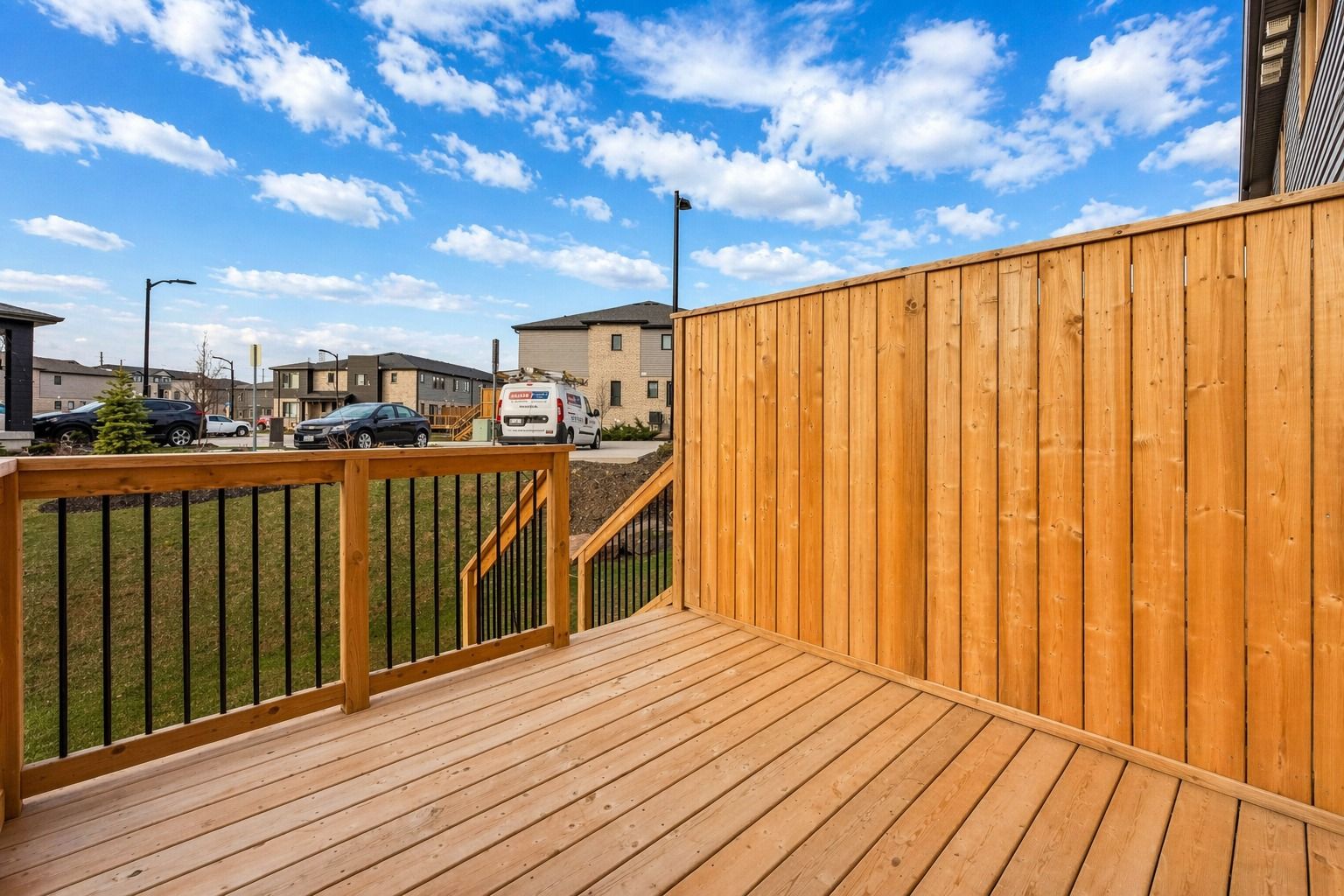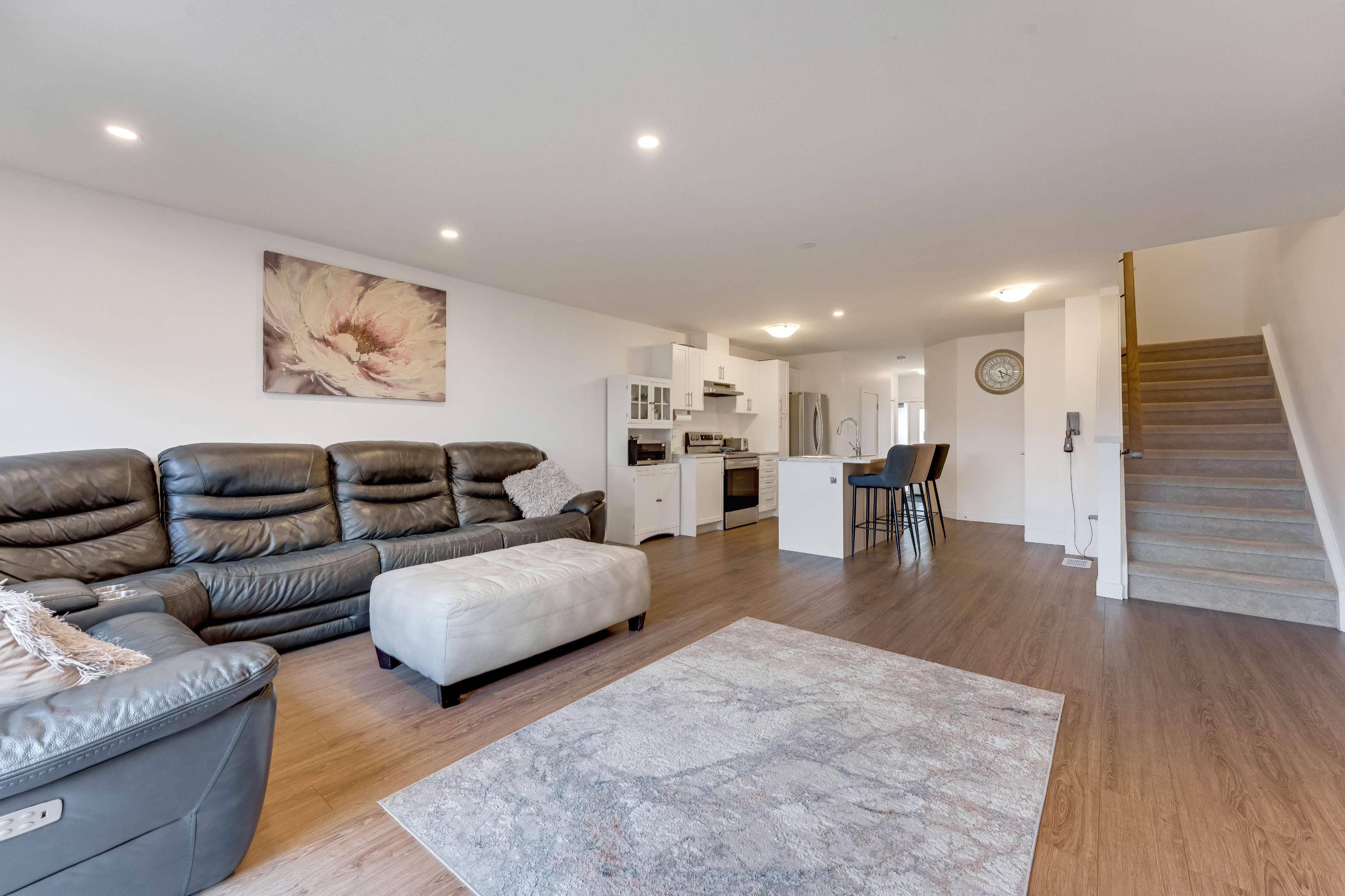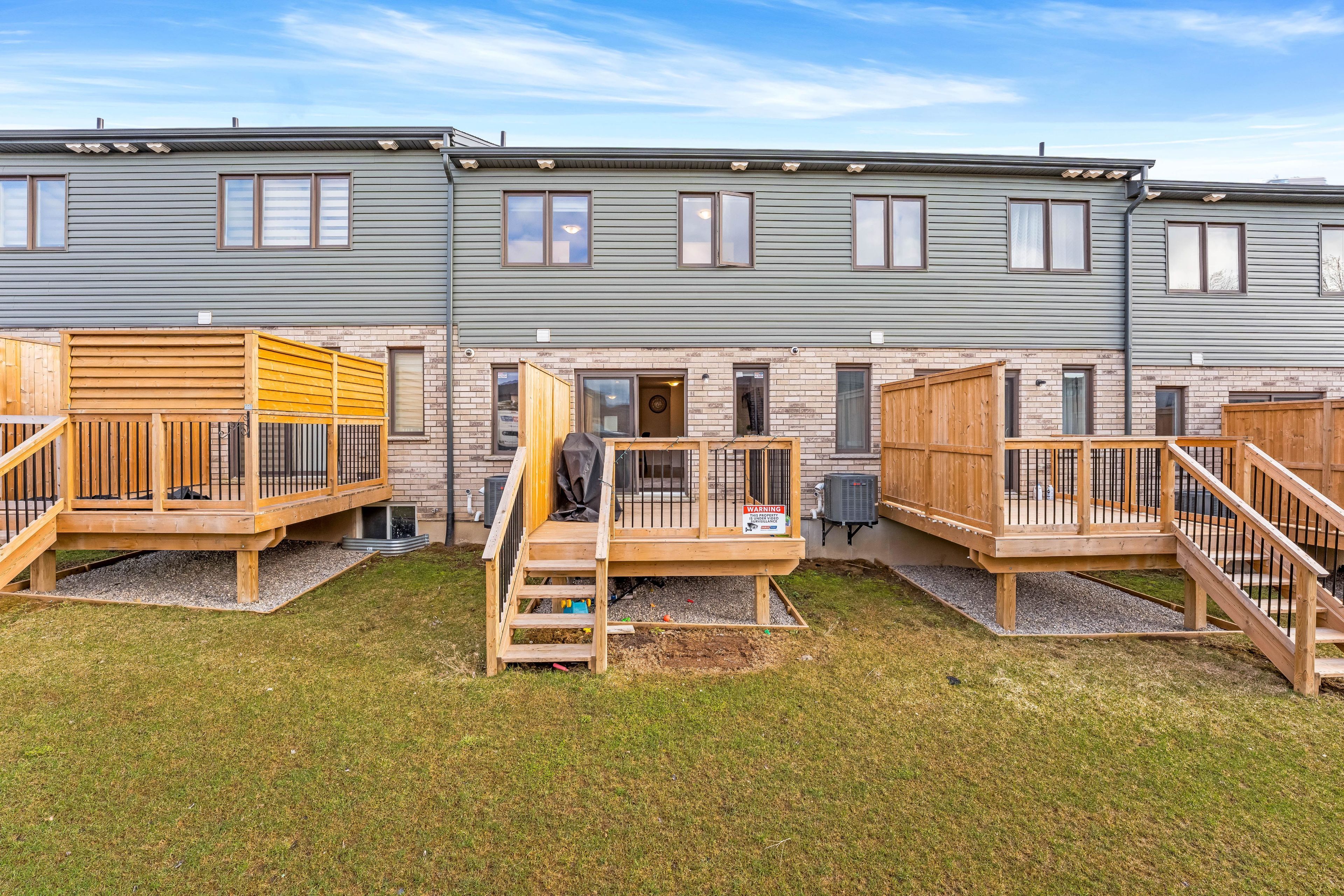 Welcome to 91 pony way, a stunning, move-in ready freehold townhouse that feels just like new, perfectly situated in the highly desirable and family-friendly huron park neighbourhood of kitchener. Step inside to discover a bright and airy open-concept main floor, enhanced by durable, contemporary vinyl flooring that flows seamlessly throughout. Designed with both living and entertaining in mind, the spacious layout effortlessly connects the living and dining areas, creating a warm and inviting atmosphere filled with natural light. Beautifully appointed kitchen featuring a large center island, sleek cabinetry and stainless steel appliances. From the living area, step out to the finished deck overlooking the backyard, an ideal space for summer barbecues, morning coffee or relaxing evenings. Upstairs, there are 3 generously sized bedrooms, including a luxurious primary retreat complete with a walk-in closet and a private 4pc ensuite. 2 additional well-proportioned bedrooms and another full 4pc bathroom offer ample space for growing families. Adding to the home's modern convenience, network cable wiring is available throughout the home, making it ideal for remote work, gaming or seamless connectivity in every room. The partially finished basement adds incredible value and potential, already framed and with electrical wiring in place, ready for your personal touch to create additional living space, a recreation room or even a home gym. This home also offers exceptional convenience with parking for up to 3 vehicles (1-car garage and 2 on driveway. Perfectly located near top-rated schools such as oak creek, jean steckle public school, huron heights secondary school, this home is ideal for families. Enjoy the convenience of huron natural area and easy access to shopping, dining and everyday amenities. This is a rare opportunity to own a stylish, turnkey home in one of kitchener's most sought-after neighborhoods. Don't miss your chance to call this exceptional property home.