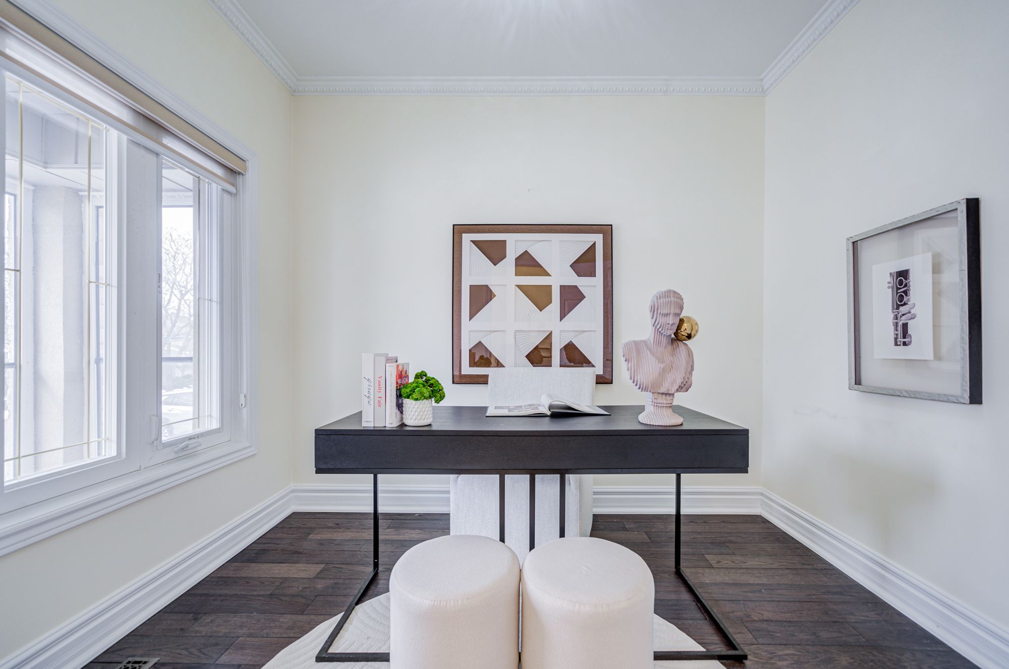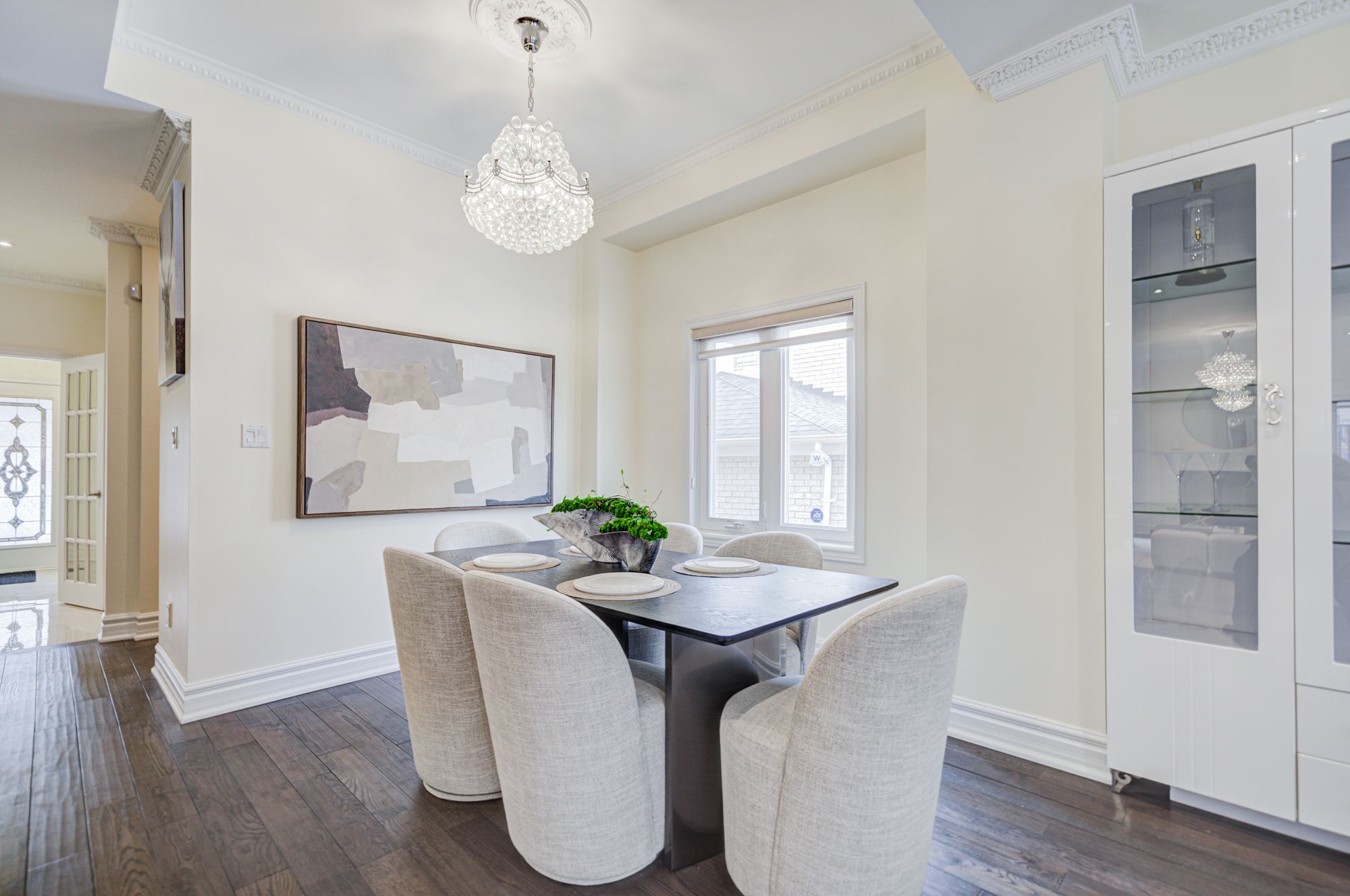 • Bright open layout with hardwood flooring and modern light fixtures throughout.