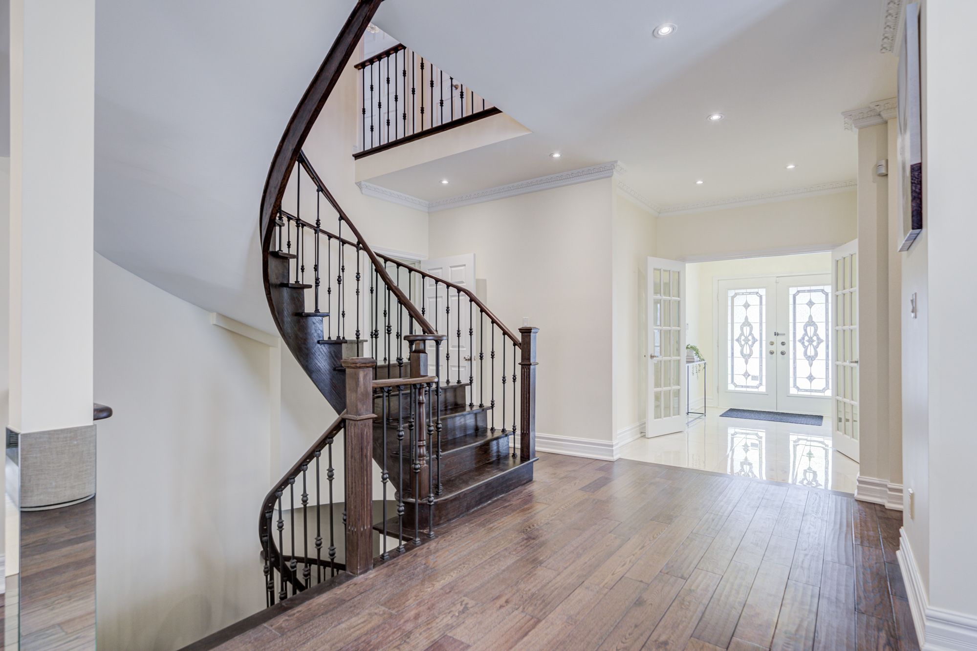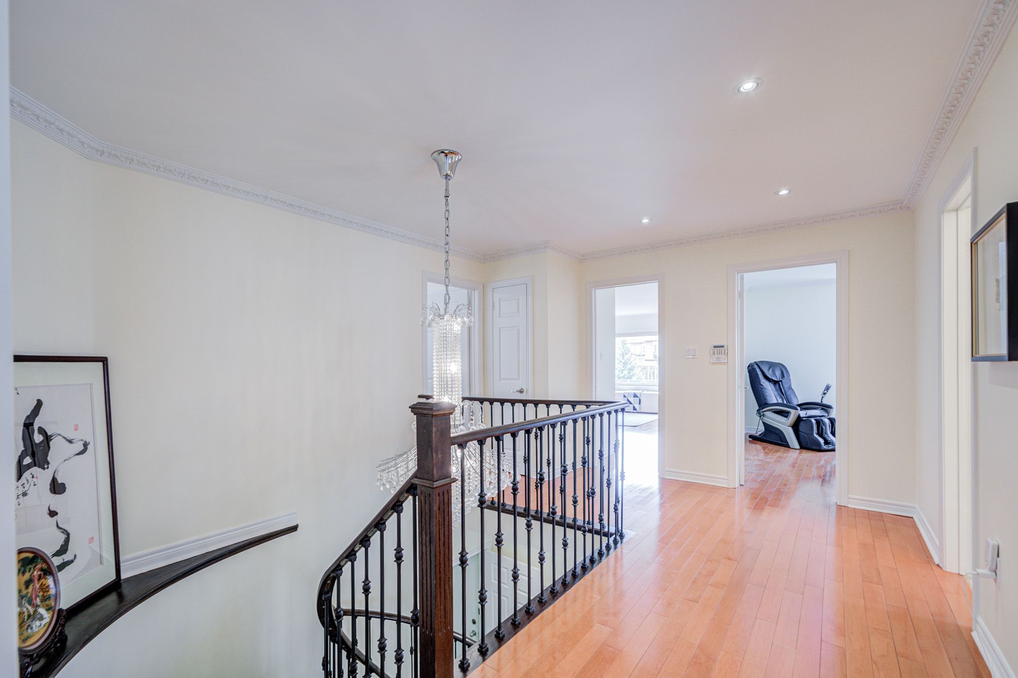 Welcome to this beautifully upgraded 3-car garage detached home in the prestigious cachet community, situated on a premium 61' x 163' lot. This spacious residence offers 5+2 bedrooms and 6 bathrooms, with hardwood flooring throughout the entire home and a bright, open layout perfect for family living. The main floor features a grand circular staircase with iron pickets, smooth ceilings with crown moulding, modern upgraded light fixtures, and upgraded explosion proof window. The contemporary kitchen is equipped with built-in appliances. Upstairs, the primary suite has been updated with a renovated ensuite and custom closet organizers. The finished basement adds extra living space with 2 additional bedrooms, a large open area, ceramic flooring, and pot lights. Additional highlights include upgraded insulation, fresh paint, a new backyard deck (2020), and parking for up to 9 vehicles (3-car garage + 6 driveway spaces). Located in a top-ranking school zone, including pierre elliott trudeau (f. I.) and unionville high school (arts program), and close to parks, amenities.