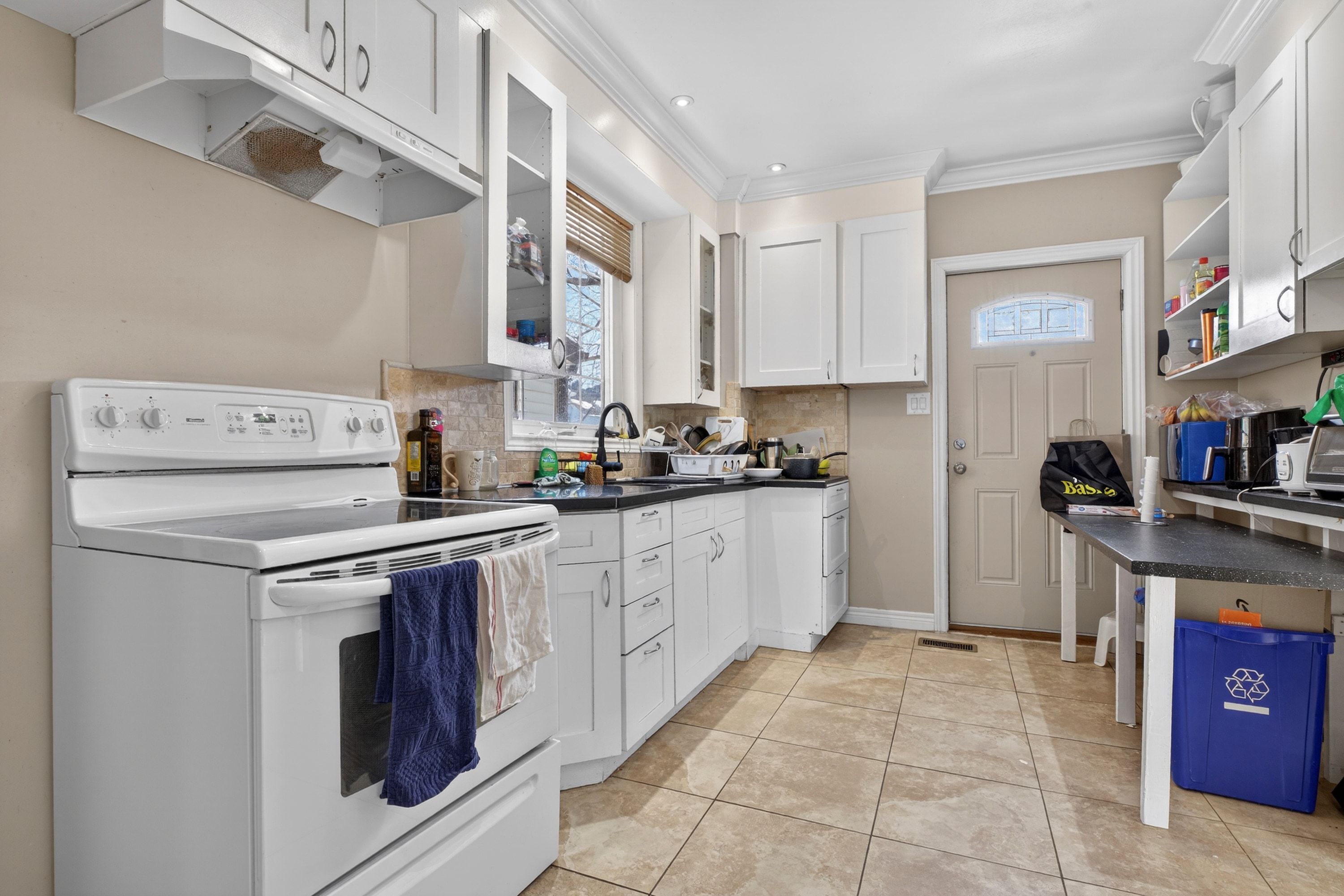 • Well-appointed kitchen features modern cabinetry and quartz countertops.