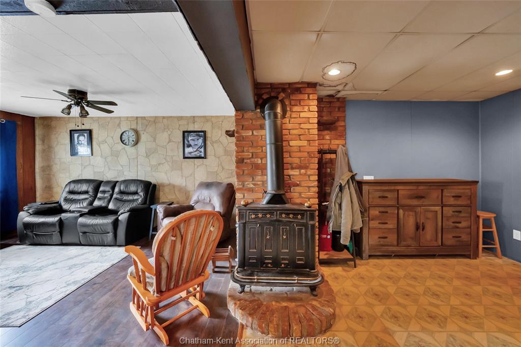 • Unique character with a wood stove and spacious living areas.