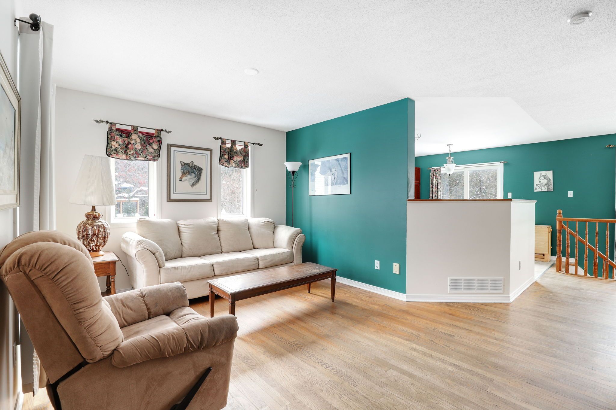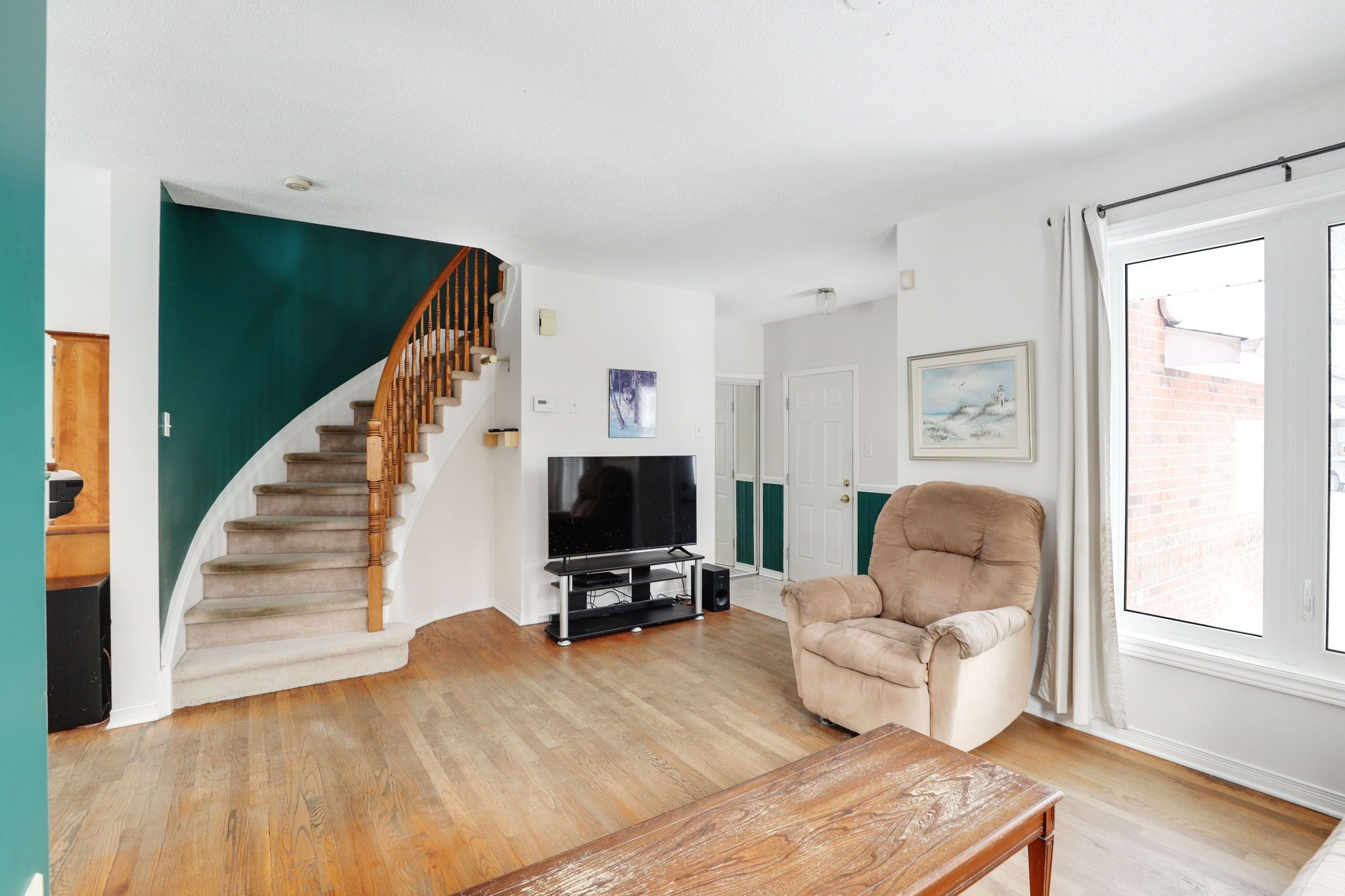 • Bright open-concept living area with stylish hardwood floors.