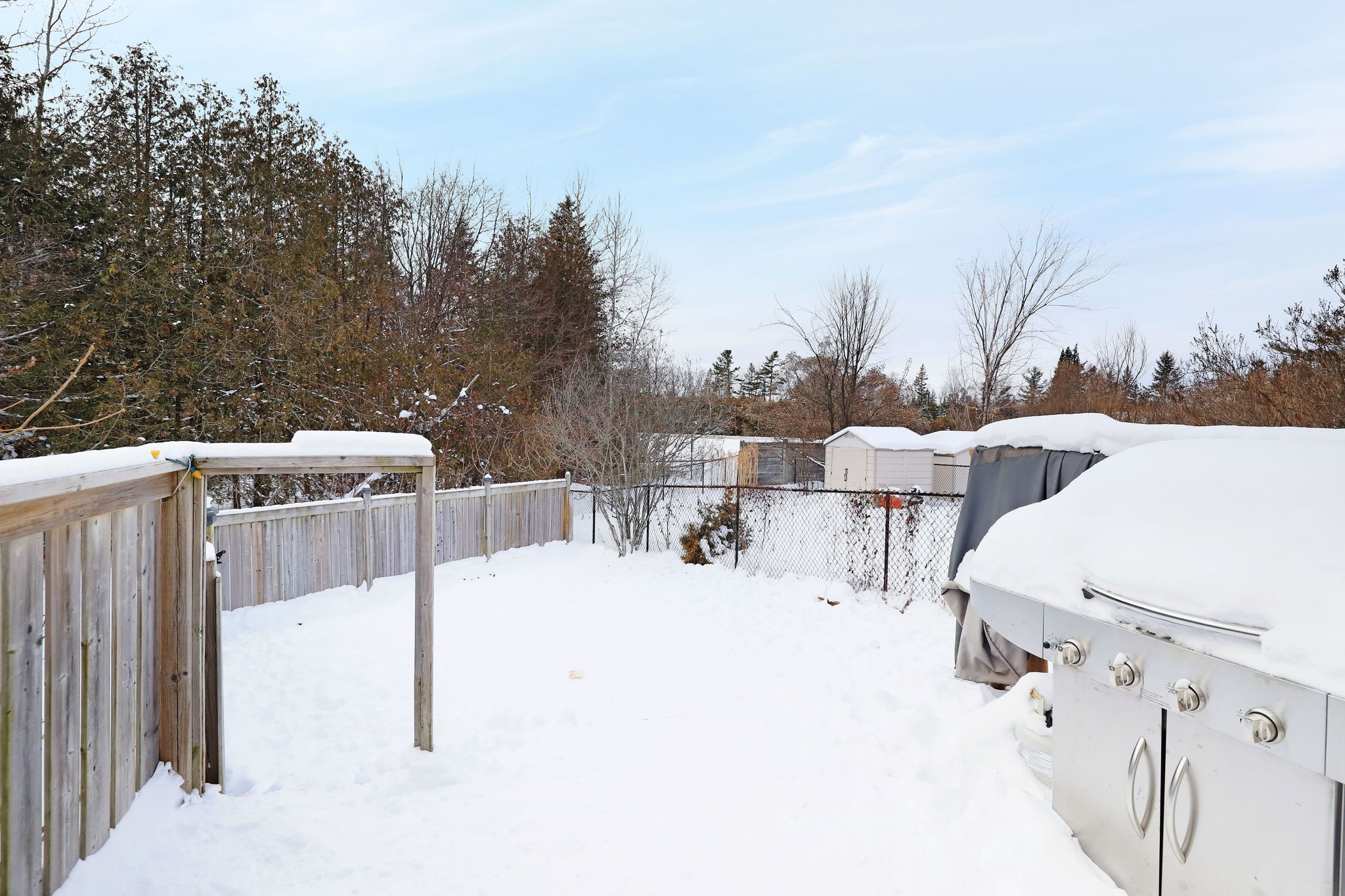 • Private backyard with no rear neighbors and access to walking trails.