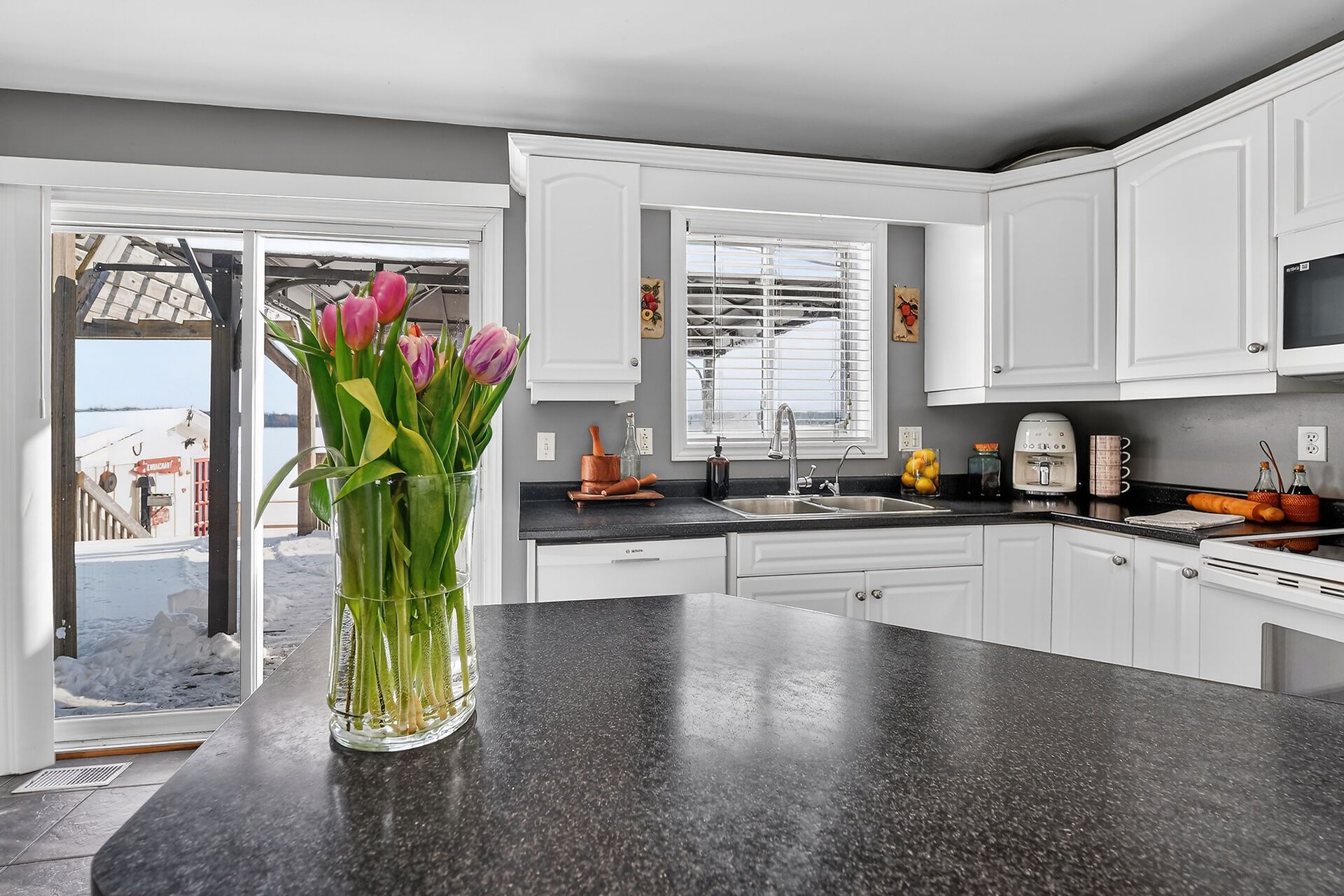 • Finished lower level features additional bedroom and flexible living space.