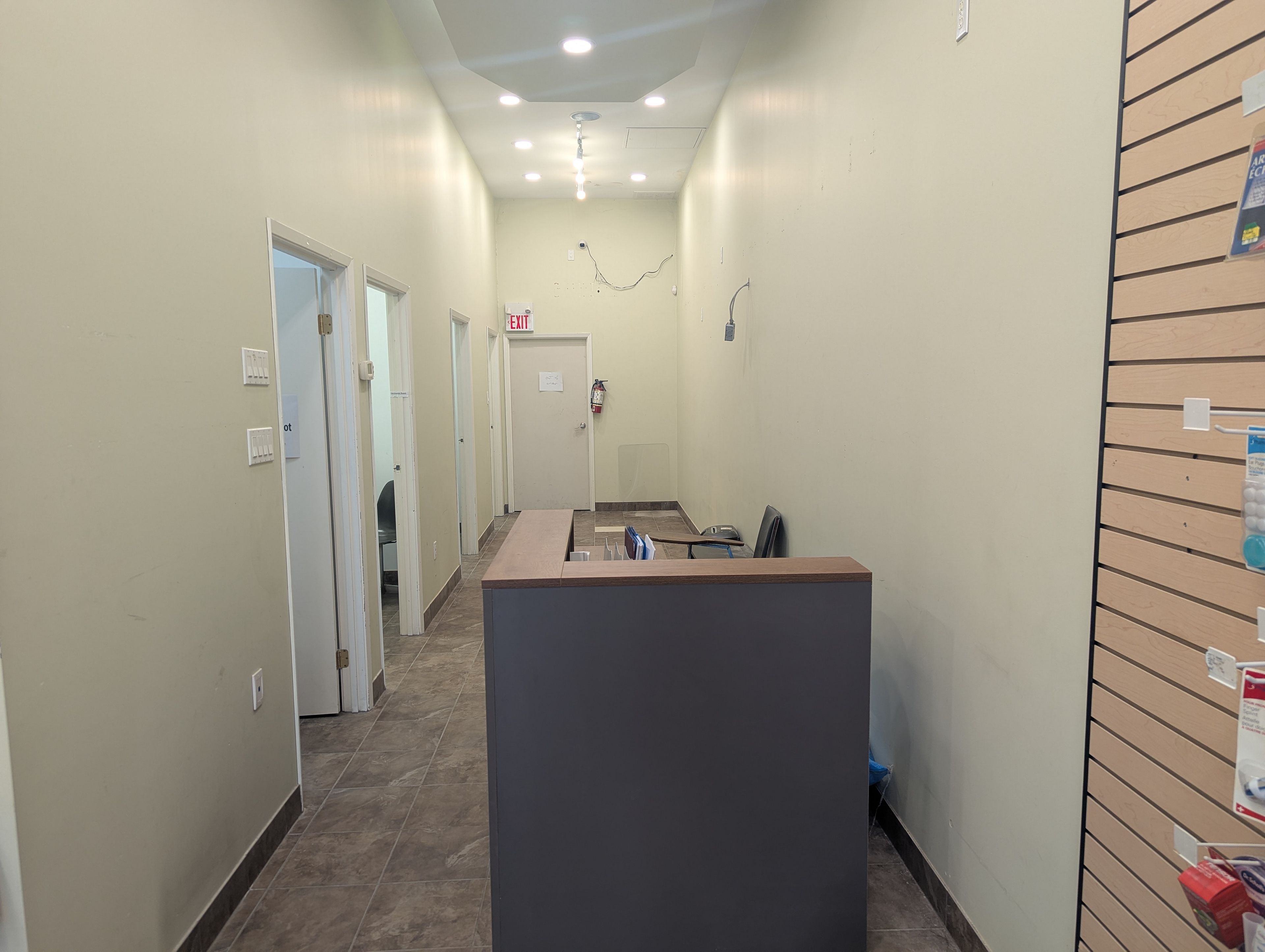 • Includes two examination rooms and a waiting area for convenience.
