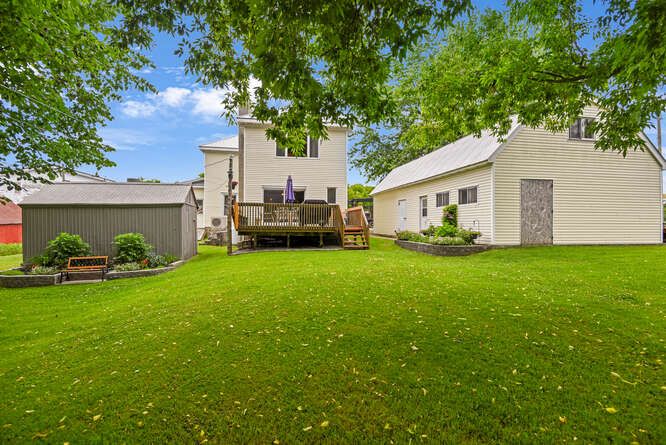 • Large backyard deck perfect for gatherings or relaxation in the outdoors.