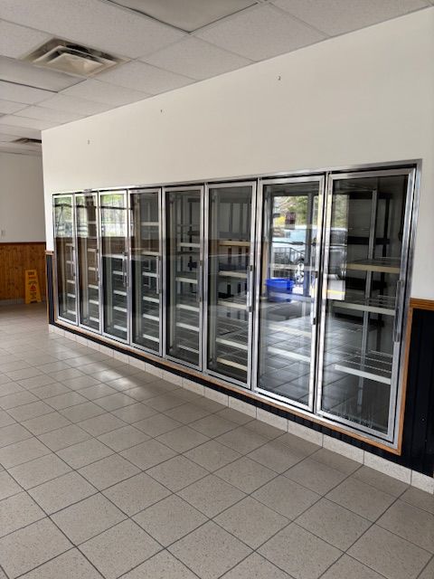 • Large warehouse with dock level loading for easy access.