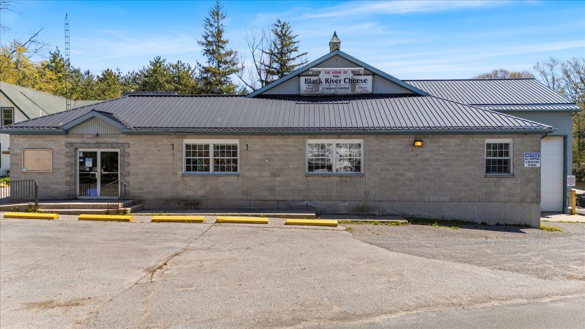 Formerly black river cheese factory with retail area 1276 sq ft and several production and storage areas total building area of over 6,000 sq ft. Large warehouse at rear with dock level loading 38 x 34 ft with 16 ft ceiling height. Truck bay 34 x 17 ft with large drive in door. Production areas have 10 ft ceiling height. Separate 2 storey house is rented to staff member of owner. Pec has updated zoning to gc which allows a broader type of commercials uses including restaurant and hotel