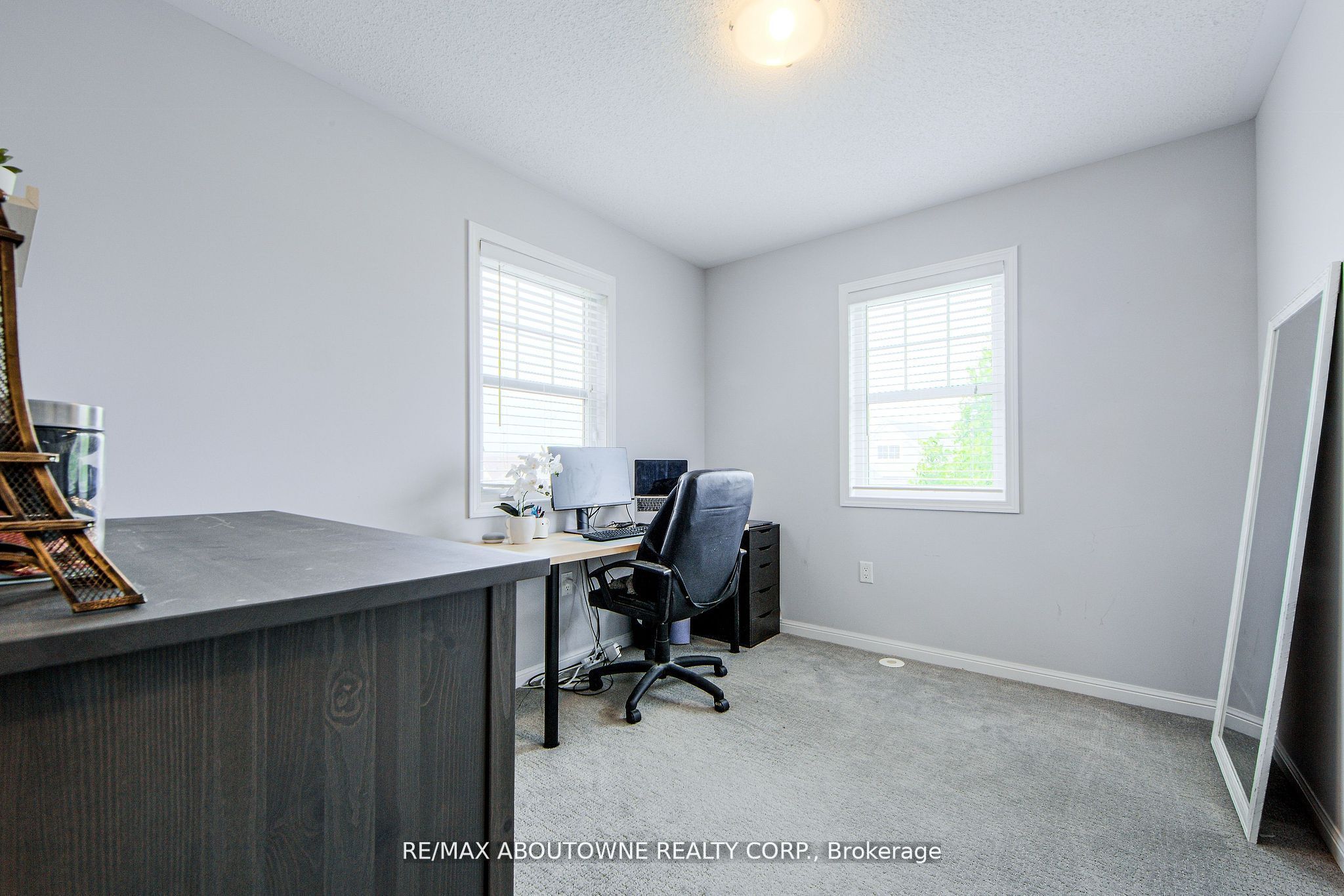 Welcome to this beautifully updated corner unit townhouse, ideally located on a quiet street in the desirable hawthorne villageneighbourhood. This popular 'oakgrove' model by mattamy homes offers 1,353 sq. Ft. Of turnkey, move-in-ready living space. The ground levelfeatures a versatile den-perfect for a home office-as well as convenient laundry facilities and direct access to the garage. Upstairs, you'll find abright and airy open-concept layout, complete with engineered hardwood flooring, a convenient powder room, and a spacious living, dining, andkitchen area. The kitchen includes a breakfast bar and walks out to a private second-level deck, ideal for morning coffee or evening relaxation. The upper level boasts three generously sized bedrooms and a well-appointed 4-piece bathroom. Enjoy two-car parking in the driveway, nocondo fees, and low-maintenance living. Located close to schools, parks, shopping, and transit-this home truly has it all!