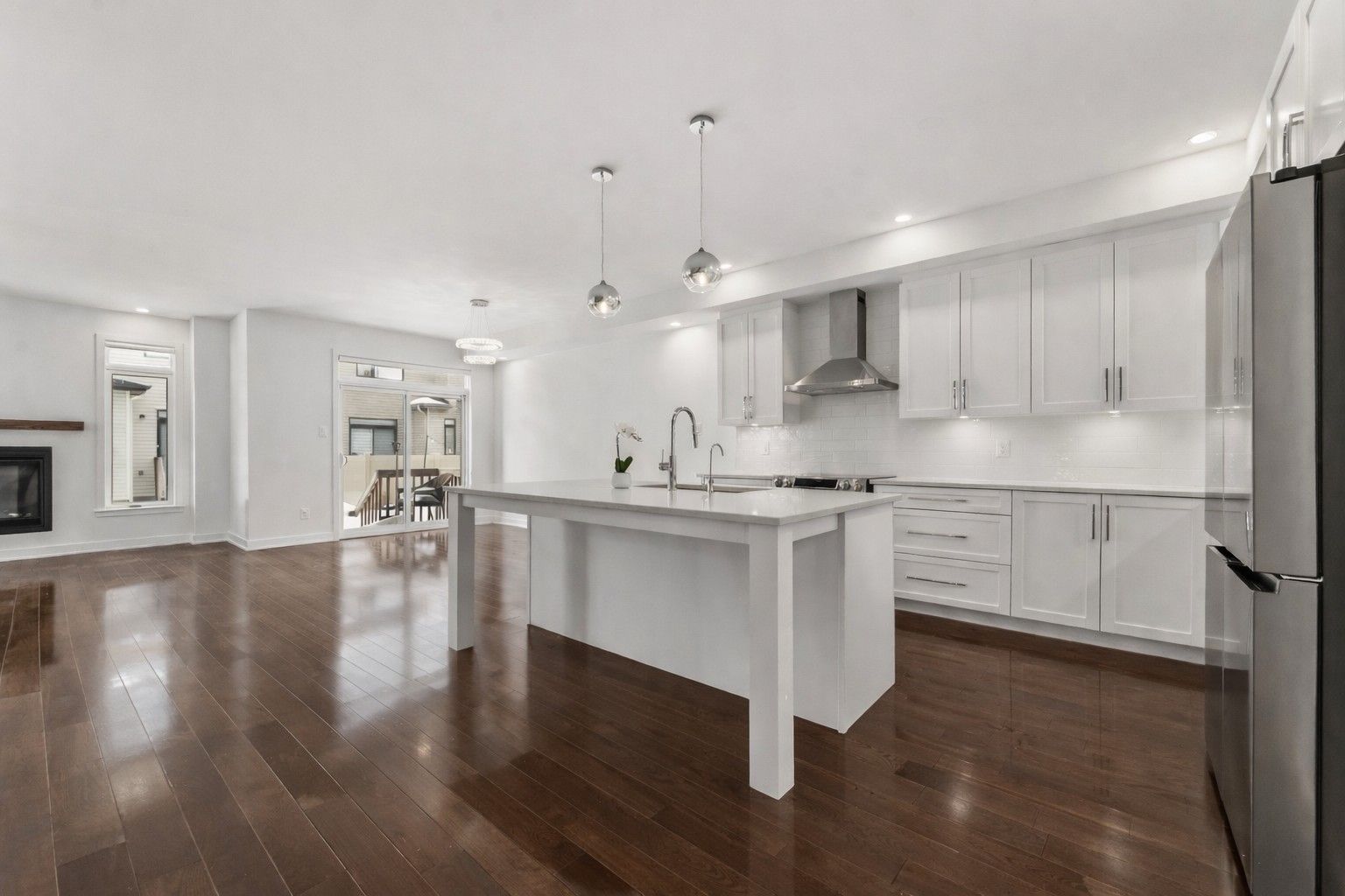 • Large kitchen island with upgraded appliances, perfect for entertaining.