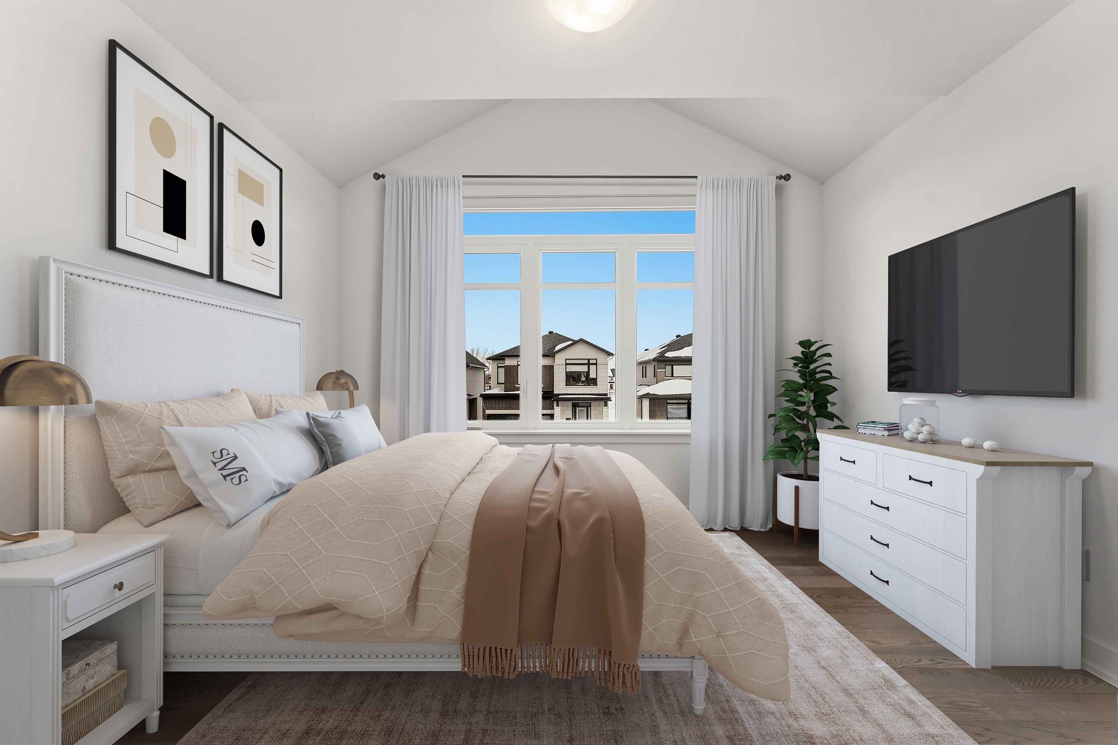 • Luxurious ensuite features dual showerheads and high-end finishes.