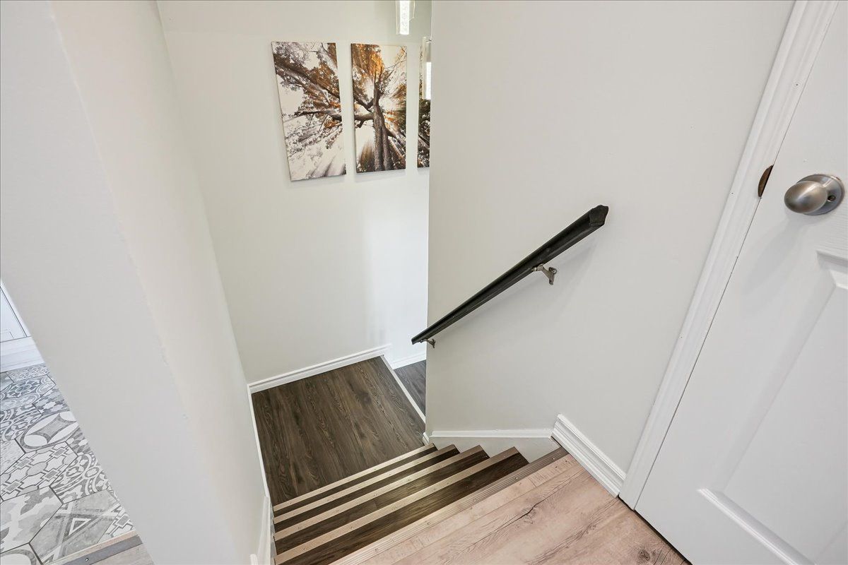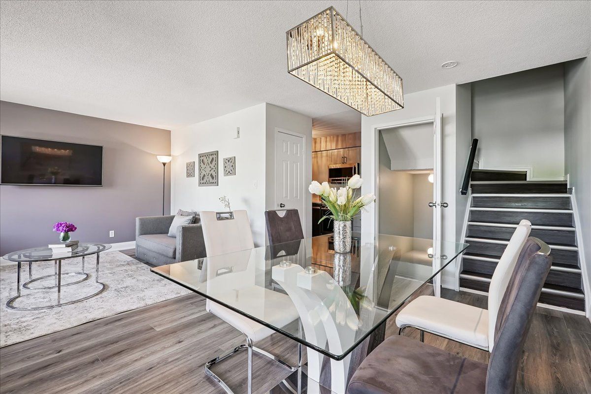 Welcome to this charming 2-bedroom condo, perfectly located on hamilton's east mountain! Enjoy the convenience of being steps from shopping, right on a bus route, and just minutes to the linc and red hill expressways. The main level features updated laminate flooring, a stylishly refreshed kitchen with modern appliances, a separate dining area, in-suite laundry, and a walkout to your own private balcony for fresh-air relaxation. Upstairs, you'll find two bright bedrooms and an updated bathroom. Additional highlights include a glass french door, updated lighting, and budget-friendly condo fees. Quick possession is available - move in and enjoy!