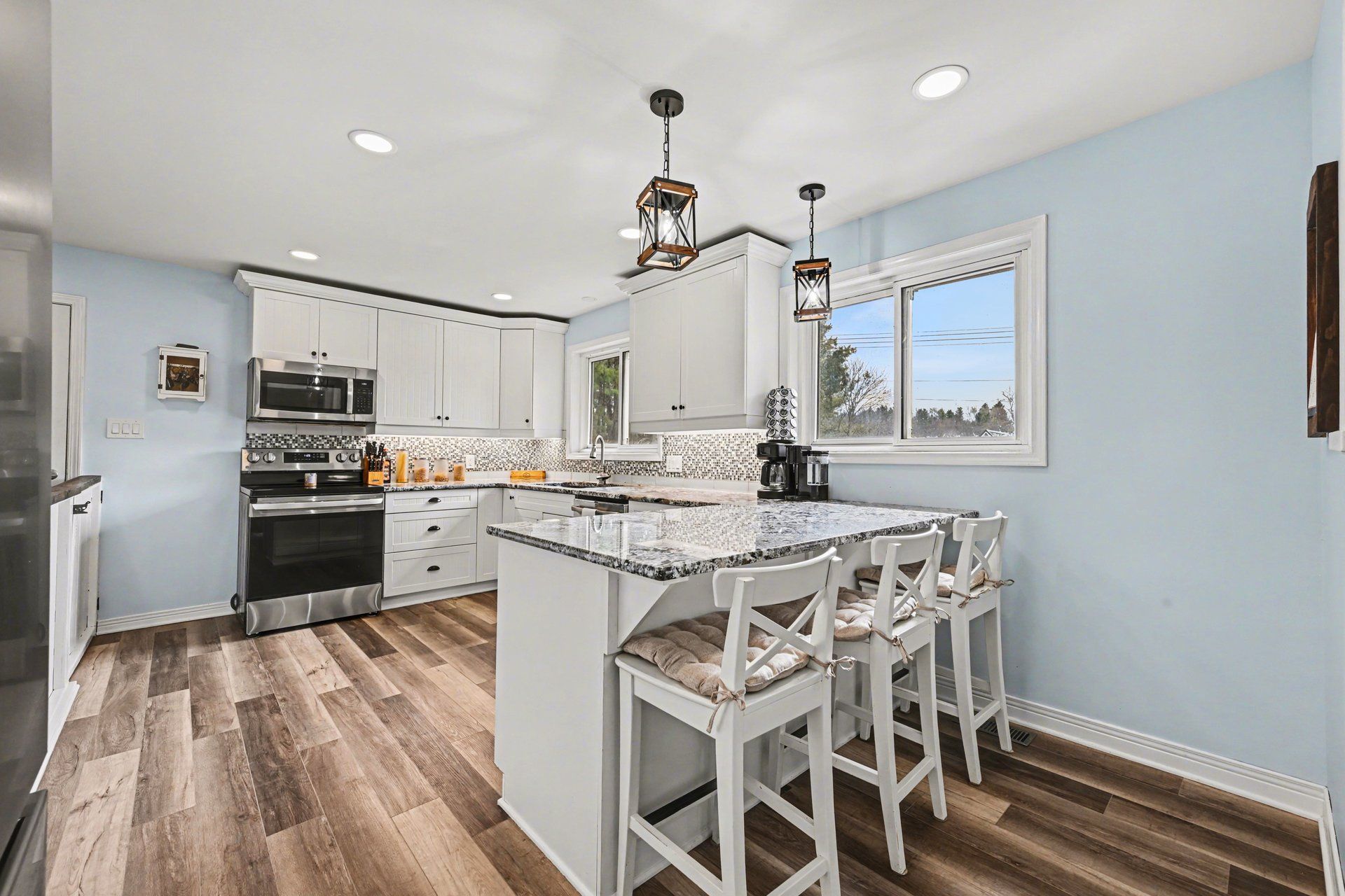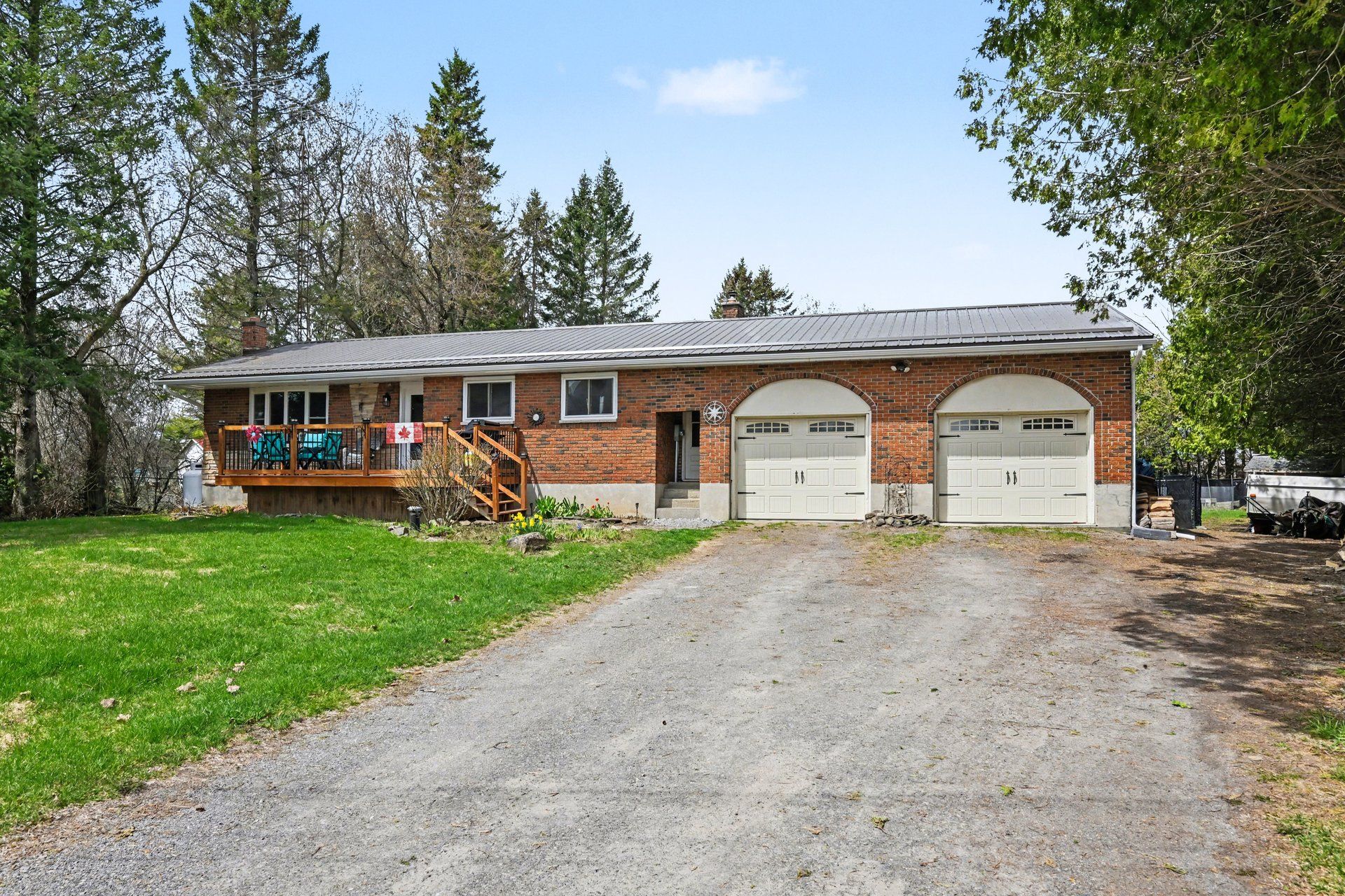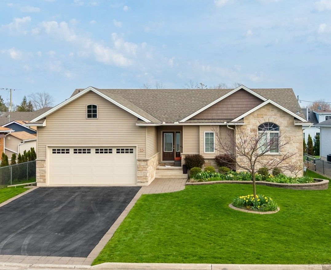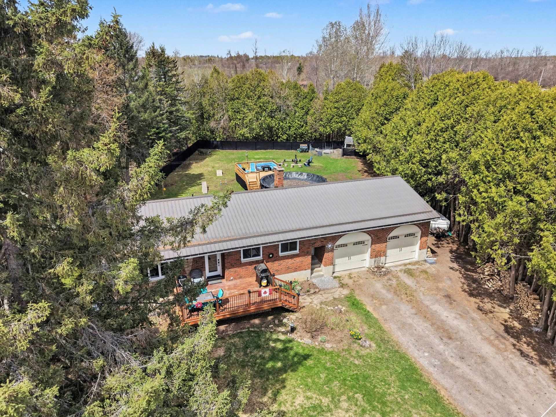 Open house sun may 3rd, 2-4pm. Escape the city and discover the perfect blend of comfort, space, and country charm in this beautifully maintained bungalow surrounded by mature trees and peaceful privacy. From the moment you arrive, the extra-wide driveway and double attached garage offer both convenience and curb appeal, while the welcoming front deck invites you to relax and unwind. Step inside to a bright, sun-filled main level where natural light flows throughout. The kitchen is designed for everyday living and entertaining, featuring ample cabinetry, a functional layout, and a sit-at breakfast bar. The cozy living room with fireplace creates the perfect space to unwind. The main floor offers a spacious primary bedroom, two additional bedrooms, and a well-appointed 4-piece bathroom-ideal for families or anyone seeking the ease of main-level living. The fully finished lower level expands your space with a large recreation area featuring a wood-burning fireplace, an additional bedroom, laundry, and plenty of storage. Step outside to your private backyard retreat. Fully fenced and thoughtfully designed, it features a chain-link fence with privacy panels, a man gate, and a 9-foot gate for easy access to store trailers, boats, or equipment. Enjoy summer days in the above-ground pool with surrounding deck and safety gate, relax under the gazebo on the platform deck behind the garage, or unwind on the stone patio set up for a future hot tub. Evenings are best spent around the fire pit, surrounded by beautifully landscaped grounds. This is more than a home-it's a lifestyle. A rare opportunity to enjoy space, privacy, and country living without compromise.