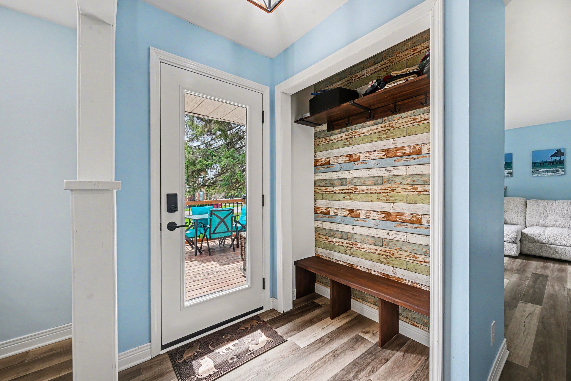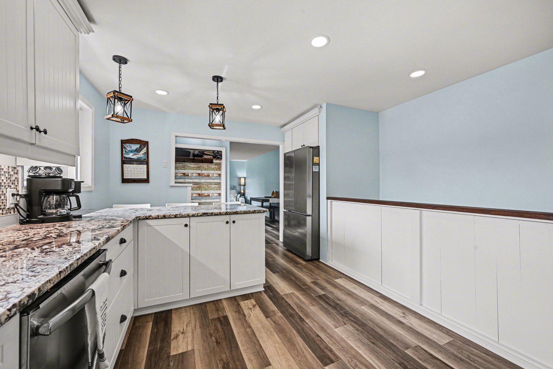 • Bright main level with natural light and cozy fireplace in the living room.