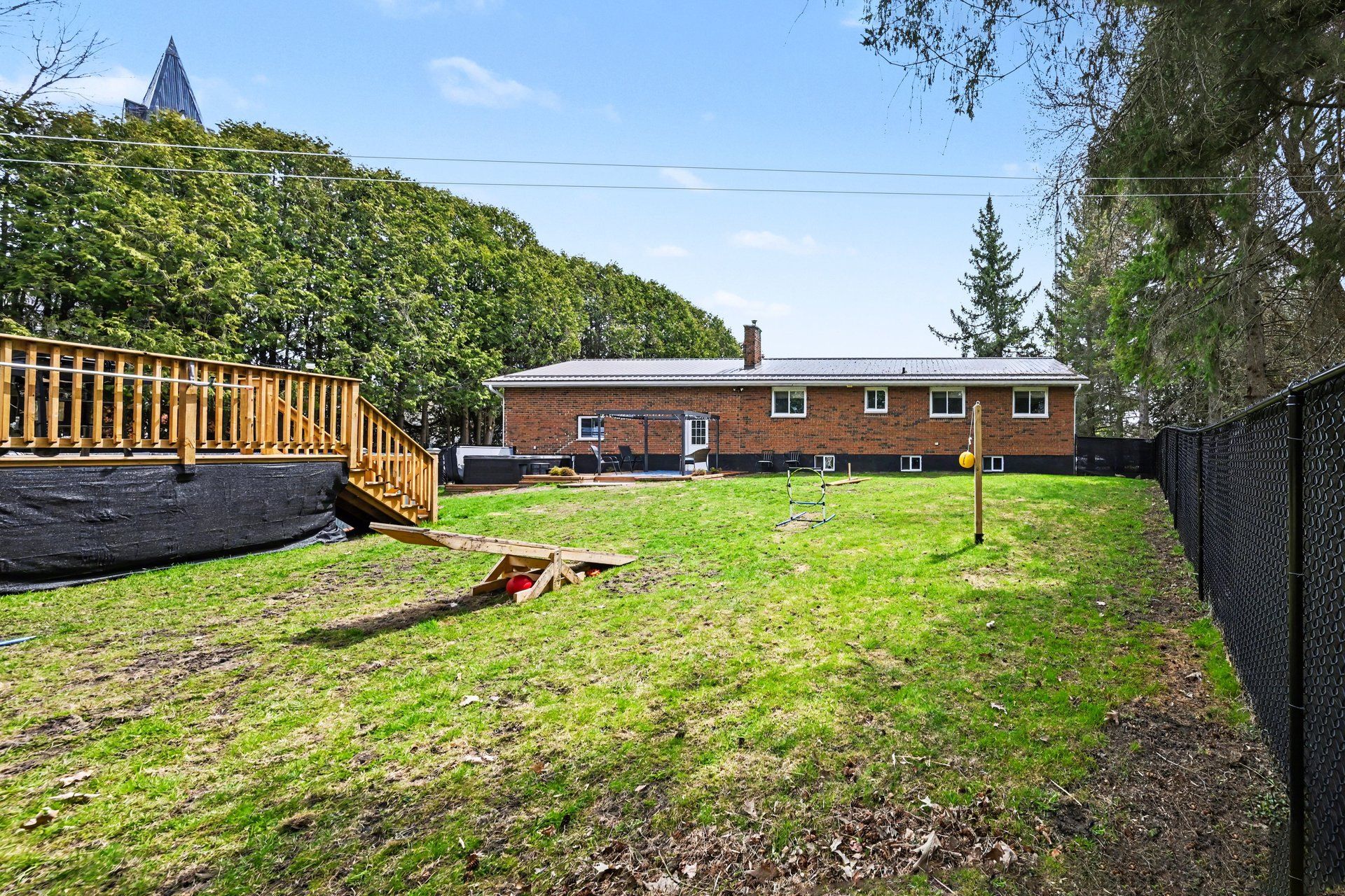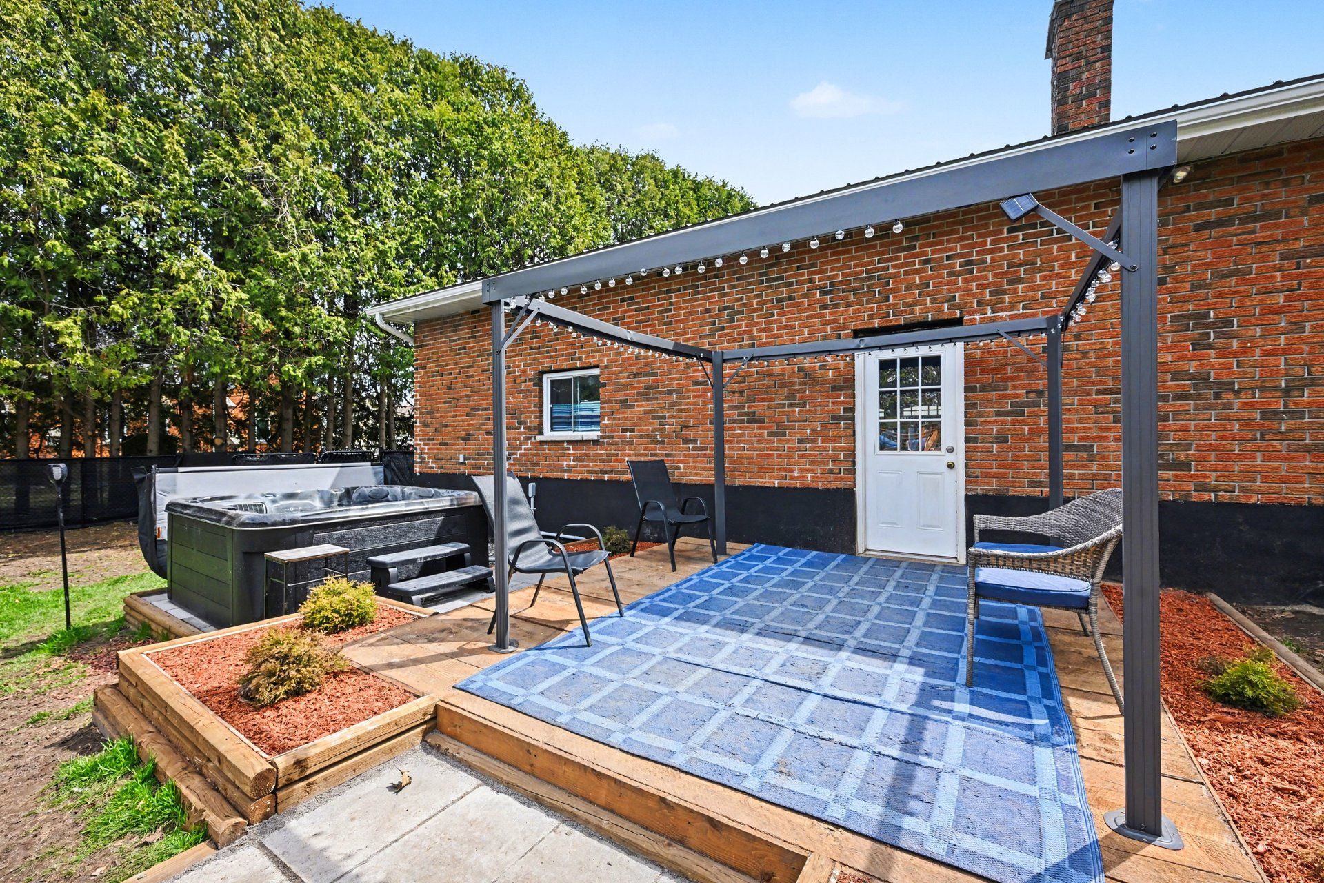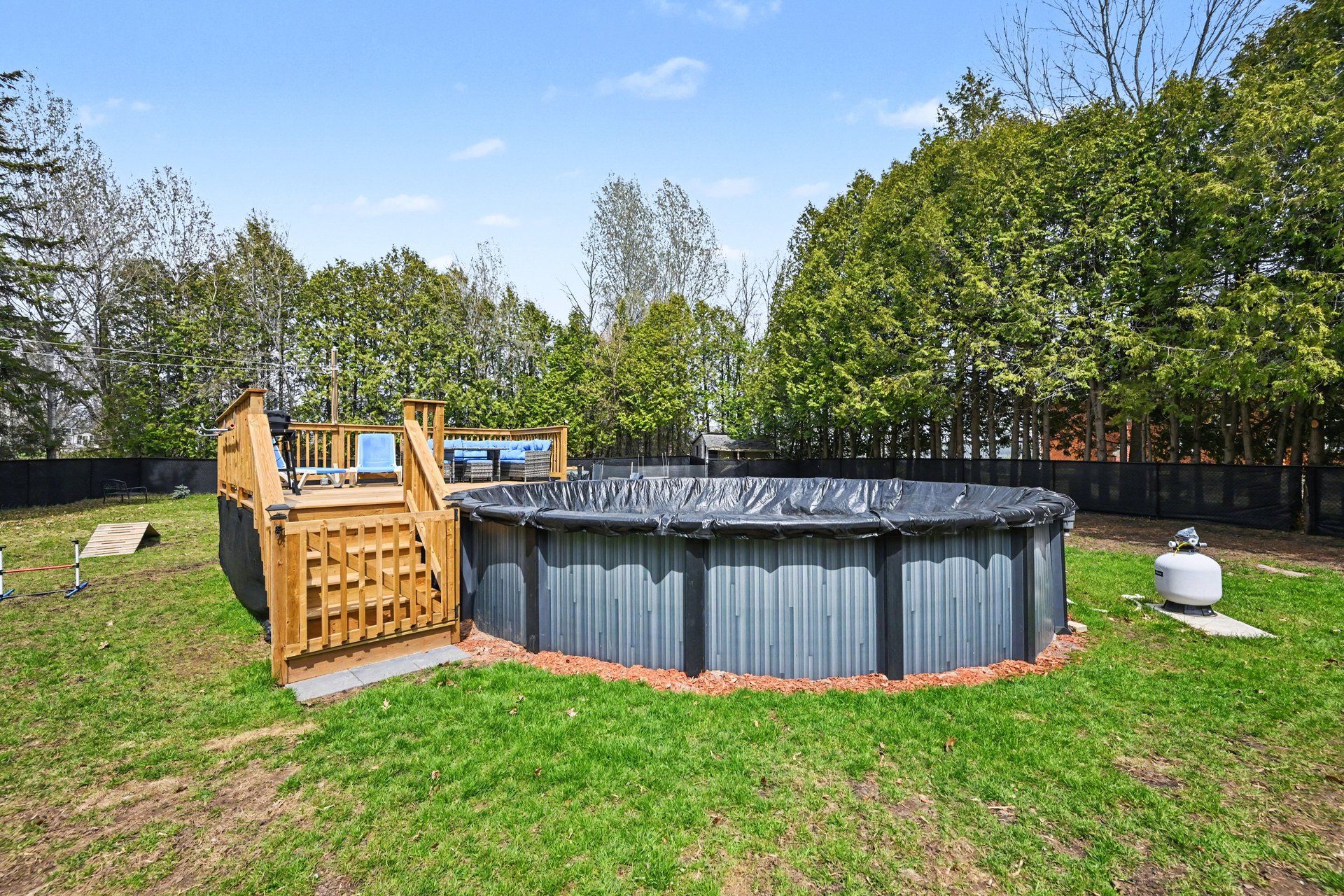 • Private backyard with above-ground pool, gazebo, and fire pit.
