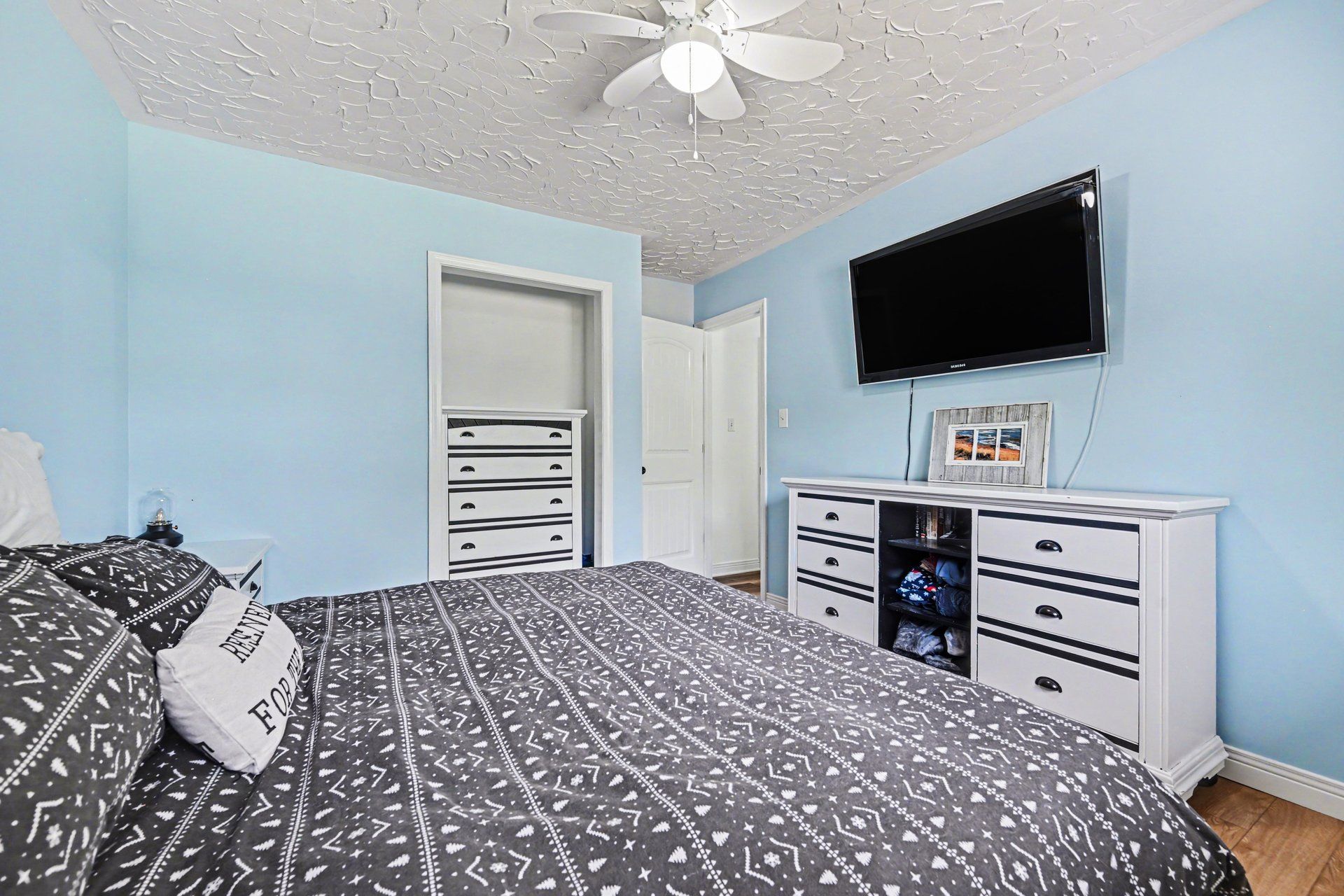 • Spacious primary bedroom with two additional bedrooms for family living.