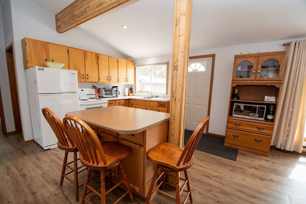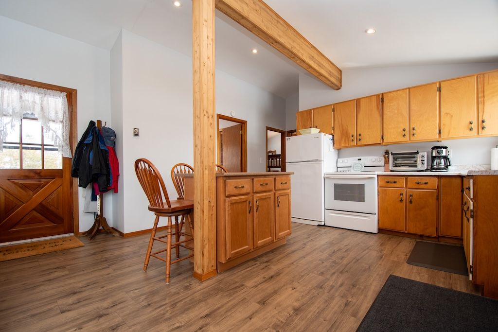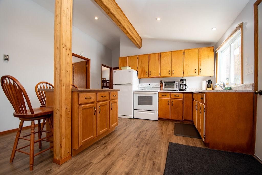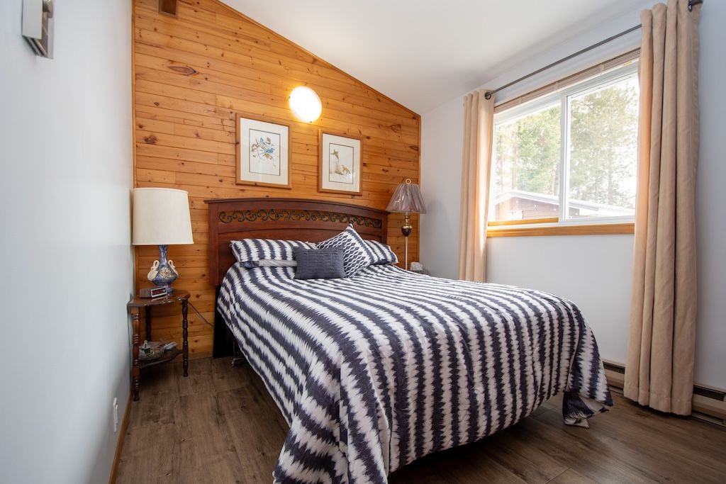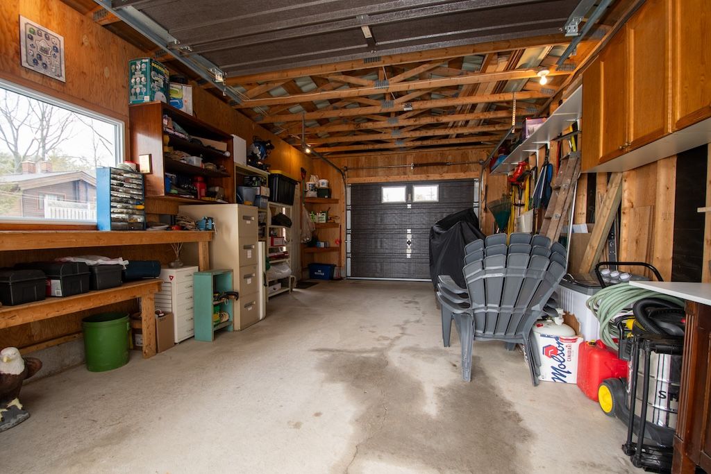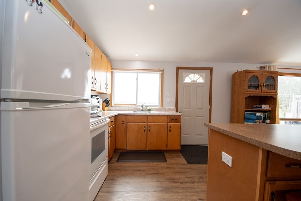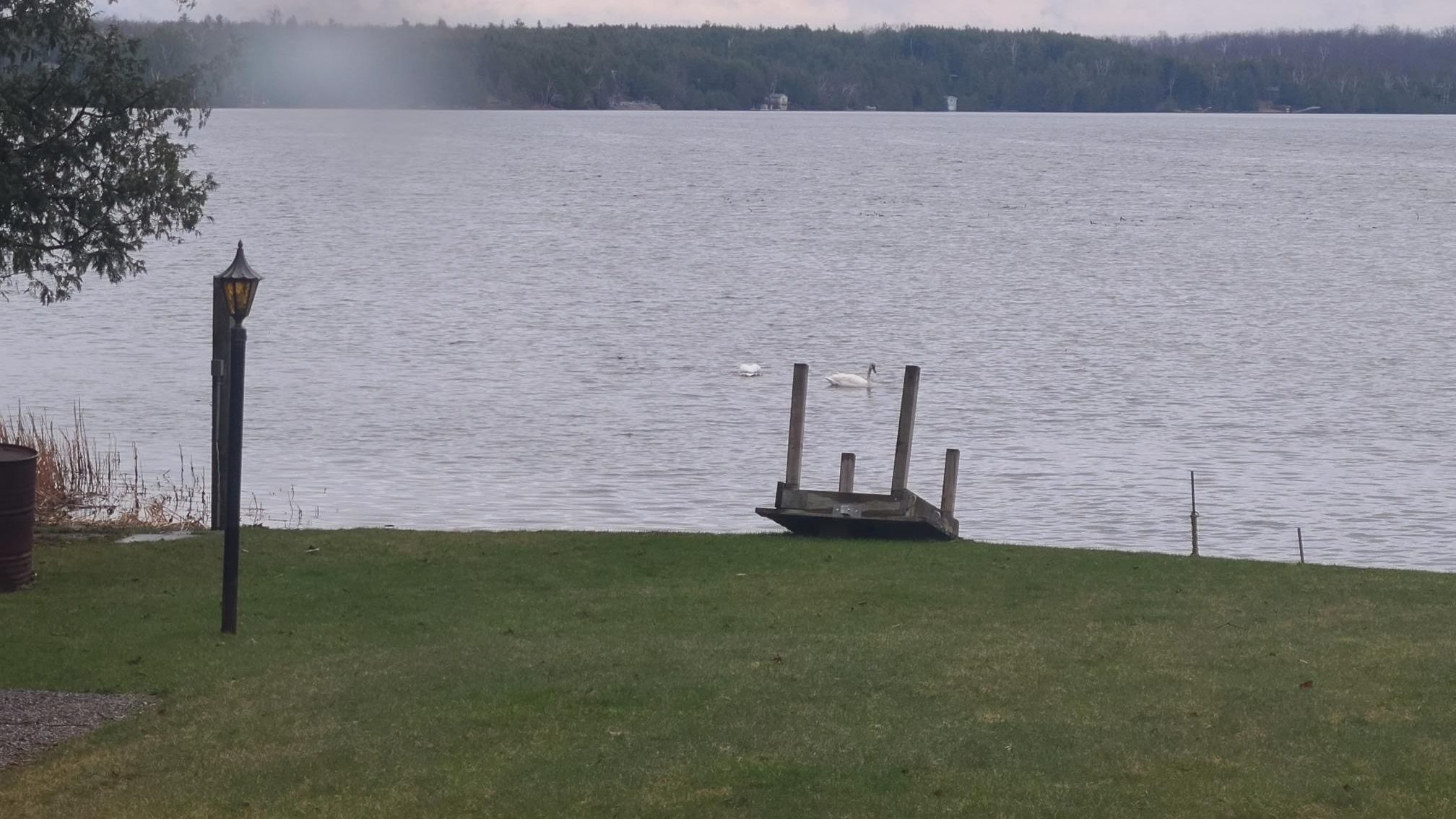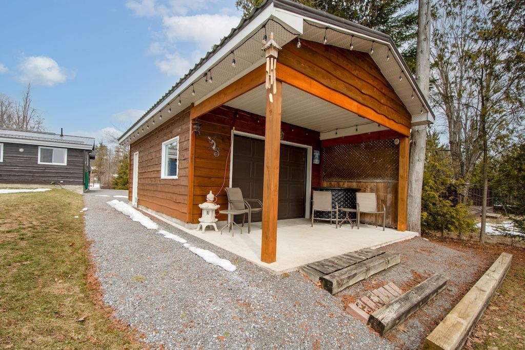 Quaint well-kept year-round home or cottage on beautiful white lake sitting on a private level property with panoramic lake views offering 3 bedrooms. This home is turn-key ready and features recent upgrades such as new flooring throughout and a steel roof. Front covered deck and rear patio to enjoy lakeside living. Open concept kitchen, dining area and living room which features a beautiful stone fireplace. Extra large window in the living room for stunning lake views year-round. Matching appliances with eat-in kitchen island. Includes modernized bathroom with updated walk-in shower. Large detached dual-door garage/boathouse for parking or storage of water toys. The garage offers additional covered patio space to enjoy the serene surroundings.