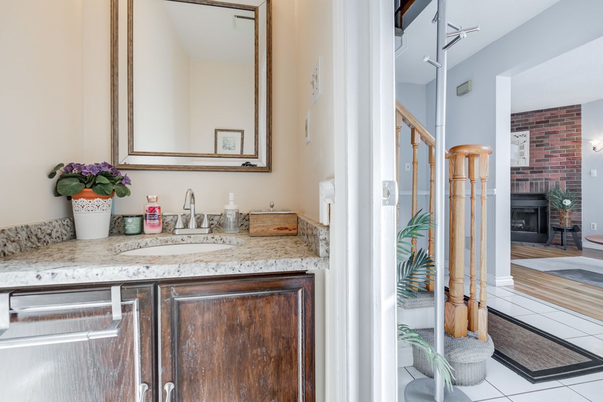 Detached above ground and linked below ground by foundation. Beautiful 3 bedroom on quiet cul-de-sac. Bay window bright living room with brick fireplace & hardwood floors. Kitchen has granite counters, ceramic backsplash & s/steel appliances. Walkout from the breakfast room to a tiered deck. King-size master bedroom. Party-sized rec room with built-in bar & 3 piece bath.