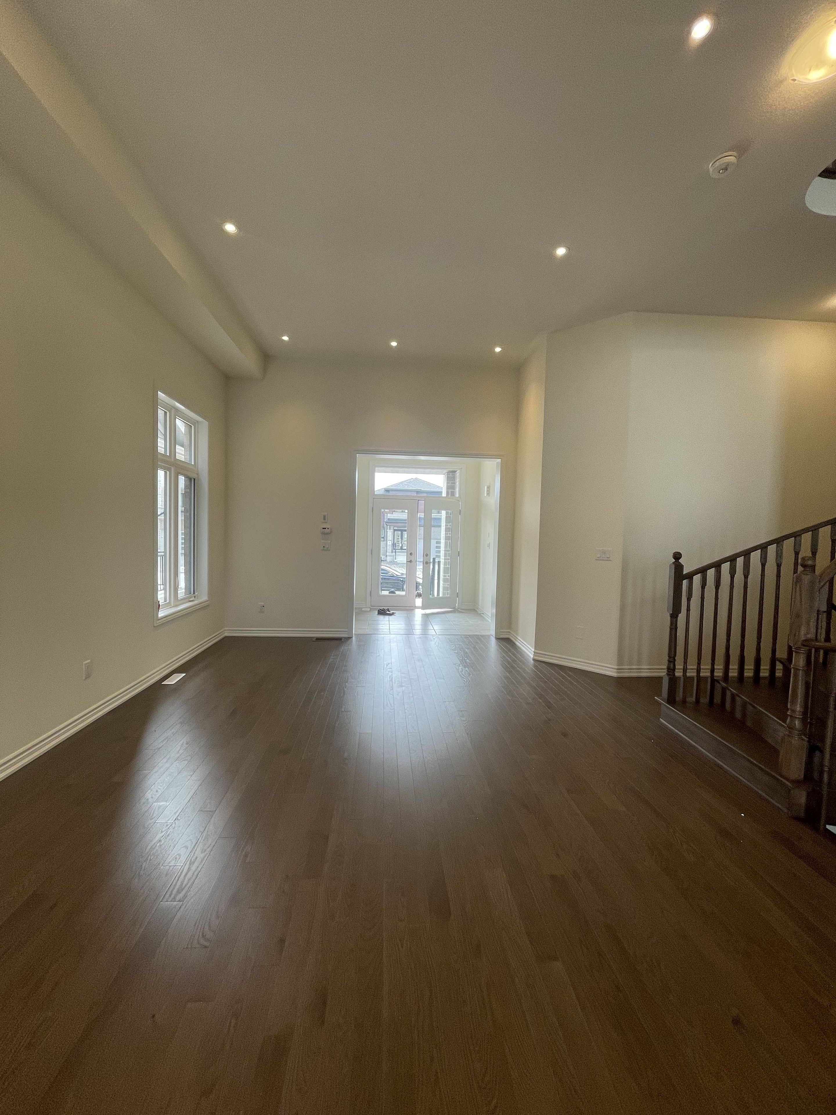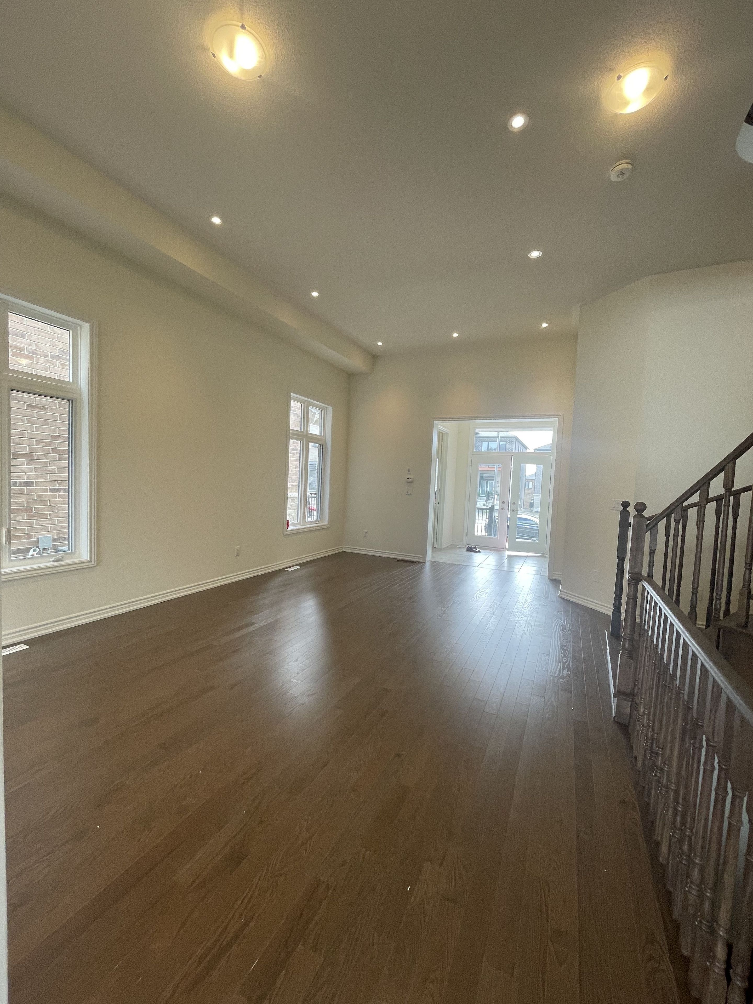 • Open concept layout with high ceilings and stylish oak staircase.
