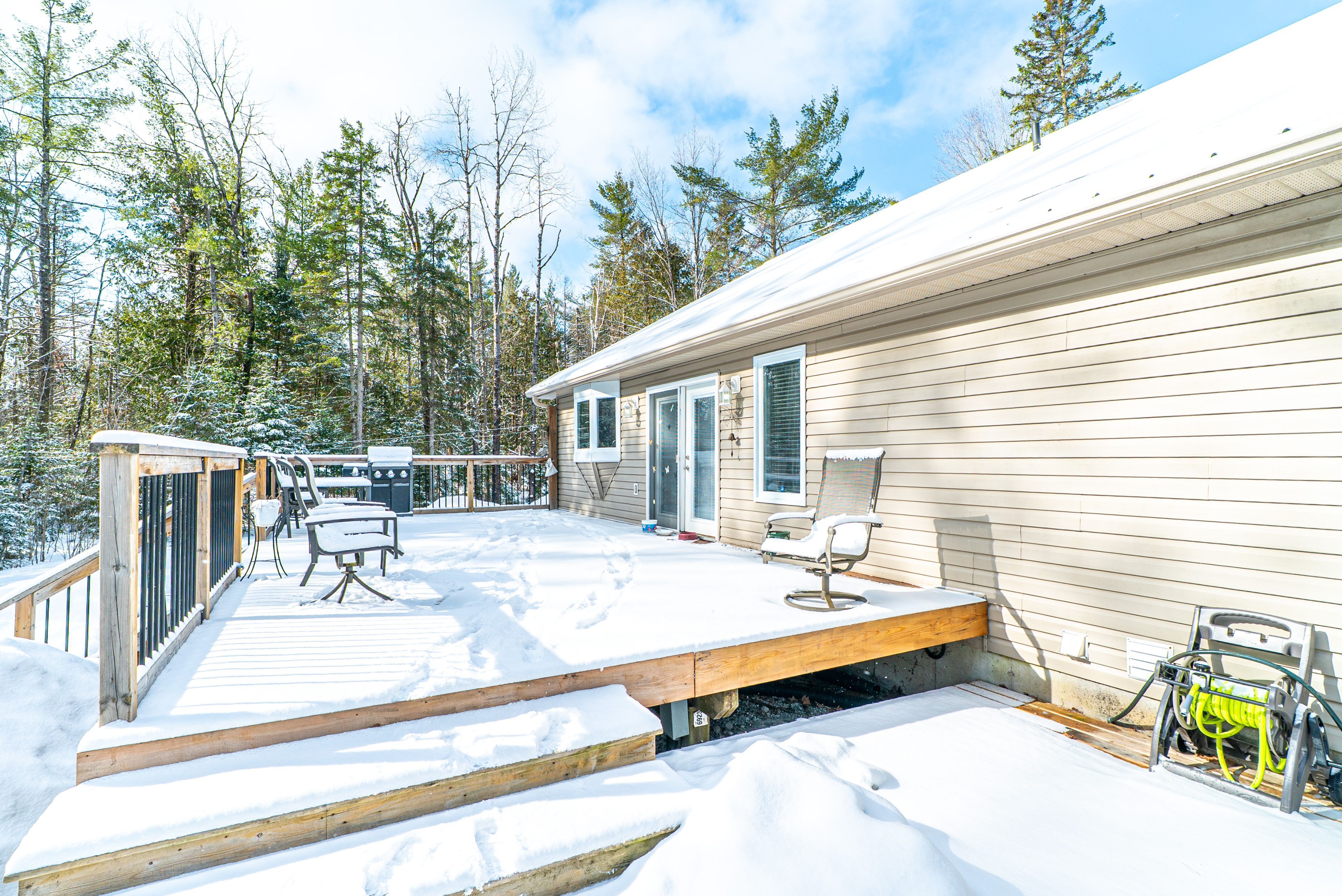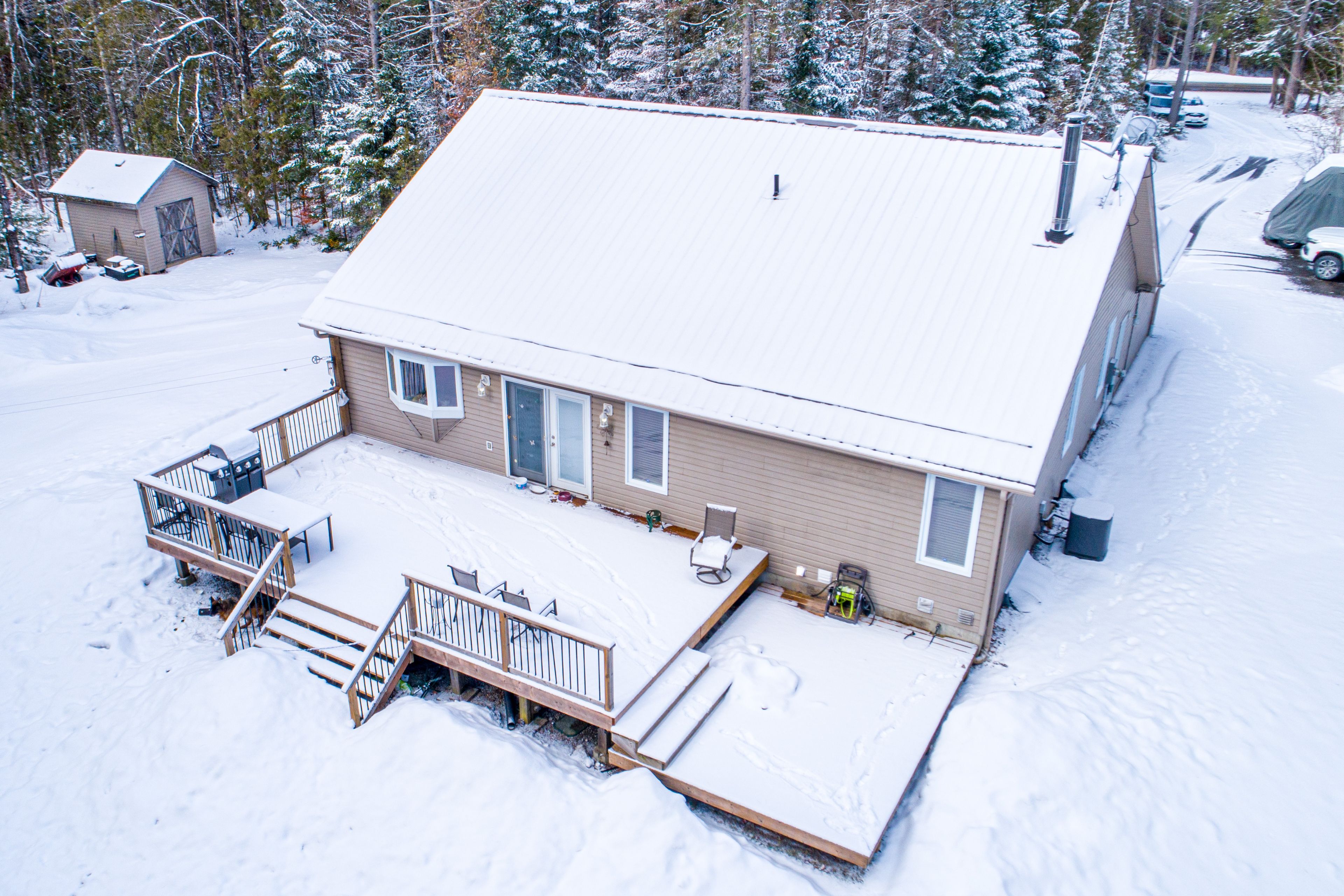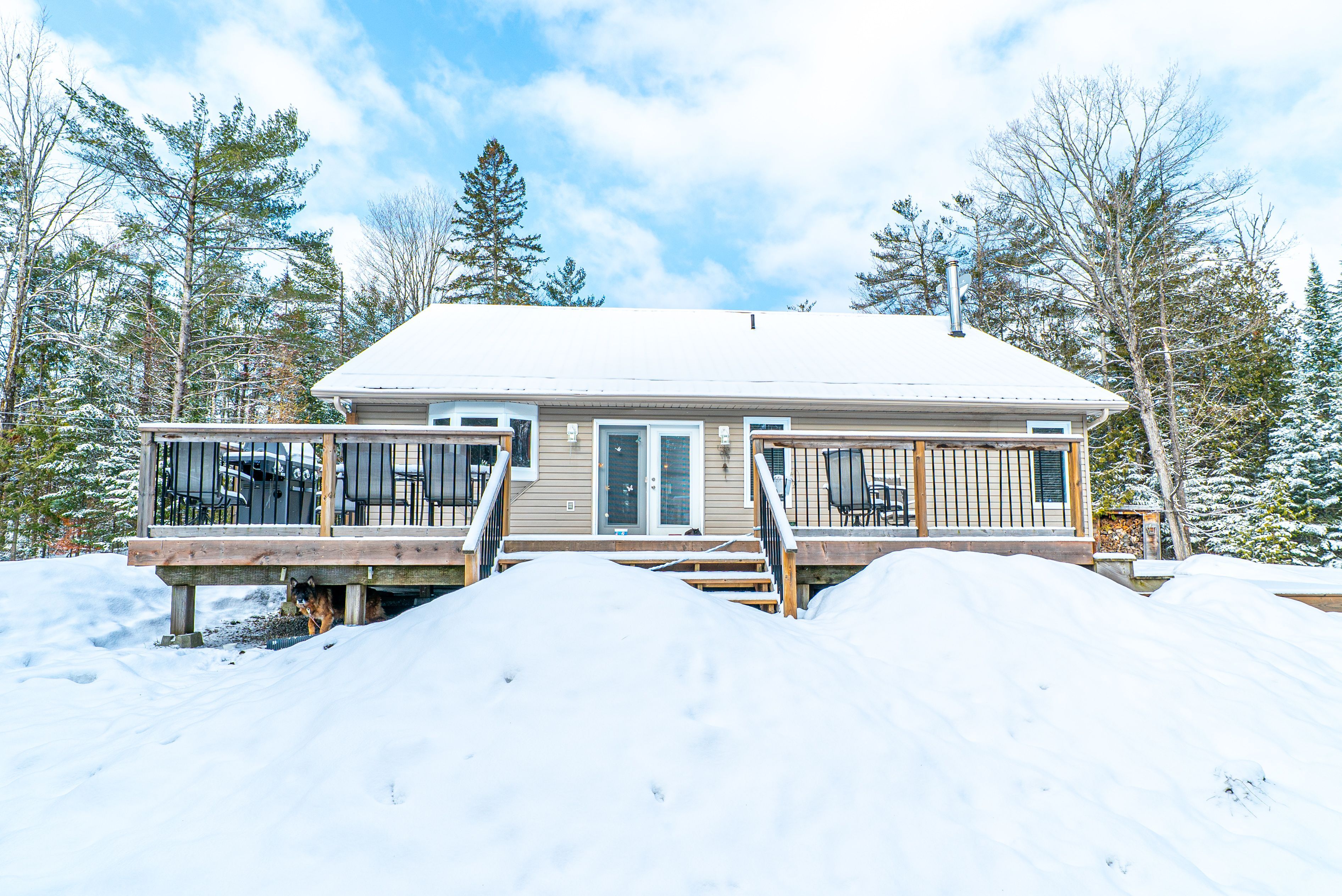 Tucked away on 3 private acres just outside of bobcaygeon, this well-maintained bungalow offers the perfect blend of peaceful country living with easy access to town amenities. The main floor features a welcoming foyer with direct access to the attached double car garage, a bright living room, and an open-concept kitchen and dining area with a walkout to a large rear deck, ideal for entertaining or enjoying the surrounding nature. The primary bedroom includes a convenient 3-piece ensuite, while a 4-piece bathroom with a jacuzzi tub adds a touch of comfort. The unfinished basement provides excellent potential, offering a spacious rec room area, laundry/utility space, and an additional 4-piece bathroom already in place. Outside, the property features a durable steel roof, ample parking, and plenty of room to roam, garden, or simply enjoy the privacy of country living. A great opportunity to make a move to the country without sacrificing convenience.