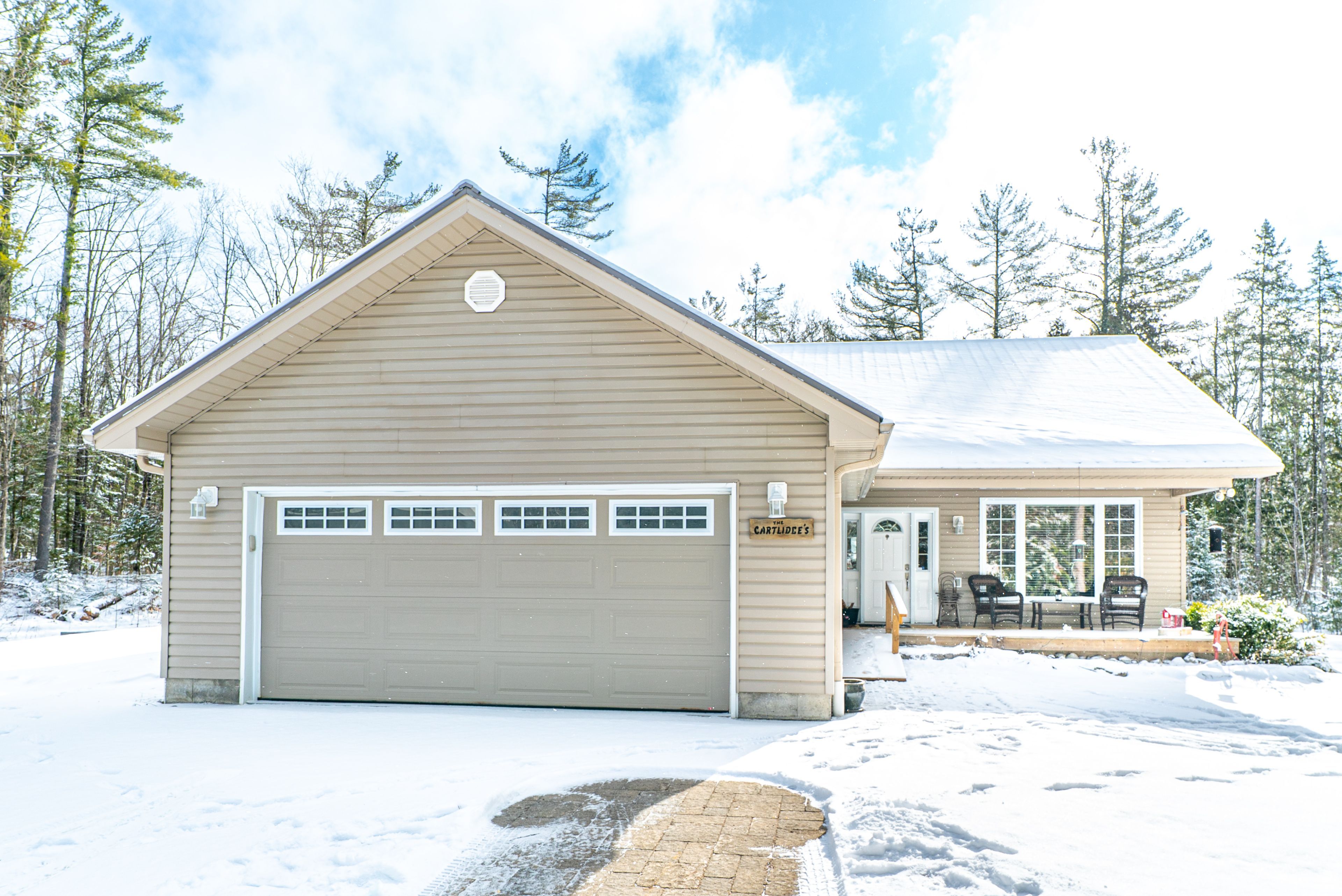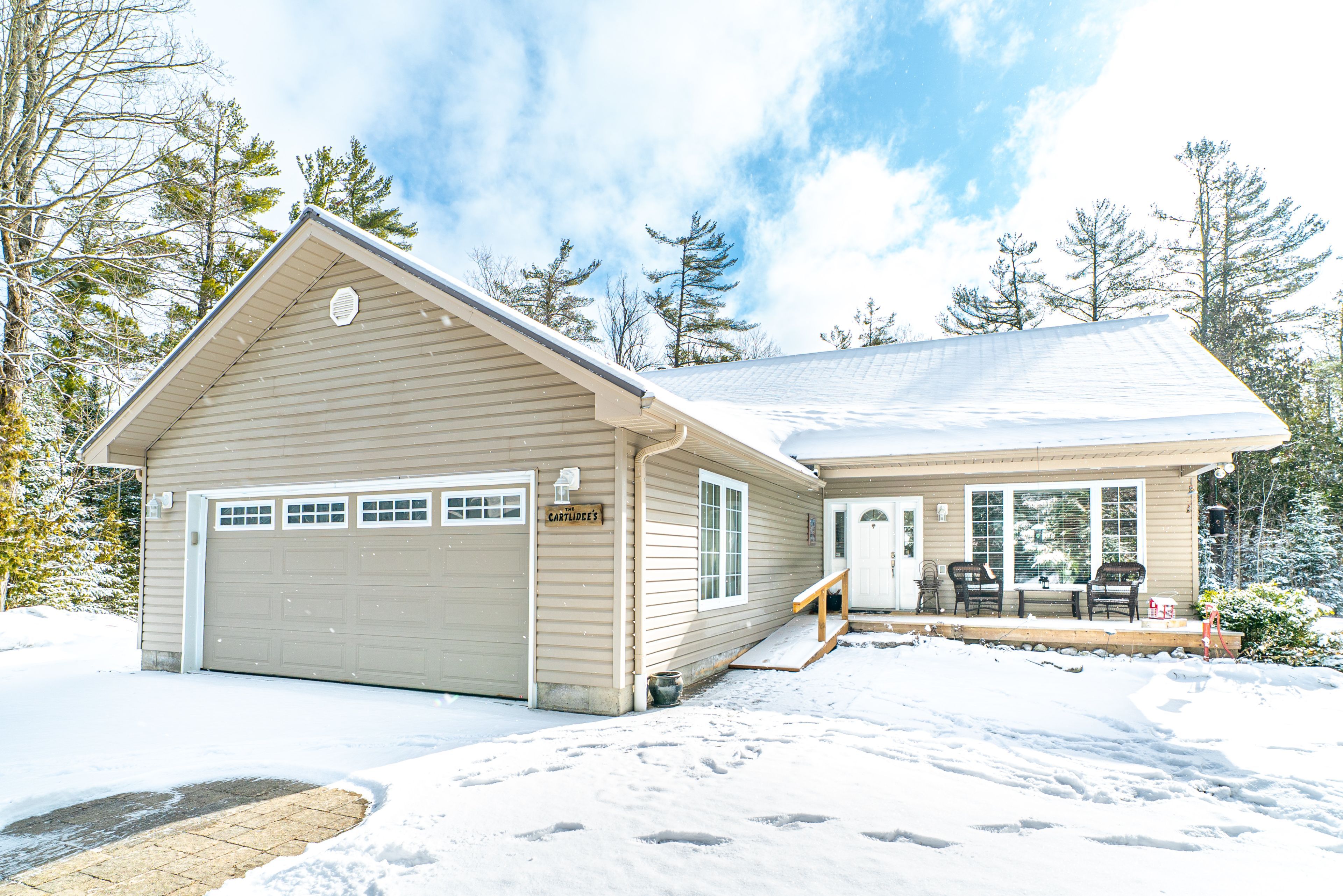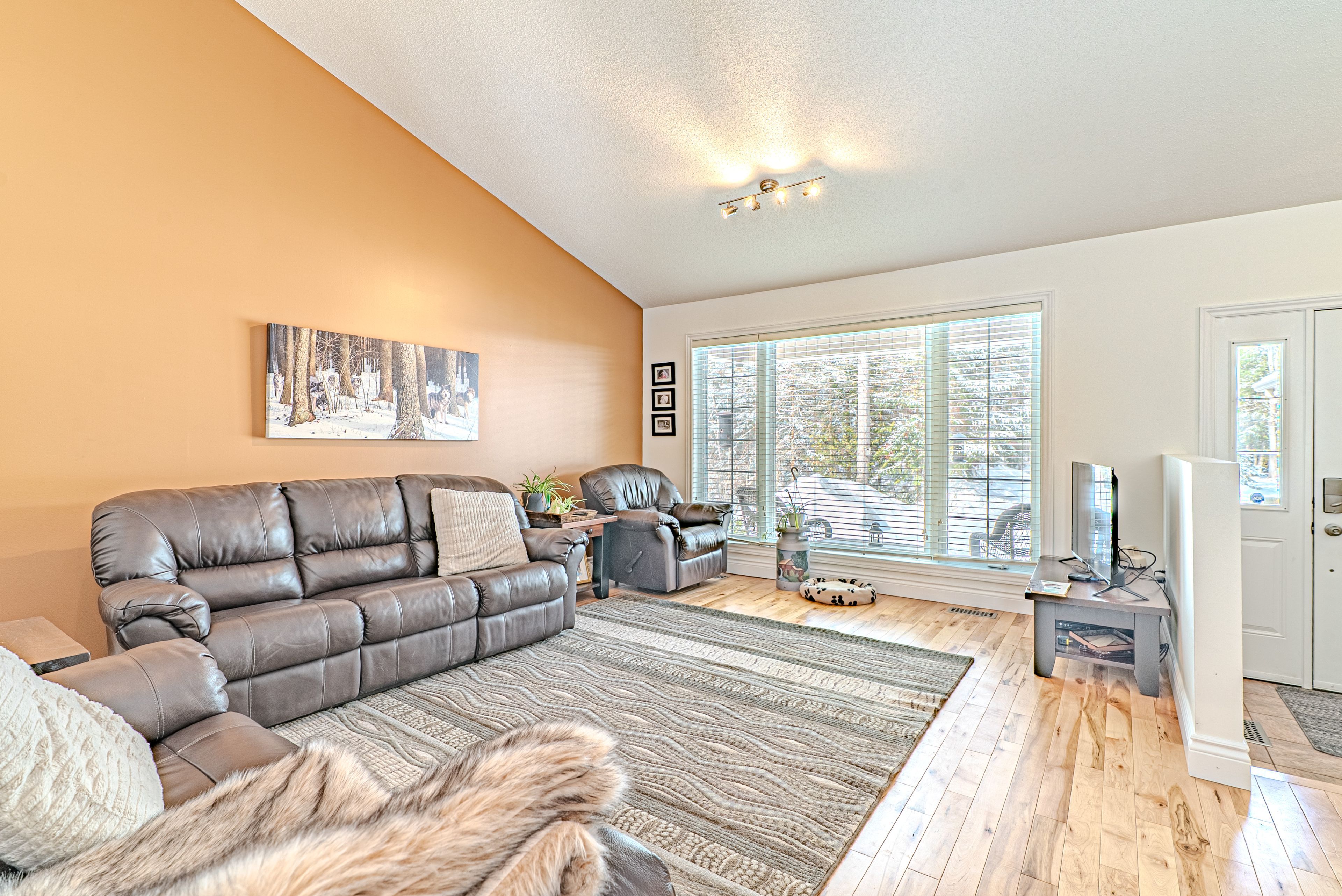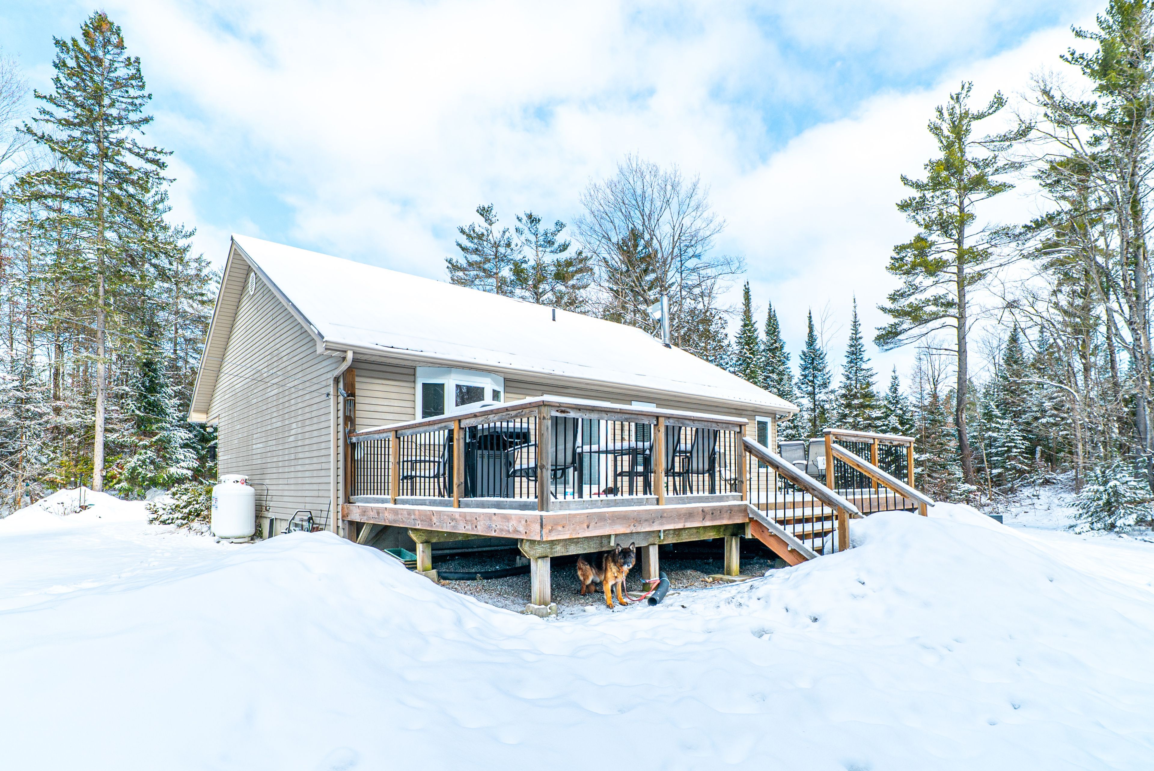 Tucked away on 3 private acres just outside of bobcaygeon, this well-maintained bungalow offers the perfect blend of peaceful country living with easy access to town amenities. The main floor features a welcoming foyer with direct access to the attached double car garage, a bright living room, and an open-concept kitchen and dining area with a walkout to a large rear deck, ideal for entertaining or enjoying the surrounding nature. The primary bedroom includes a convenient 3-piece ensuite, while a 4-piece bathroom with a jacuzzi tub adds a touch of comfort. The unfinished basement provides excellent potential, offering a spacious rec room area, laundry/utility space, and an additional 4-piece bathroom already in place. Outside, the property features a durable steel roof, ample parking, and plenty of room to roam, garden, or simply enjoy the privacy of country living. A great opportunity to make a move to the country without sacrificing convenience.